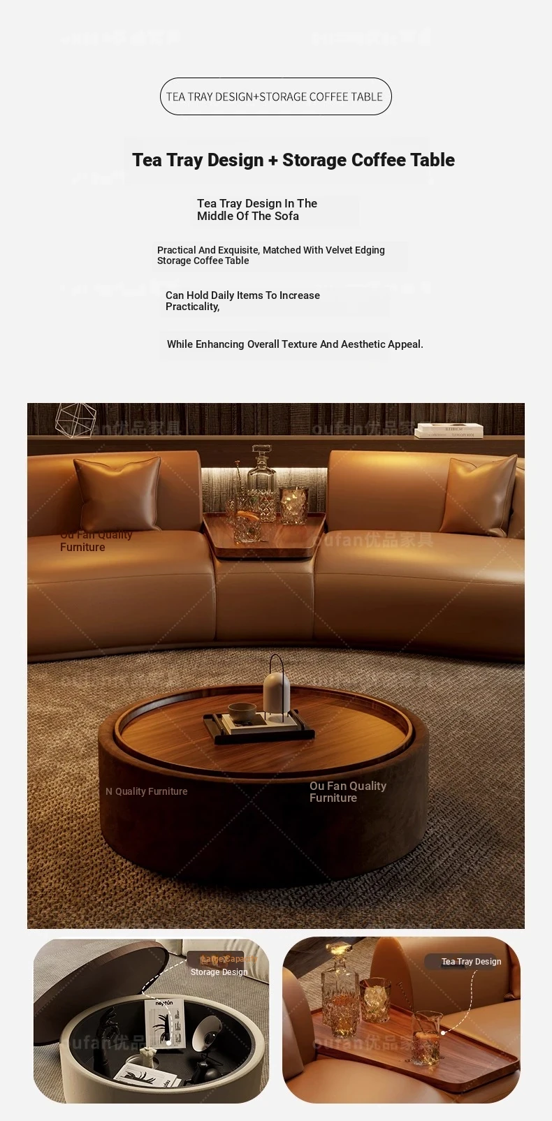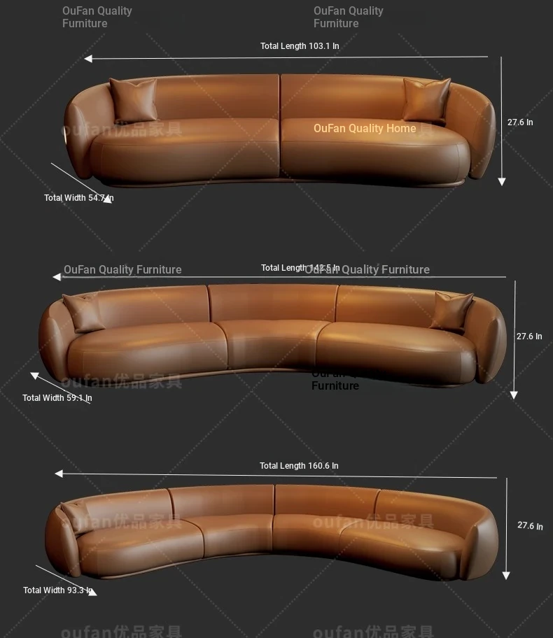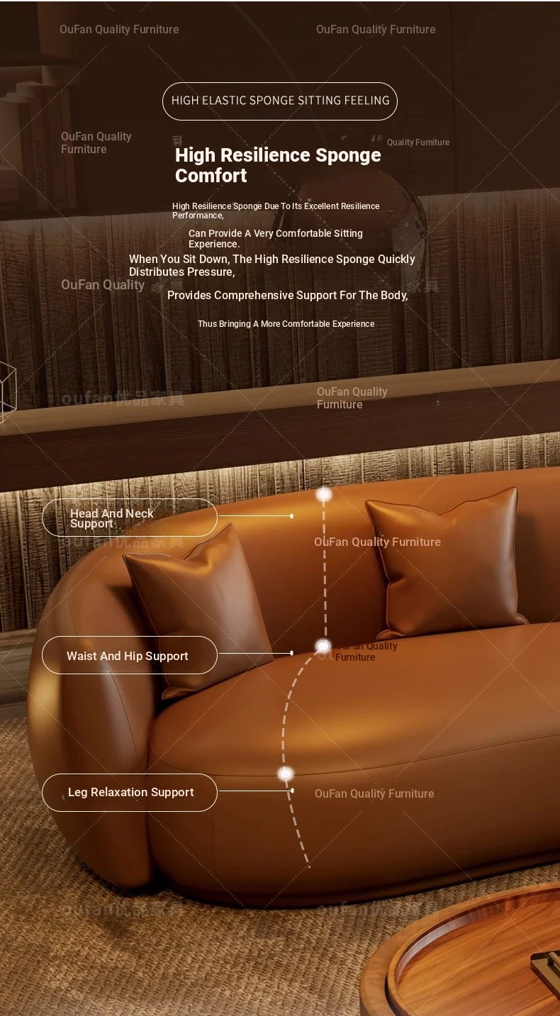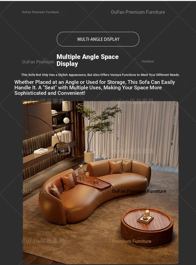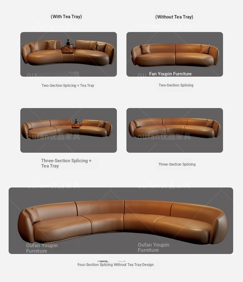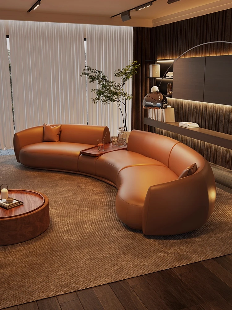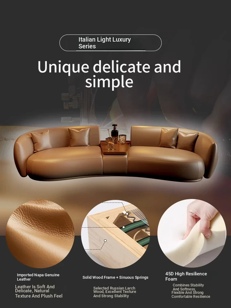Italian Luxury Curved Genuine Leather Sofa - Elevate Your Living Space with Sophistication, Perfect for Salons, Real Estate Offices, and Hotel Lobbies.