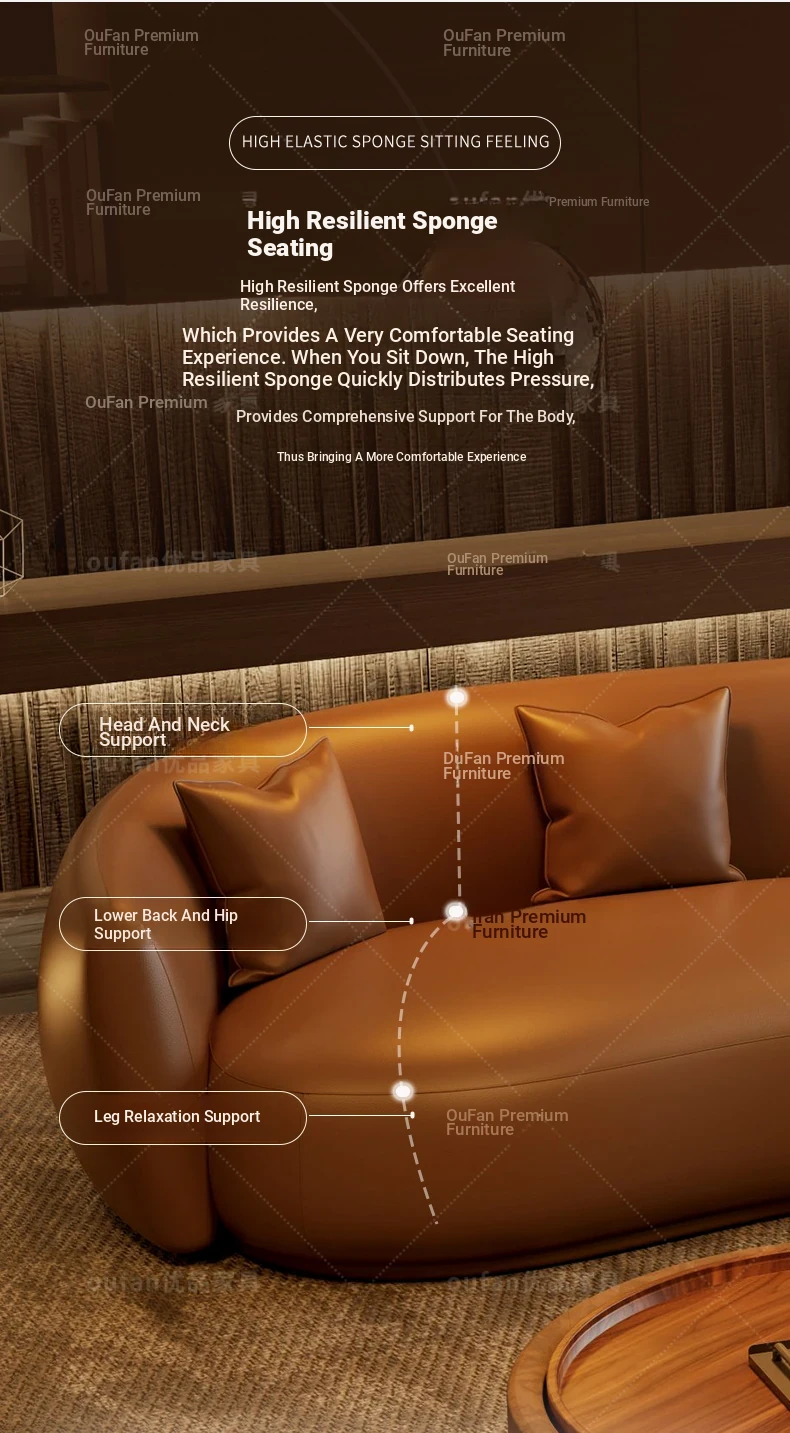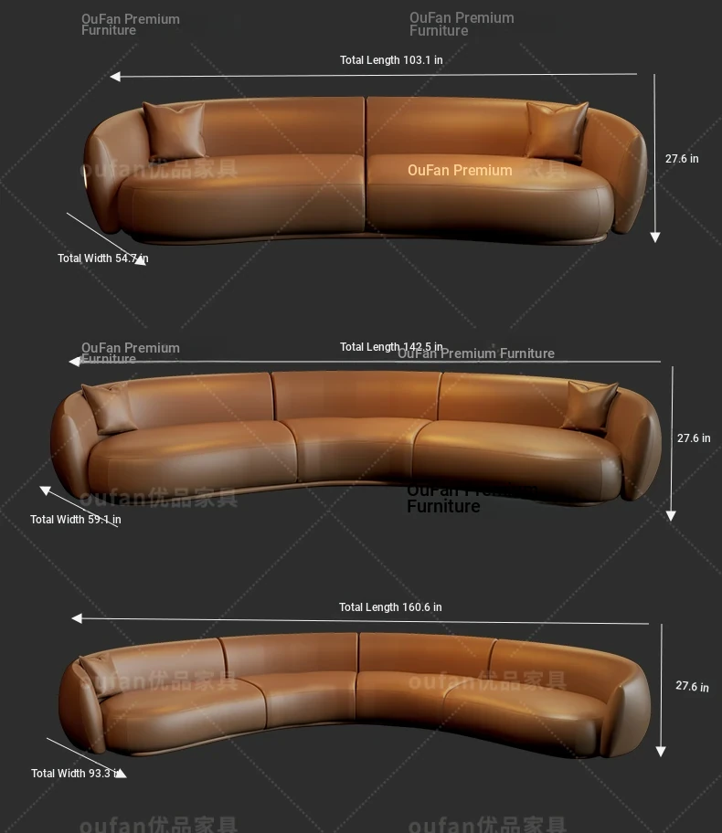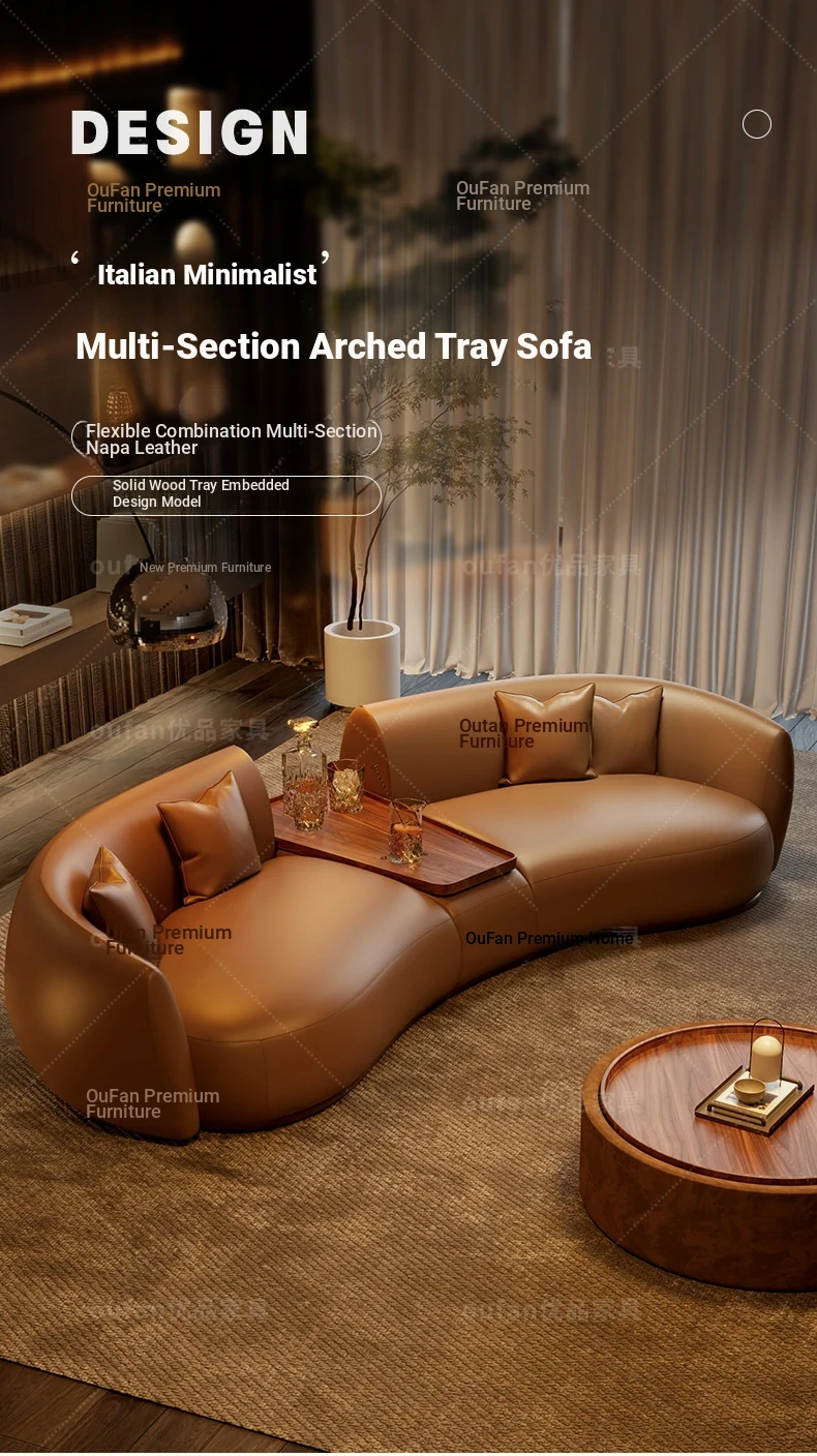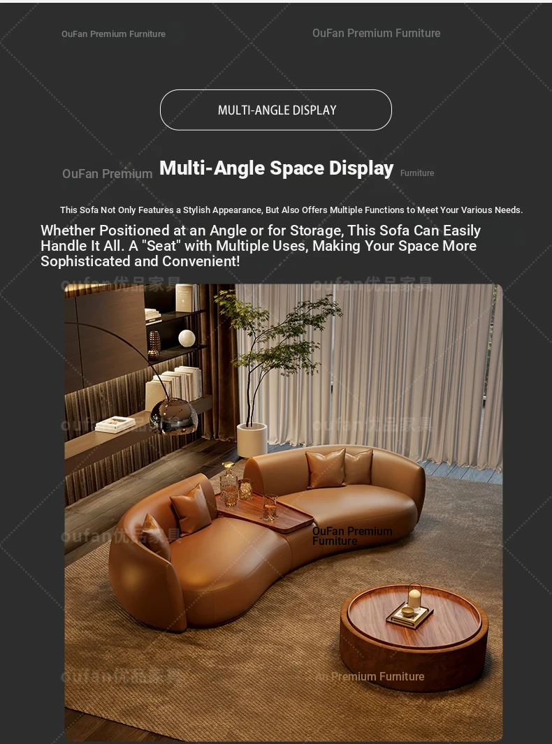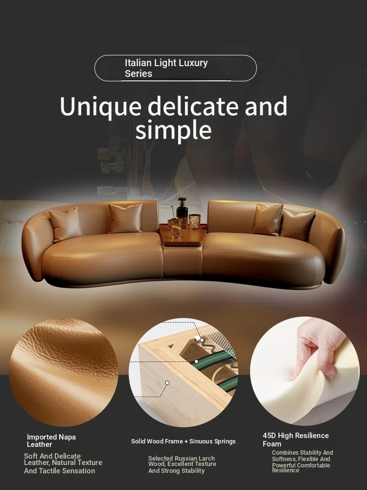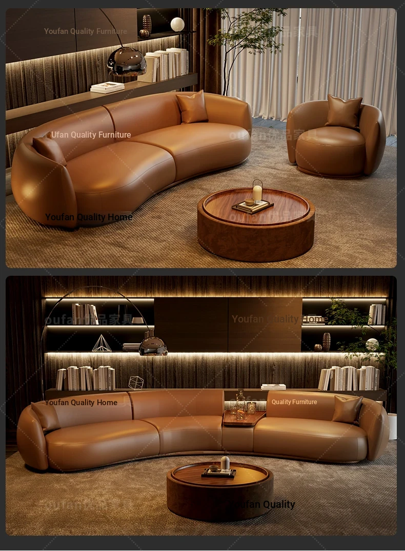 Italian Luxury Curved Moon-Shaped Genuine Leather Sofa - Perfect for Beauty Salons, Real Estate Offices, and Hotel Lobbies, Elevate Your Reception Area with Sophistication and Style!