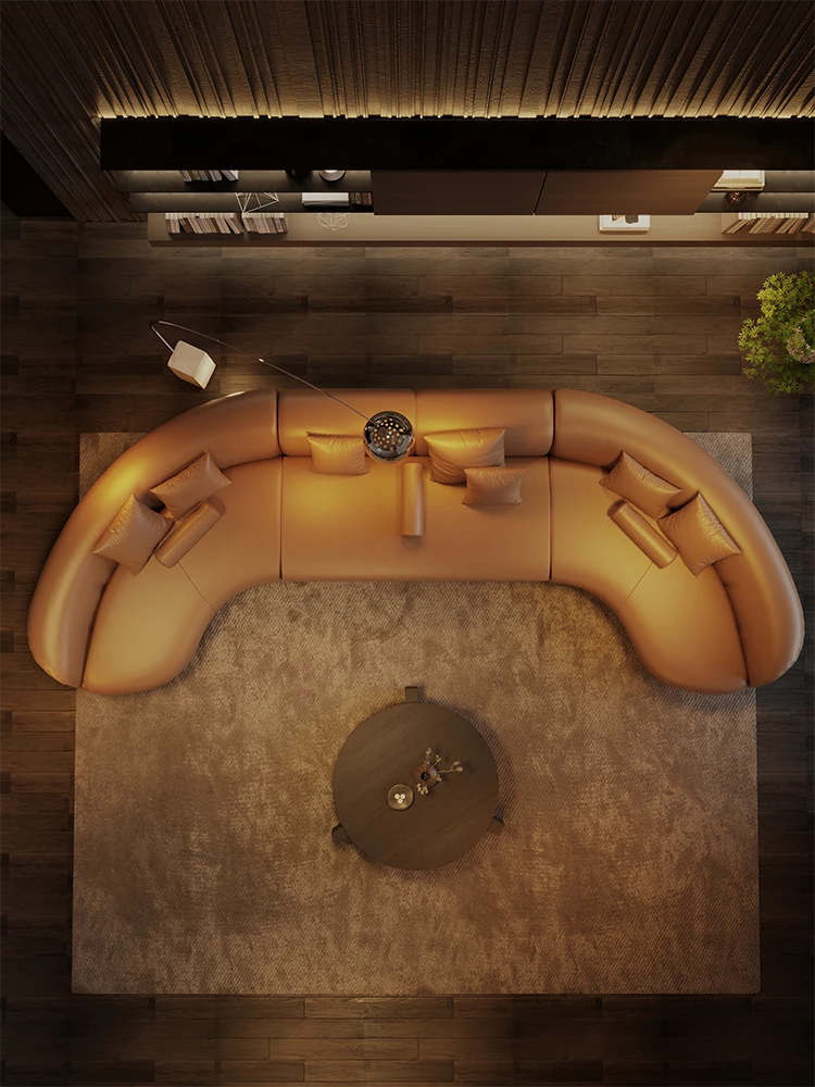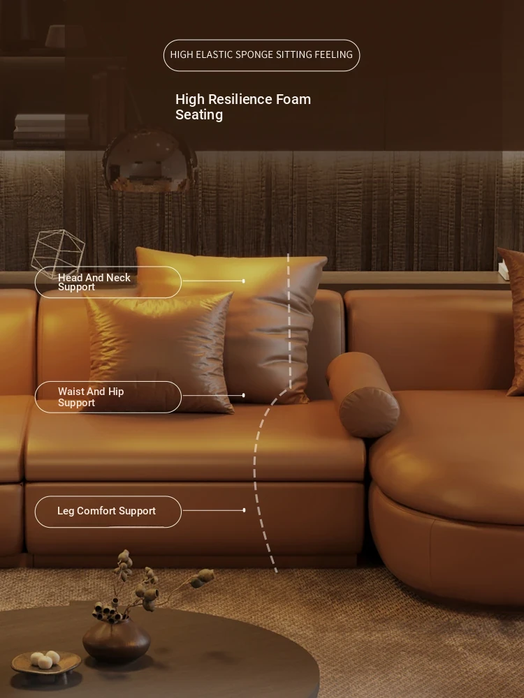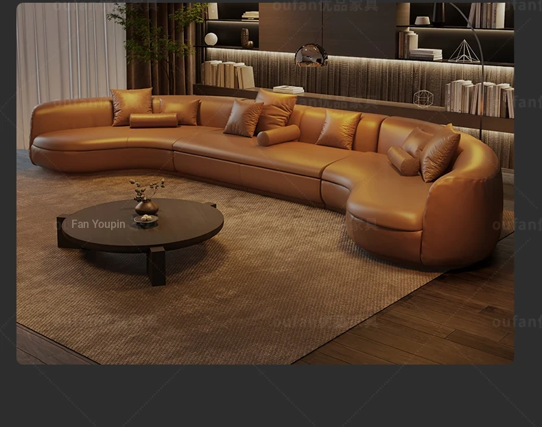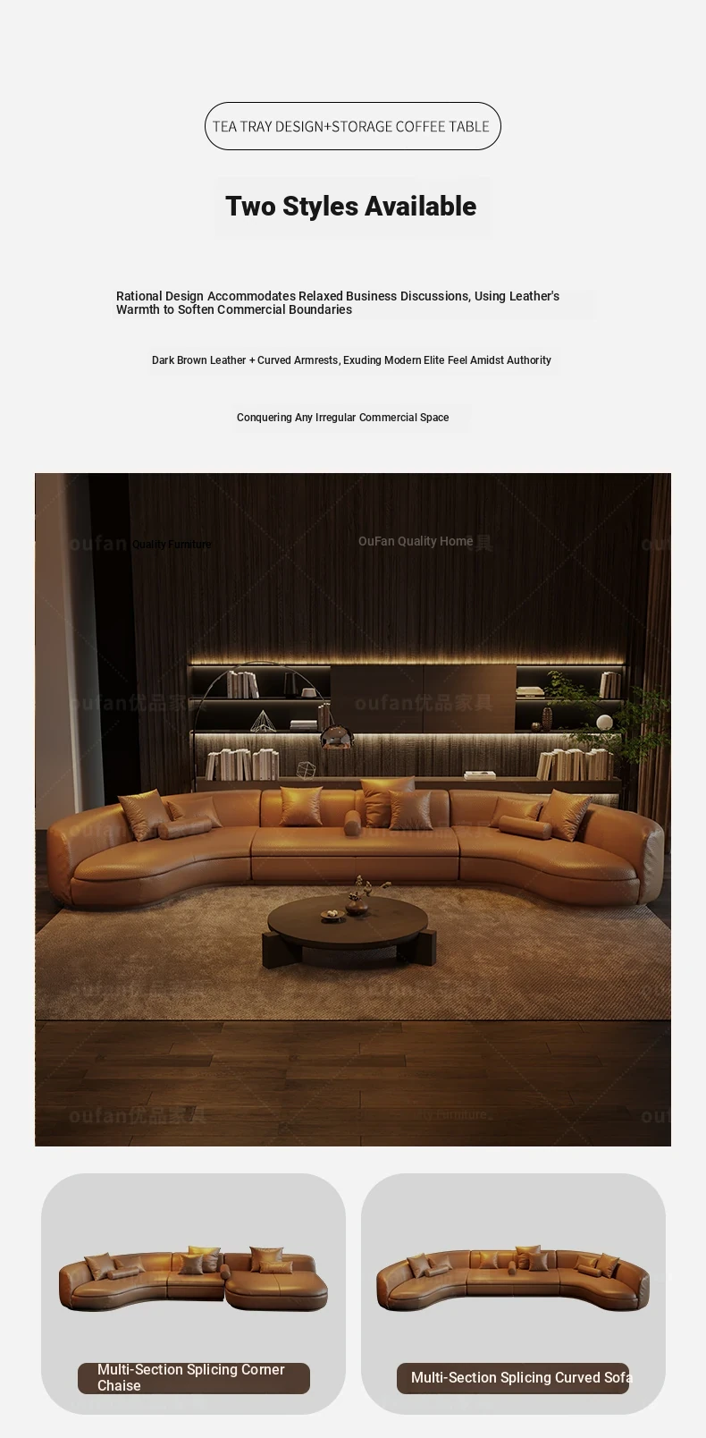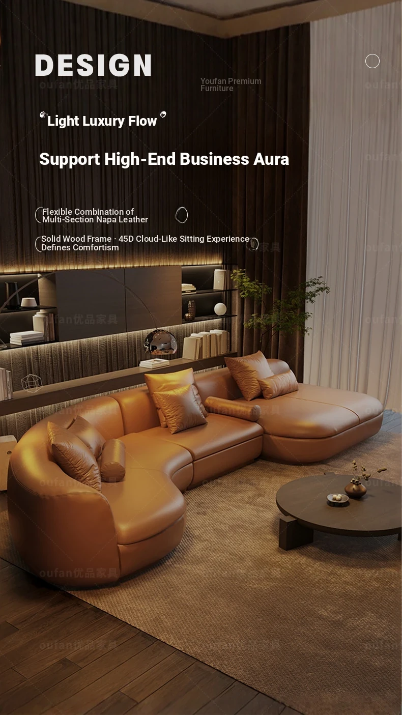 Italian Luxury Genuine Leather Curved Corner Sofa - Elegant Design for Living Rooms, Hotels, Salons, and Reception Areas. Perfect Blend of Comfort and Style!