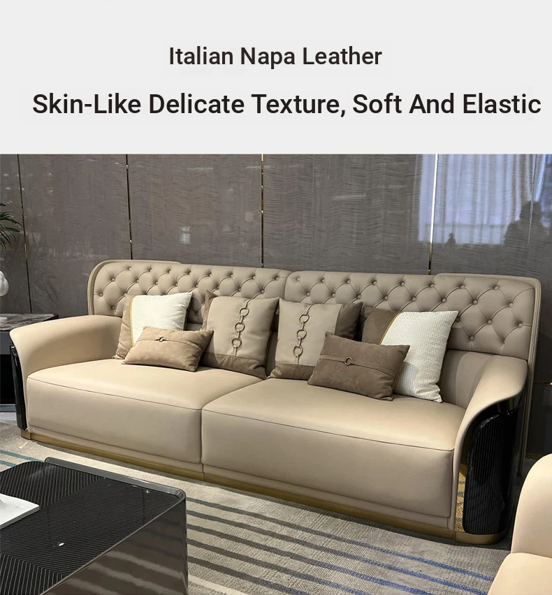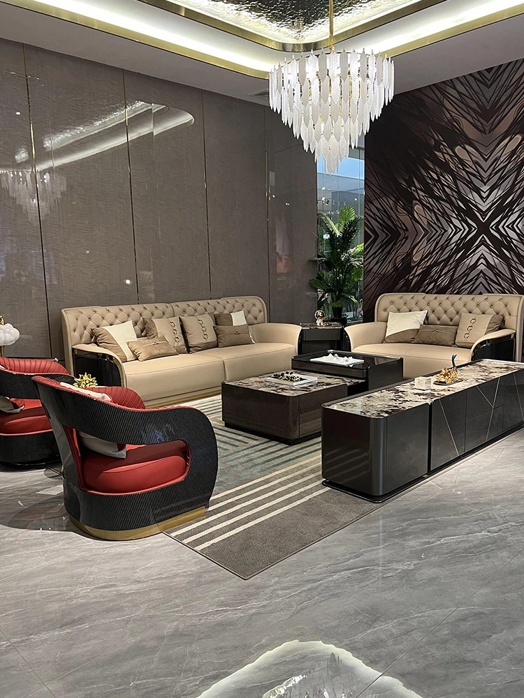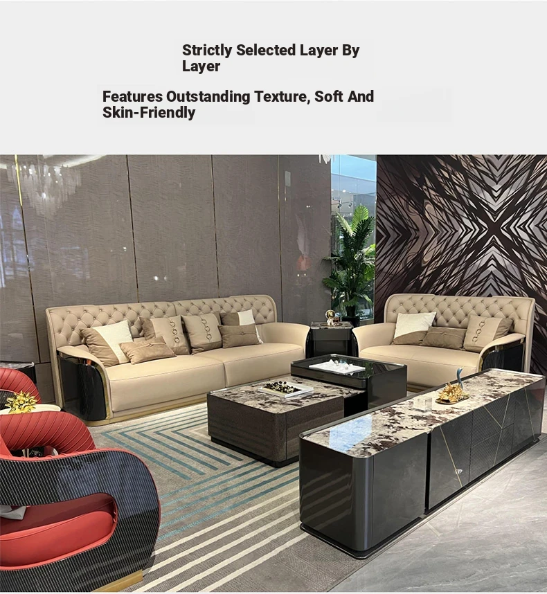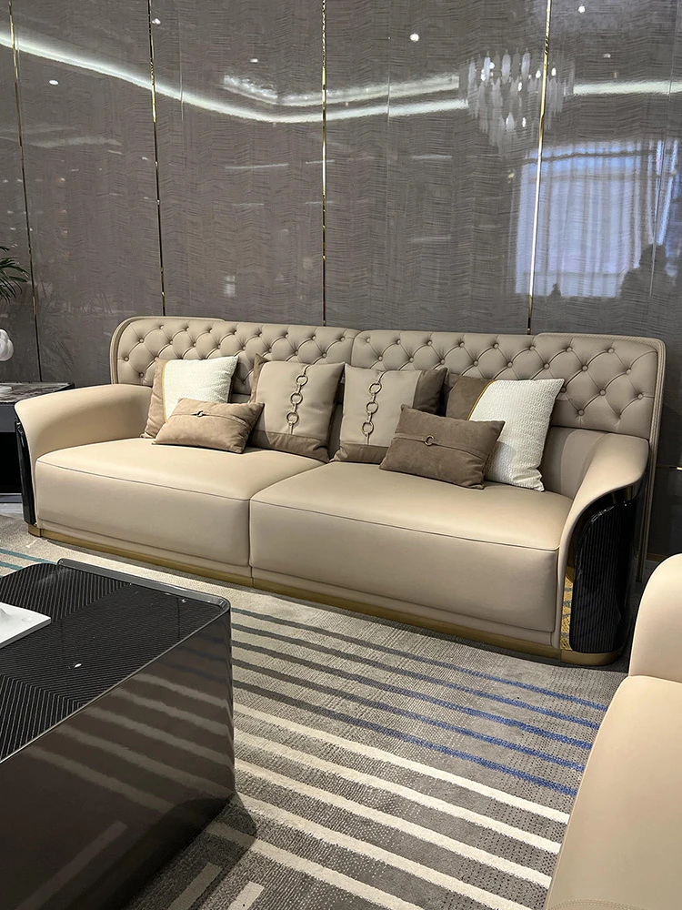 Italian Luxury Genuine Leather Sofa - Modern Minimalist Design for High-End Spacious Villas and Bentley Living Rooms - Elevate Your Home with Designer Furniture