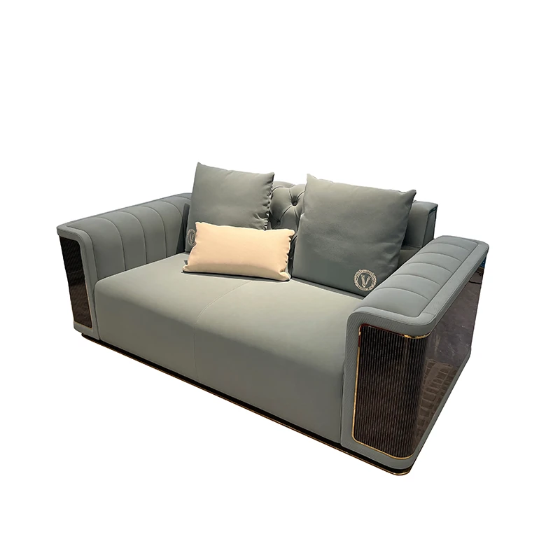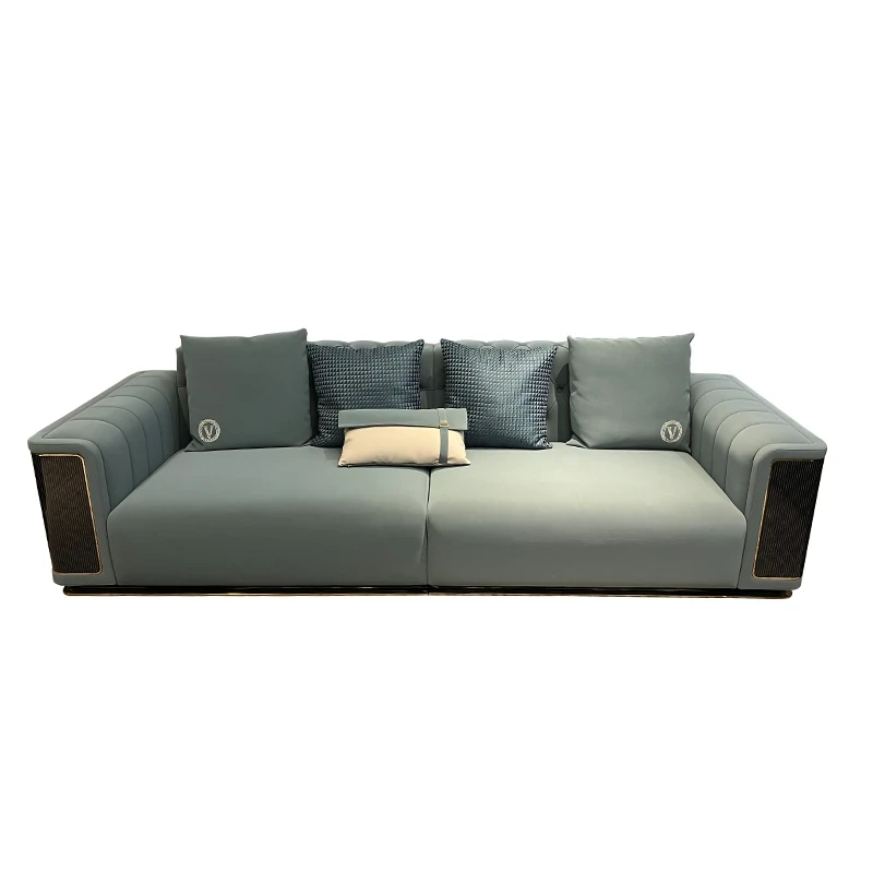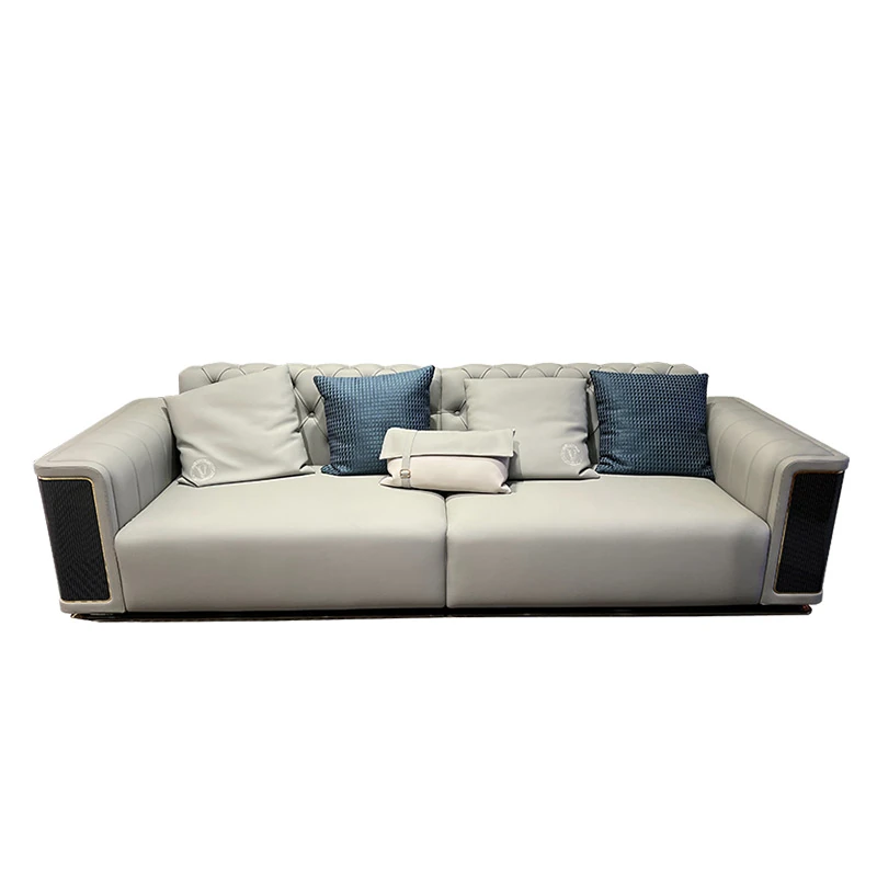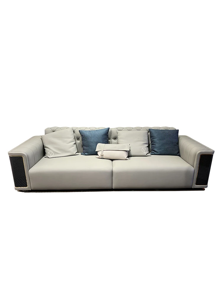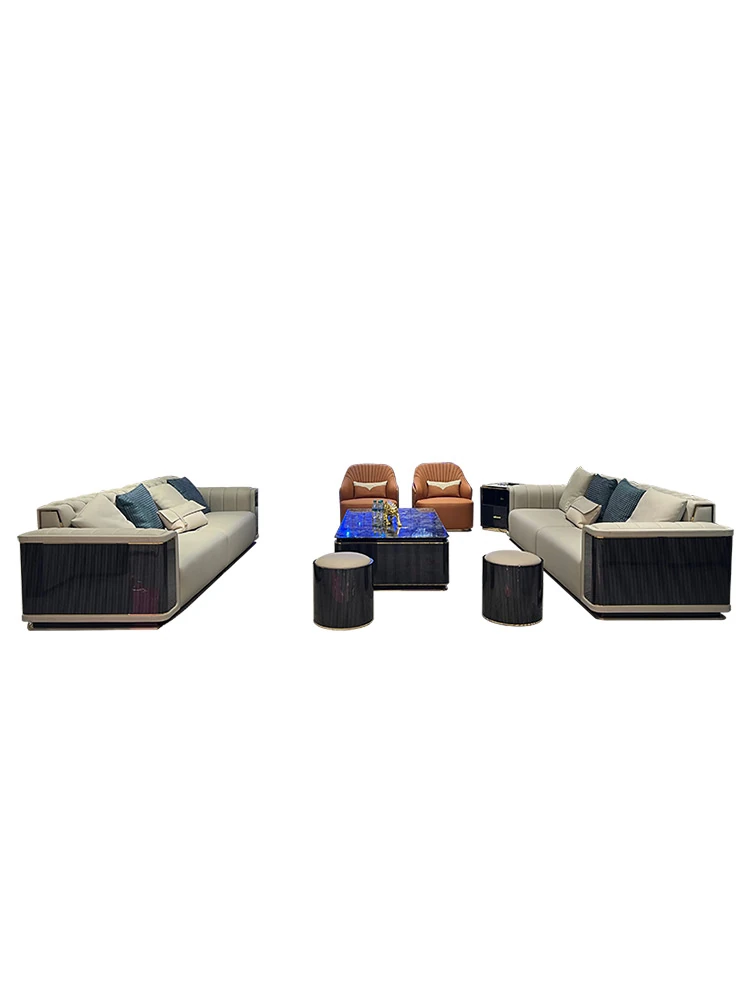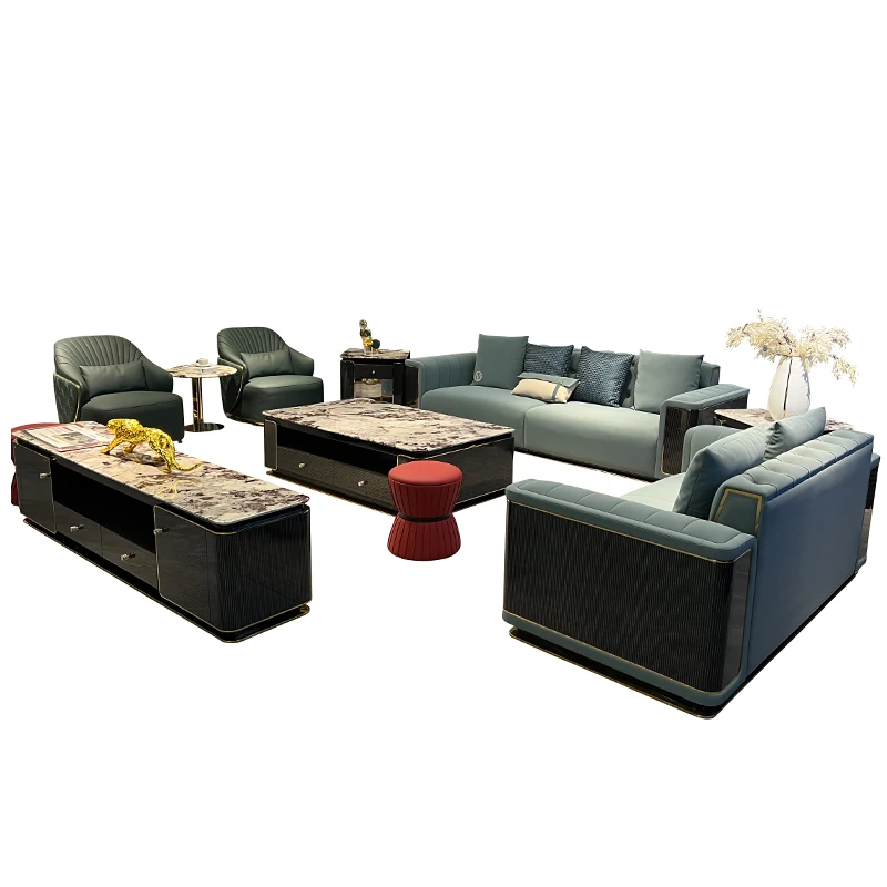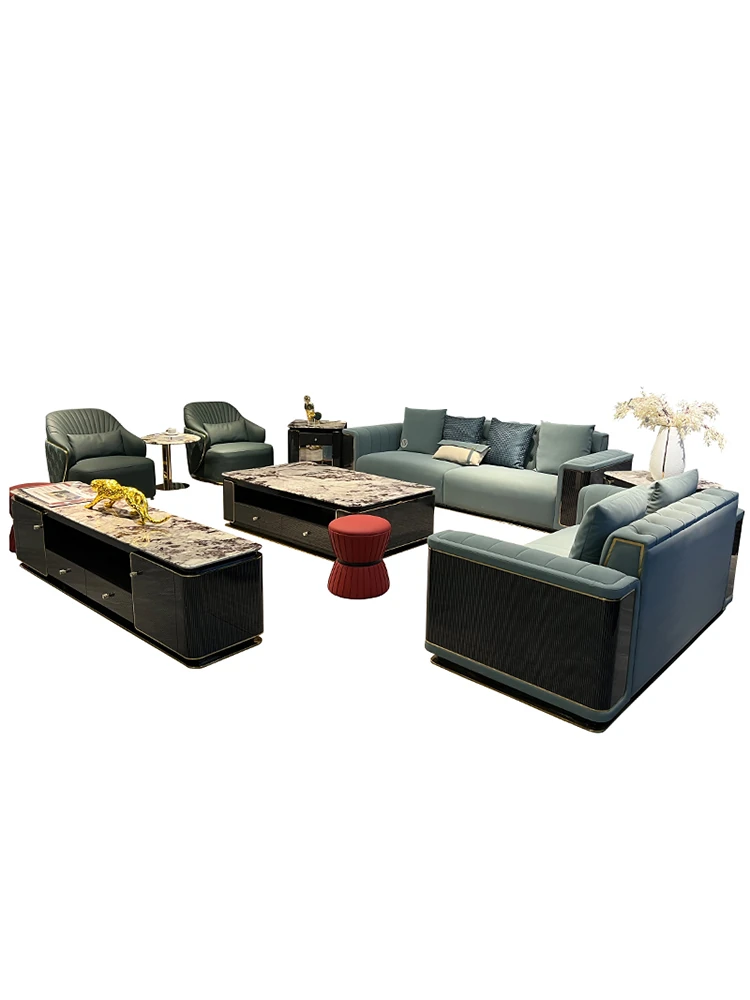 Italian Luxury Genuine Leather Sofa Set for High-End Villas - Modern Minimalist Living Room Furniture for Spacious Layouts