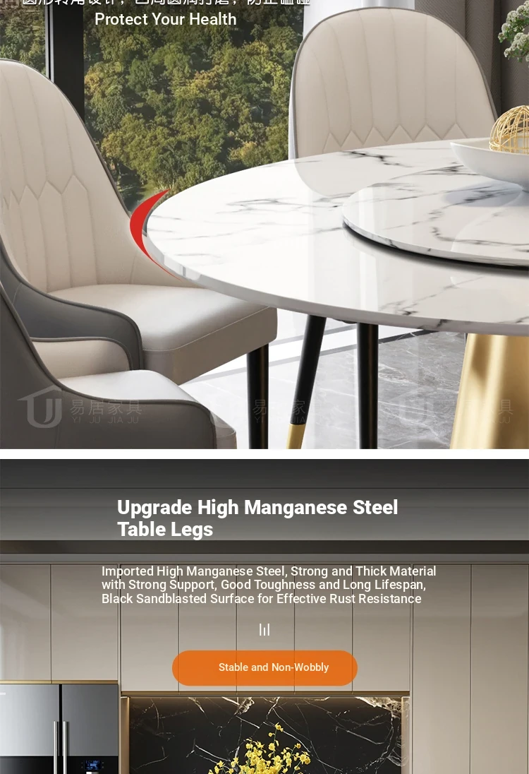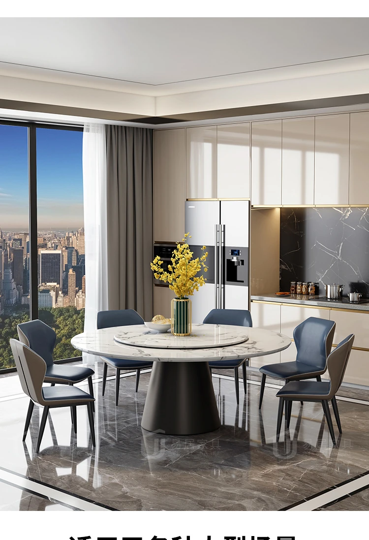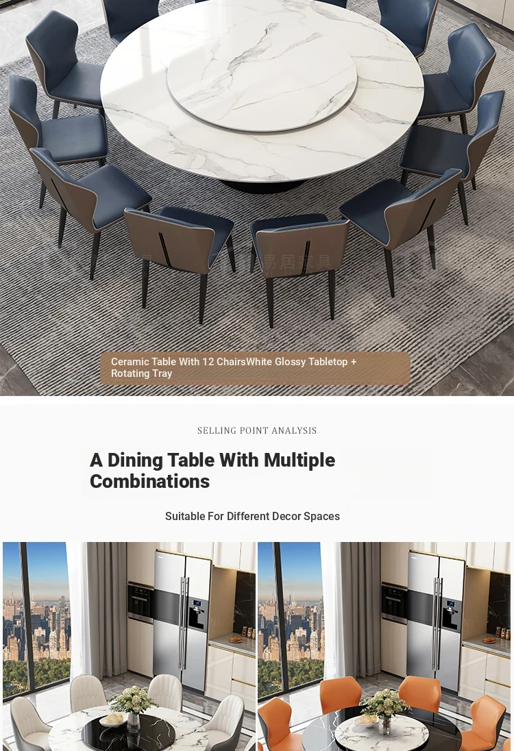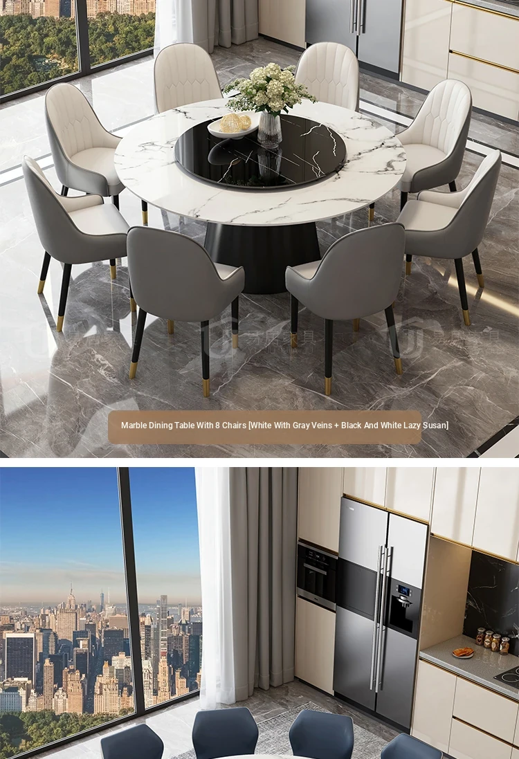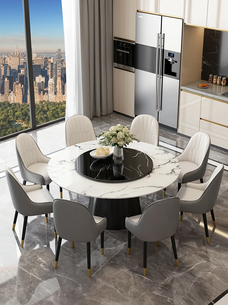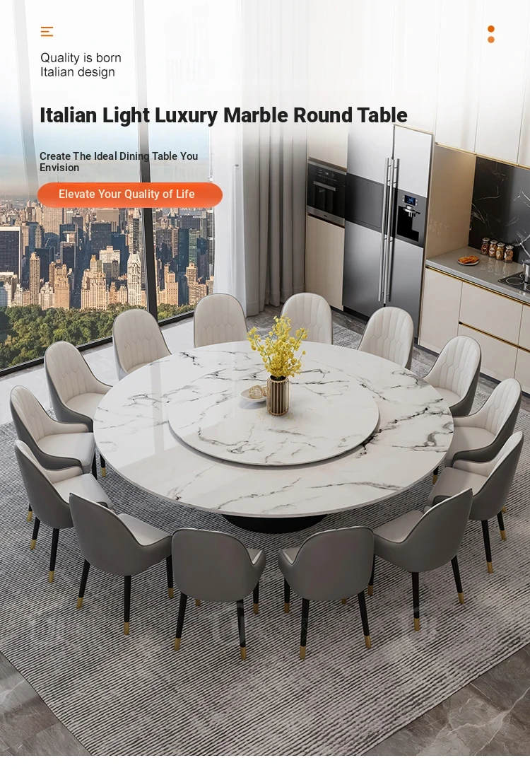 Italian Luxury Marble Dining Table Set - Round 1.8m & 2m Table with Chairs, Perfect for 10 People, Ideal for Home or Hotel Use, Featuring a Convenient Rotating Design