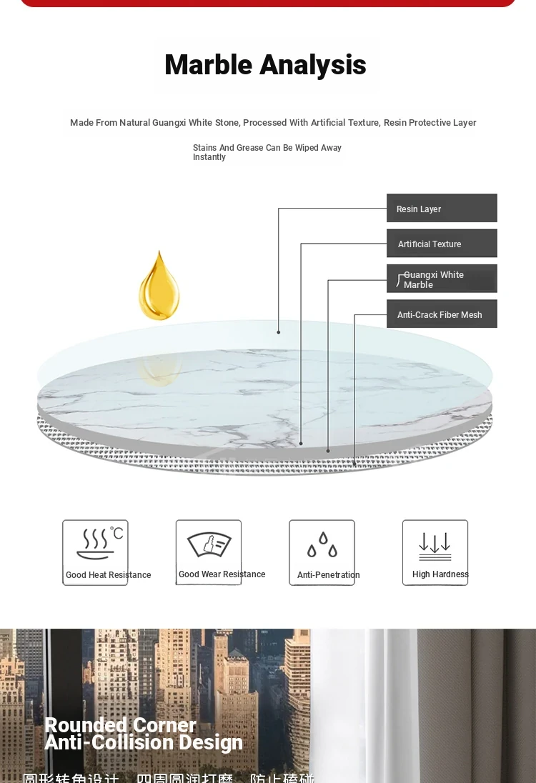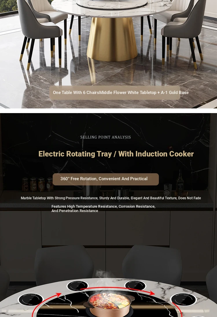 62.99 in marble single round table + automatic Rotate + Induction cooker