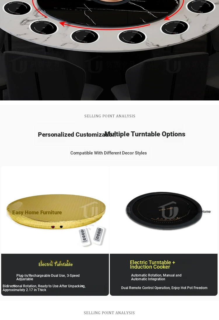 59.06 in marble single round table + automatic Rotate + Induction cooker