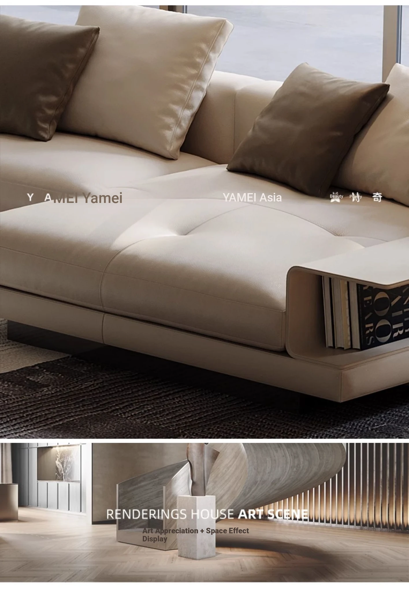 Italian Minimalist Connery Sofa - Luxurious Full Leather Designer Sofa for Villa and Spacious Living Rooms