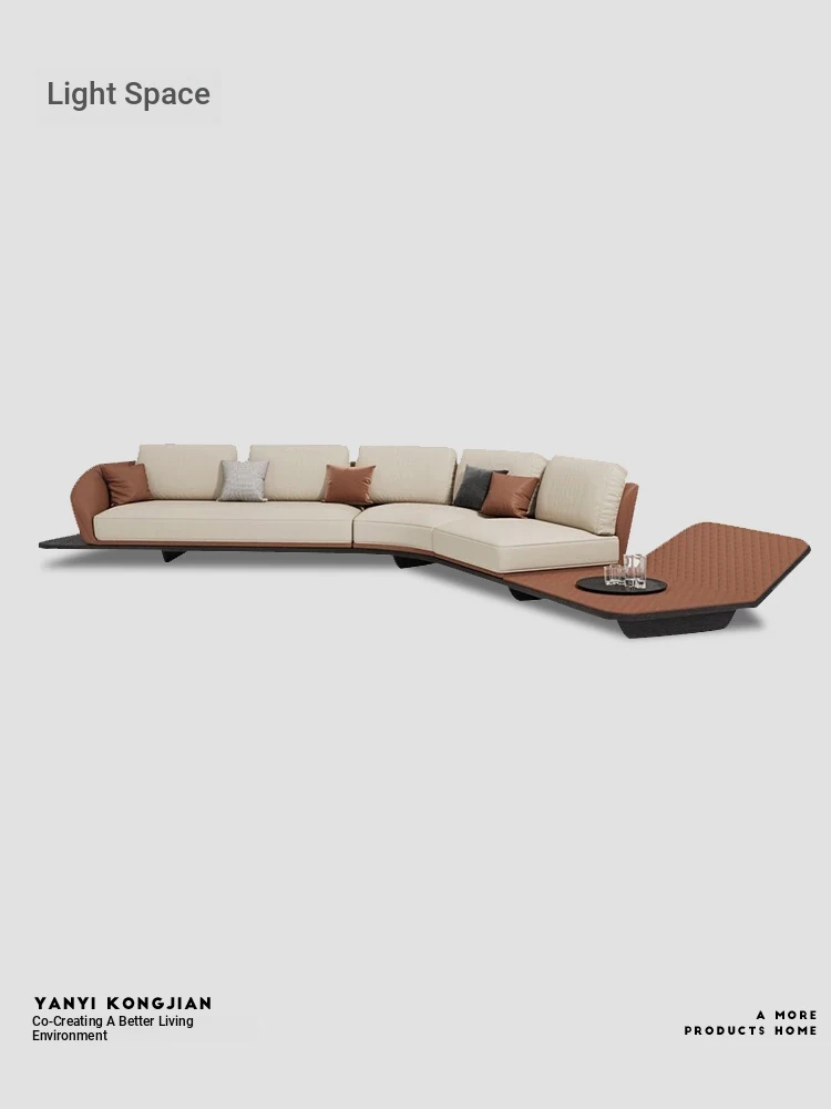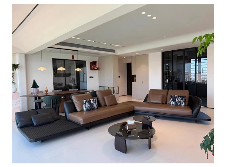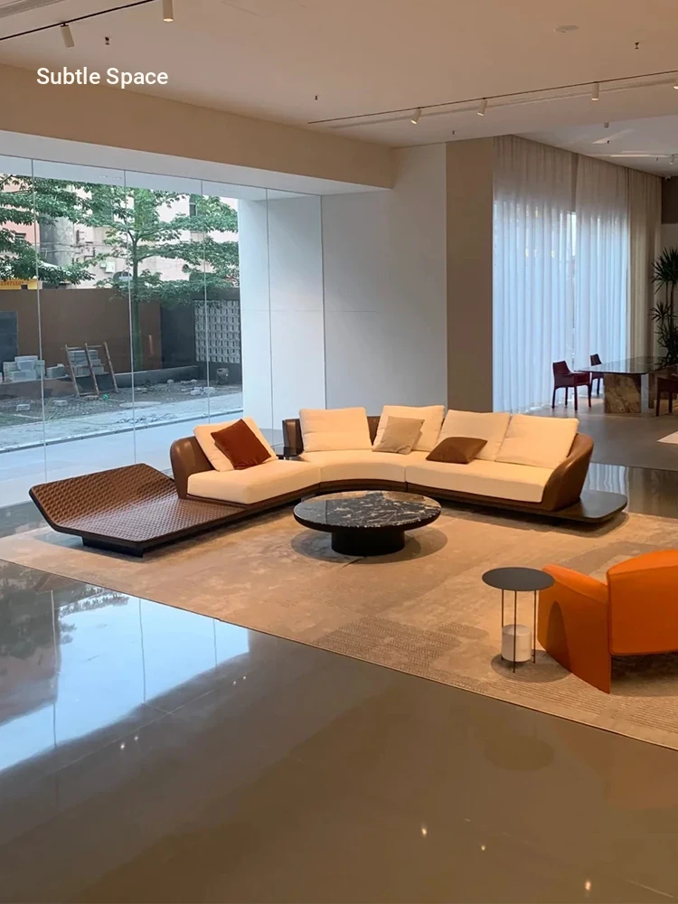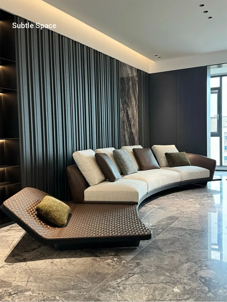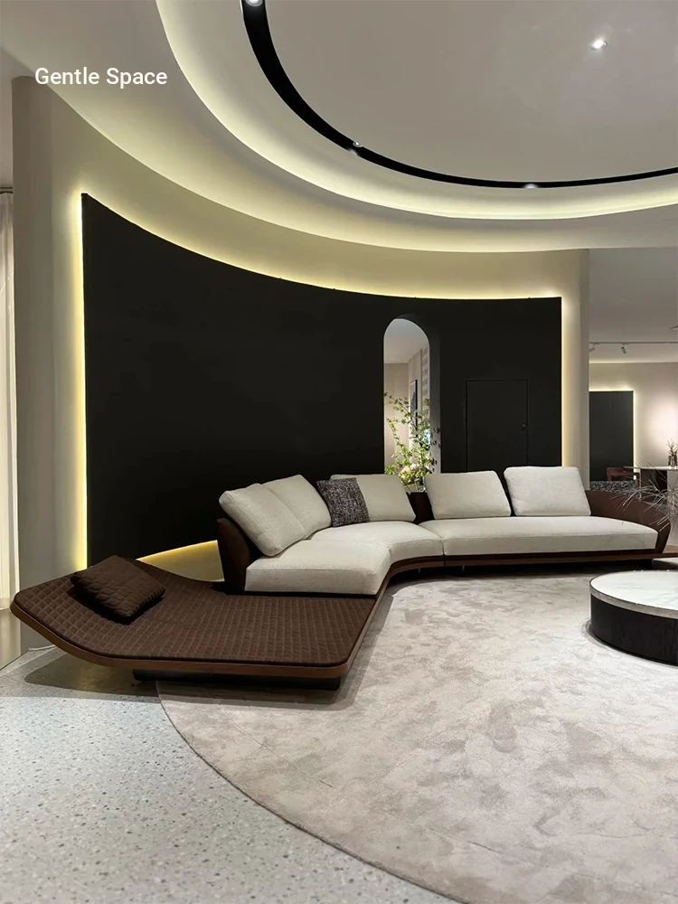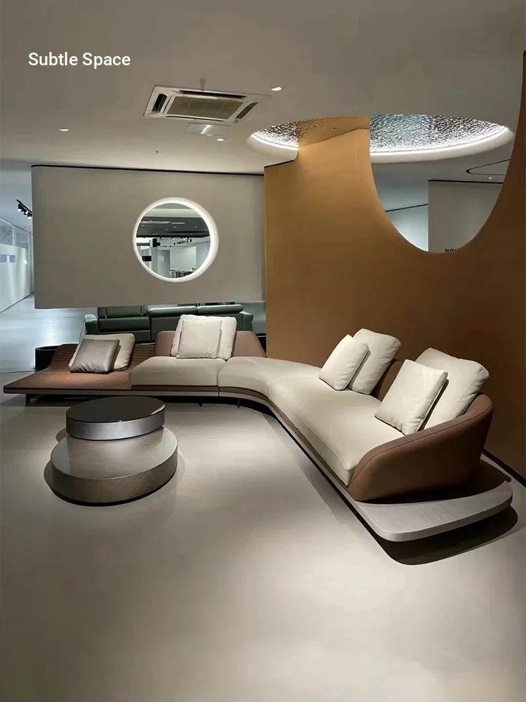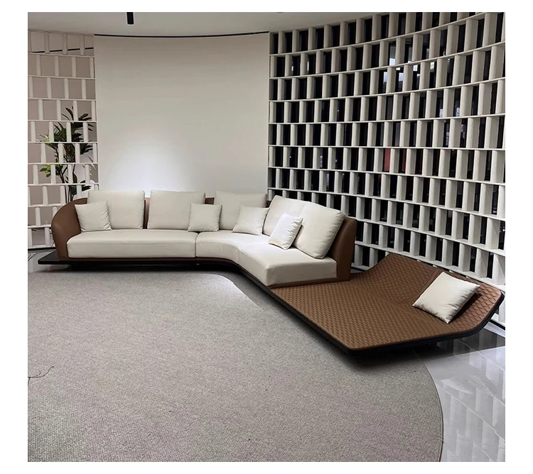 Italian Minimalist Curved Genuine Leather Sofa – Luxury Villa Living Room Drift Design Ferrari-Inspired Couch for Modern Elegance