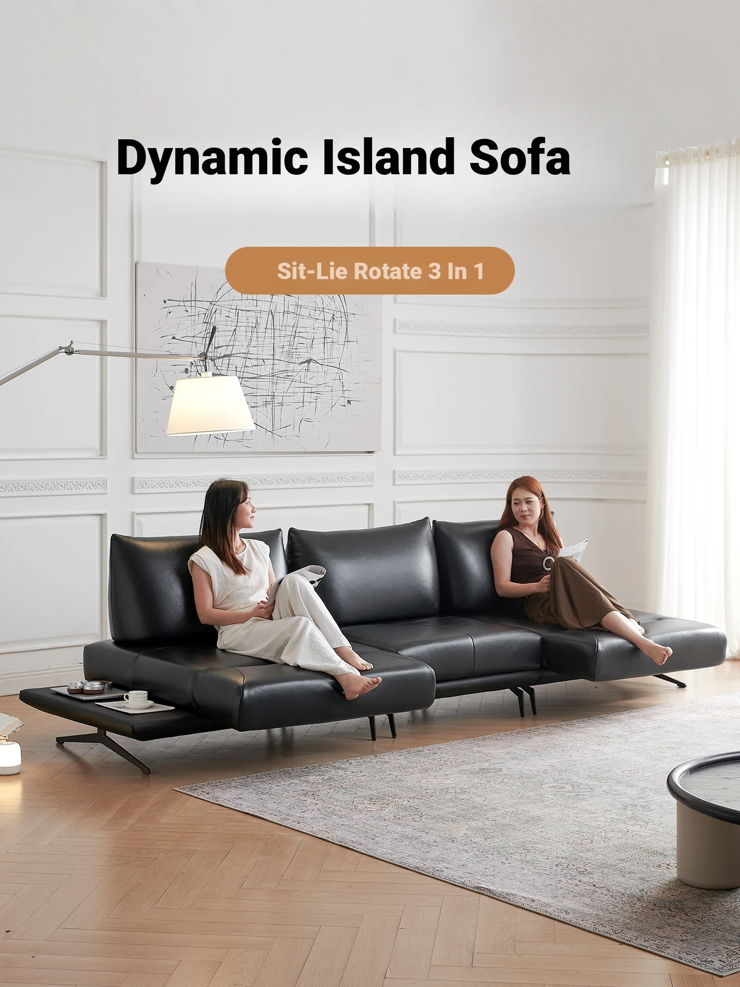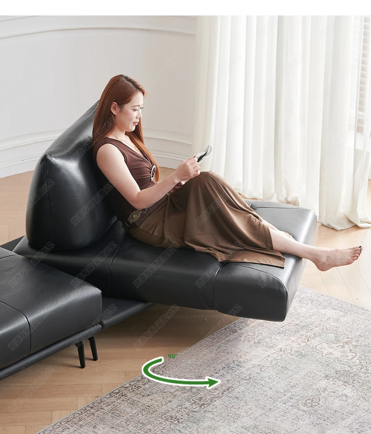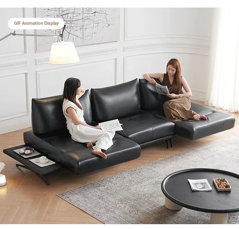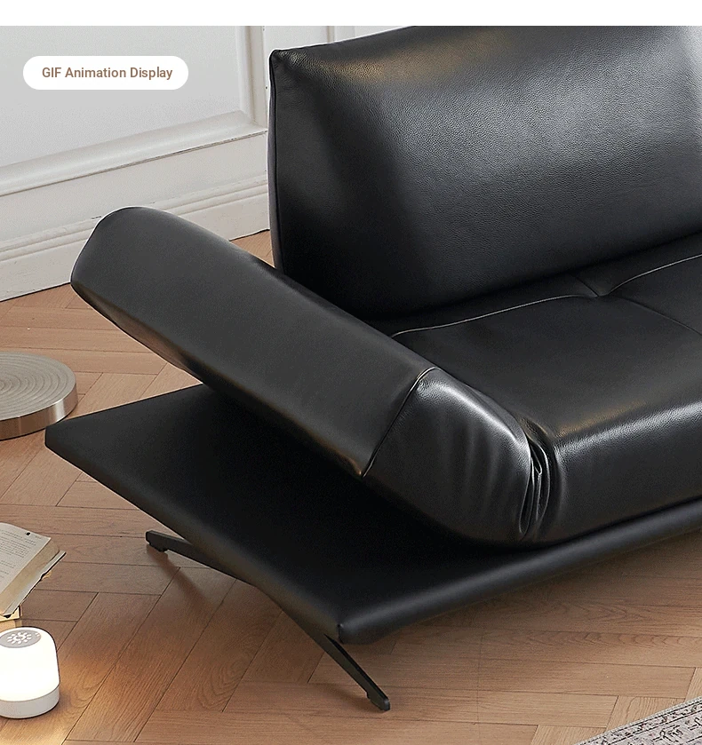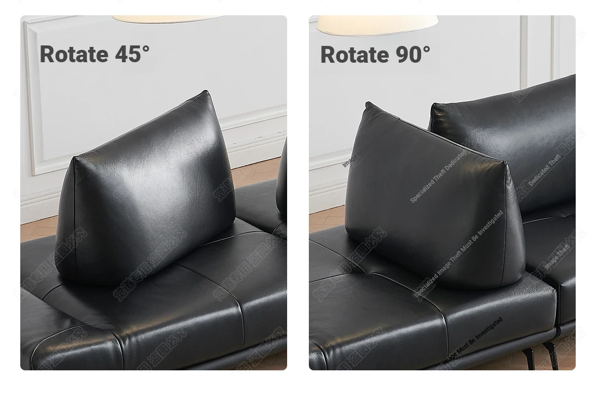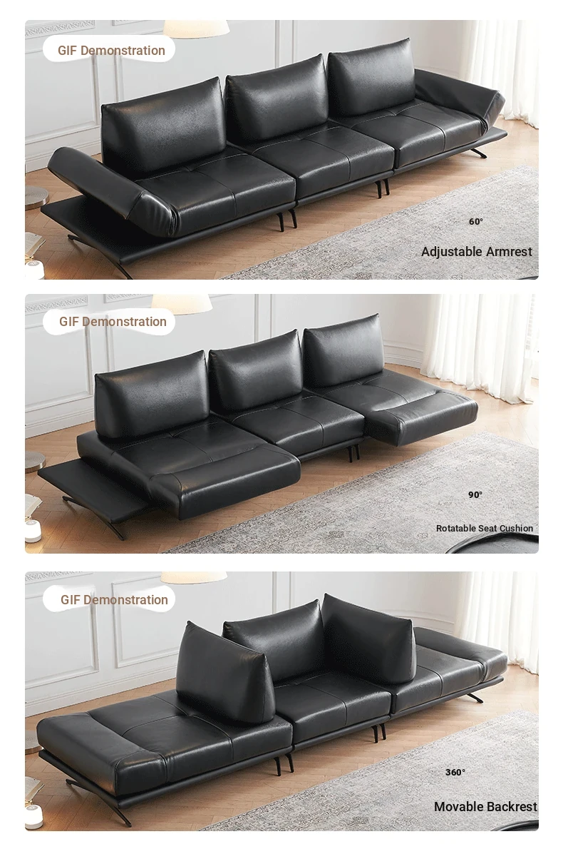 Italian Minimalist Genuine Leather Sofa - Multifunctional Rotatable Double-Sided Deep Seat in Black - Versatile and Dynamic Island Sofa for Your Living Room