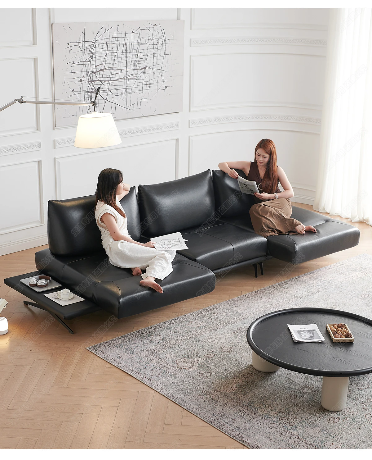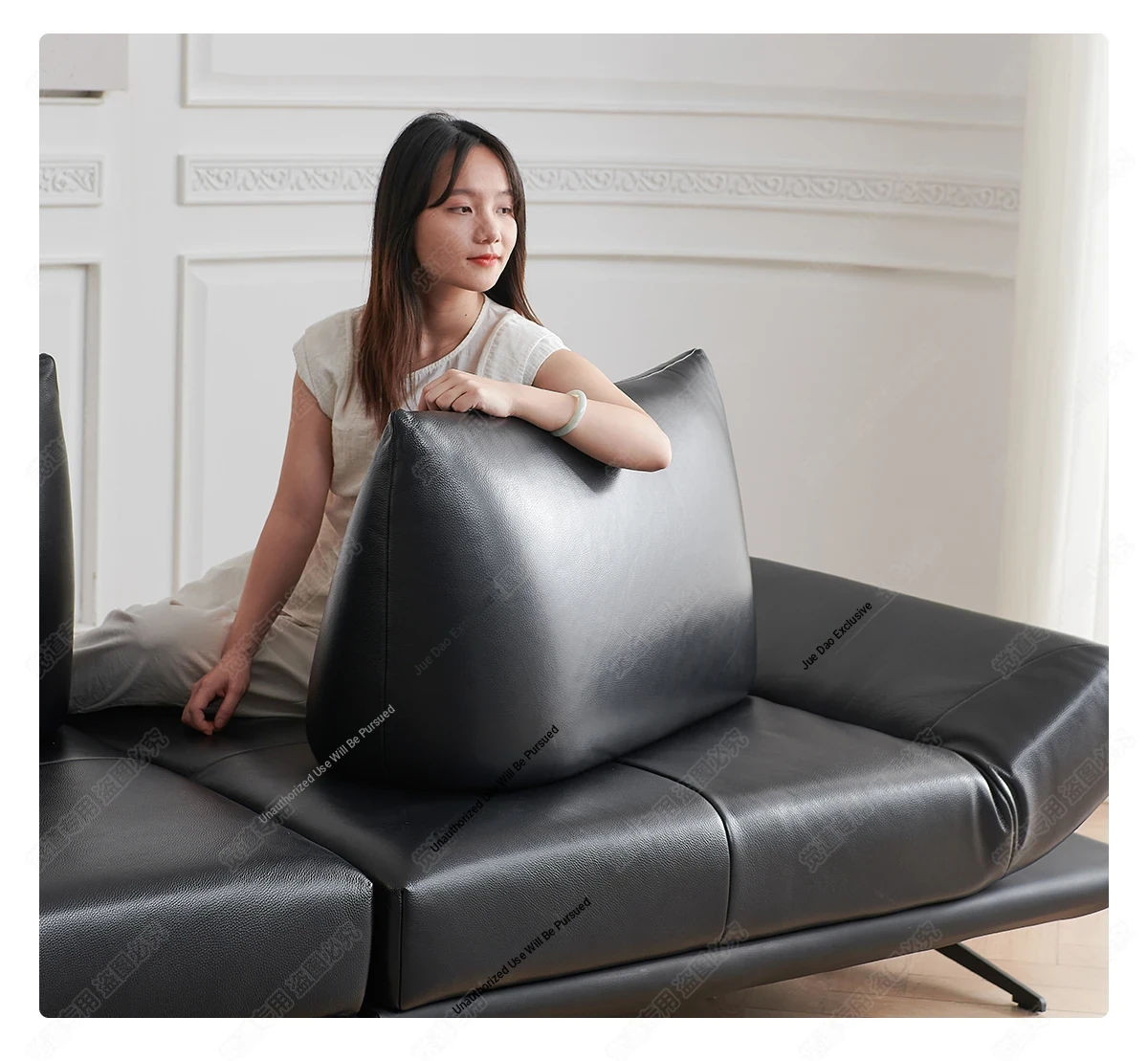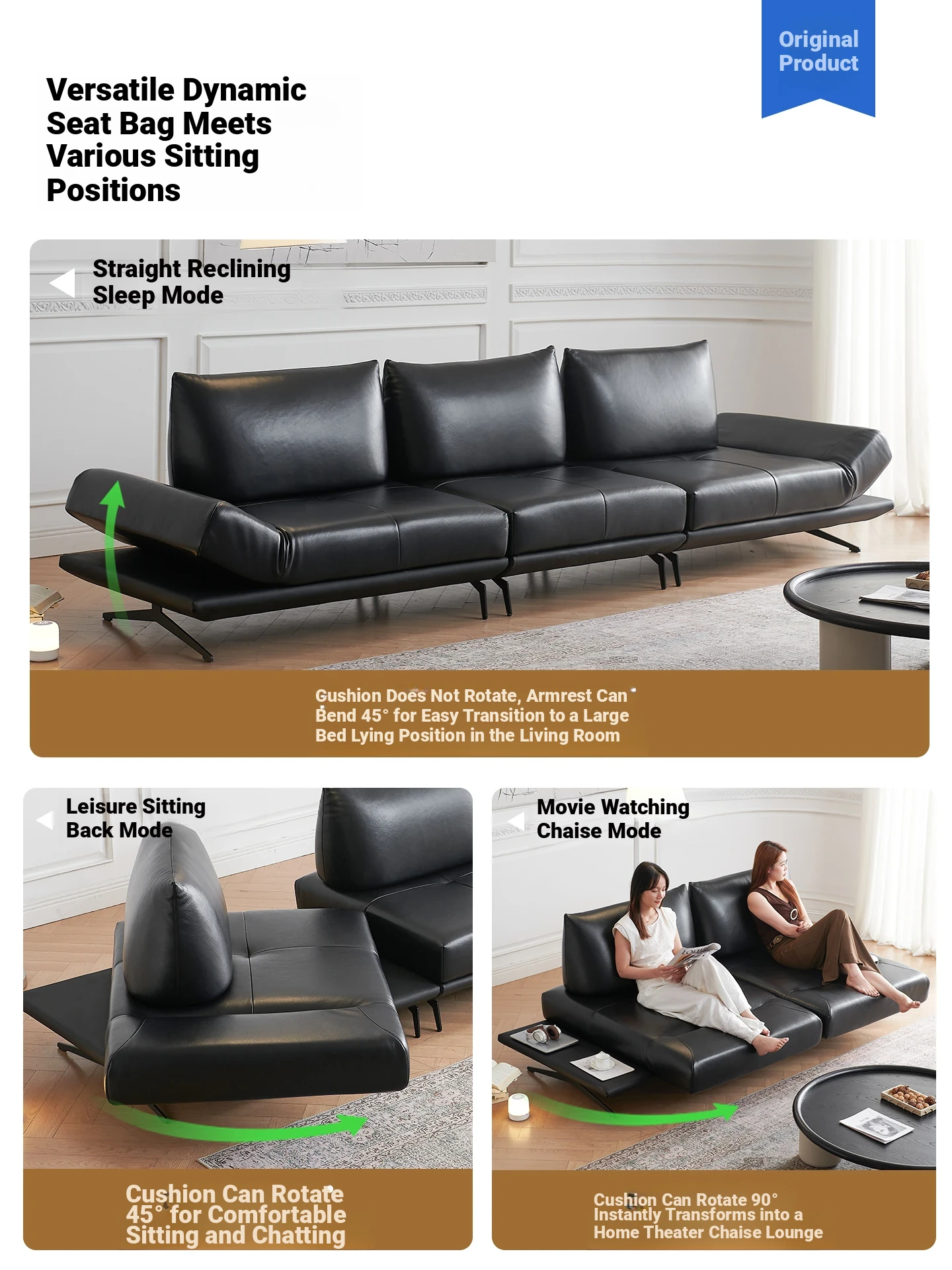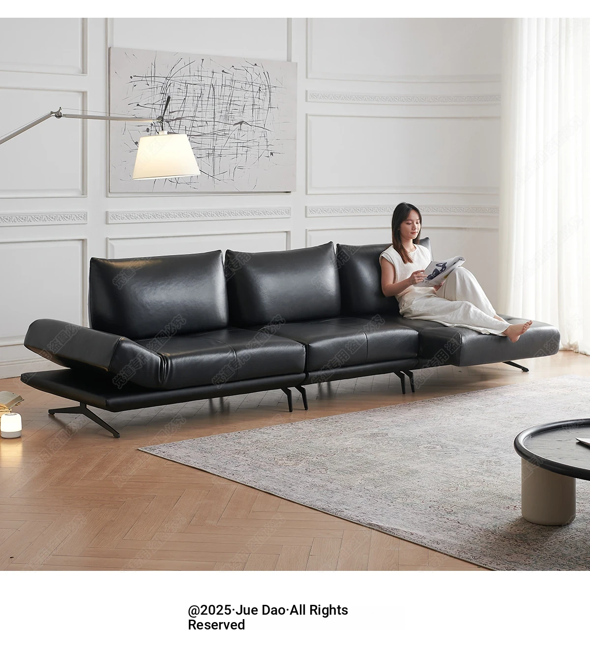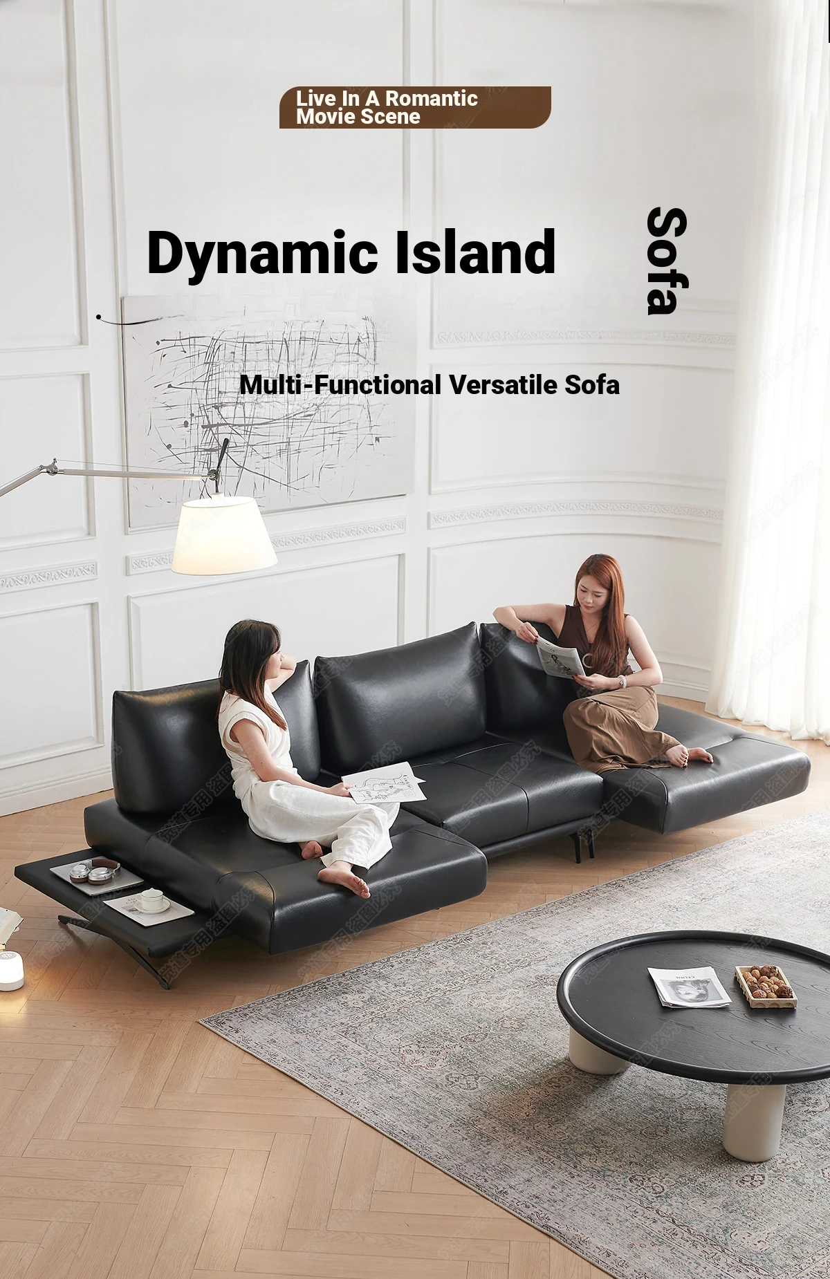 Italian Minimalist Genuine Leather Sofa - Multifunctional Rotatable Double-Sided Deep Seat in Black - Versatile and Dynamic Island Sofa for Your Living Room