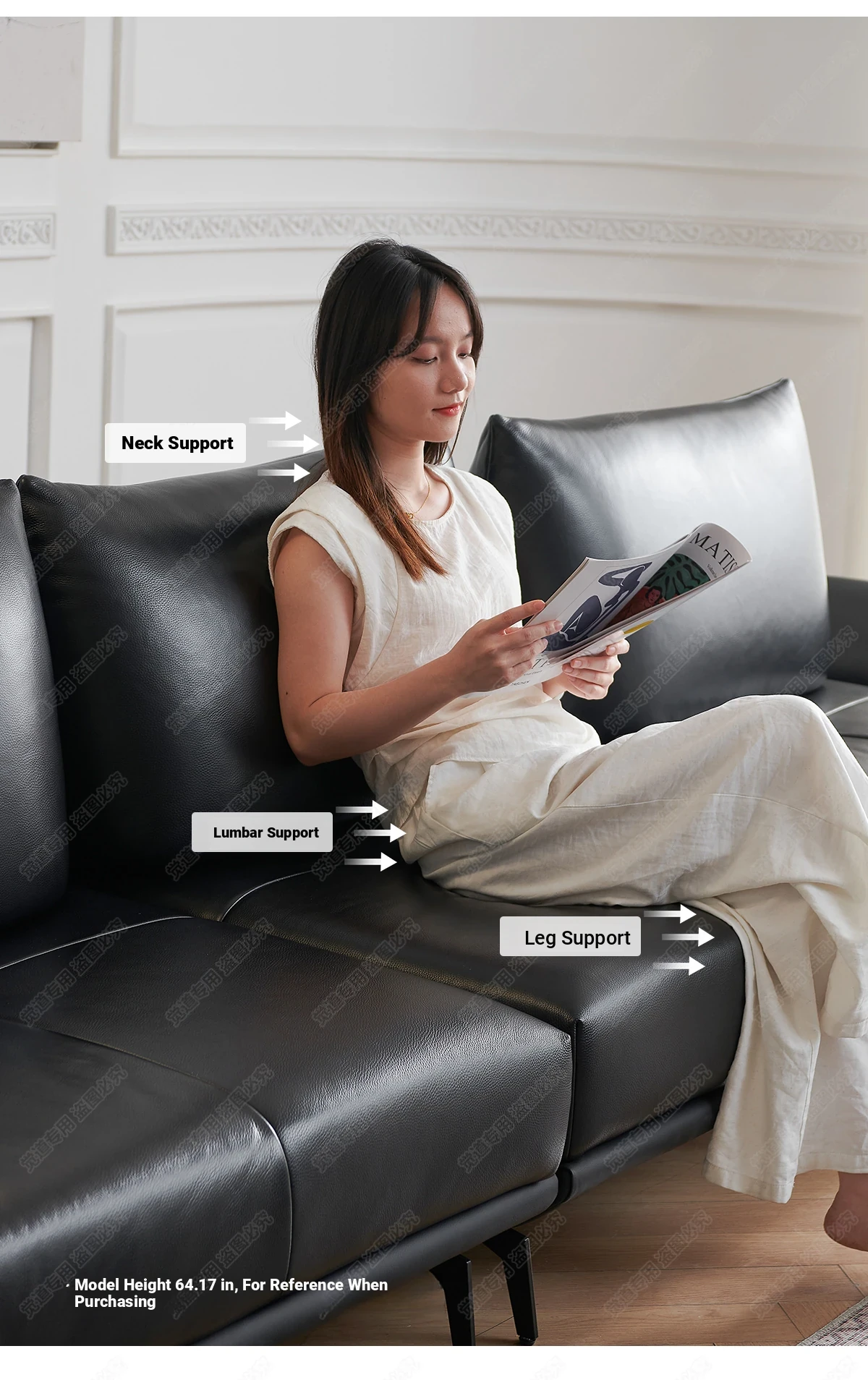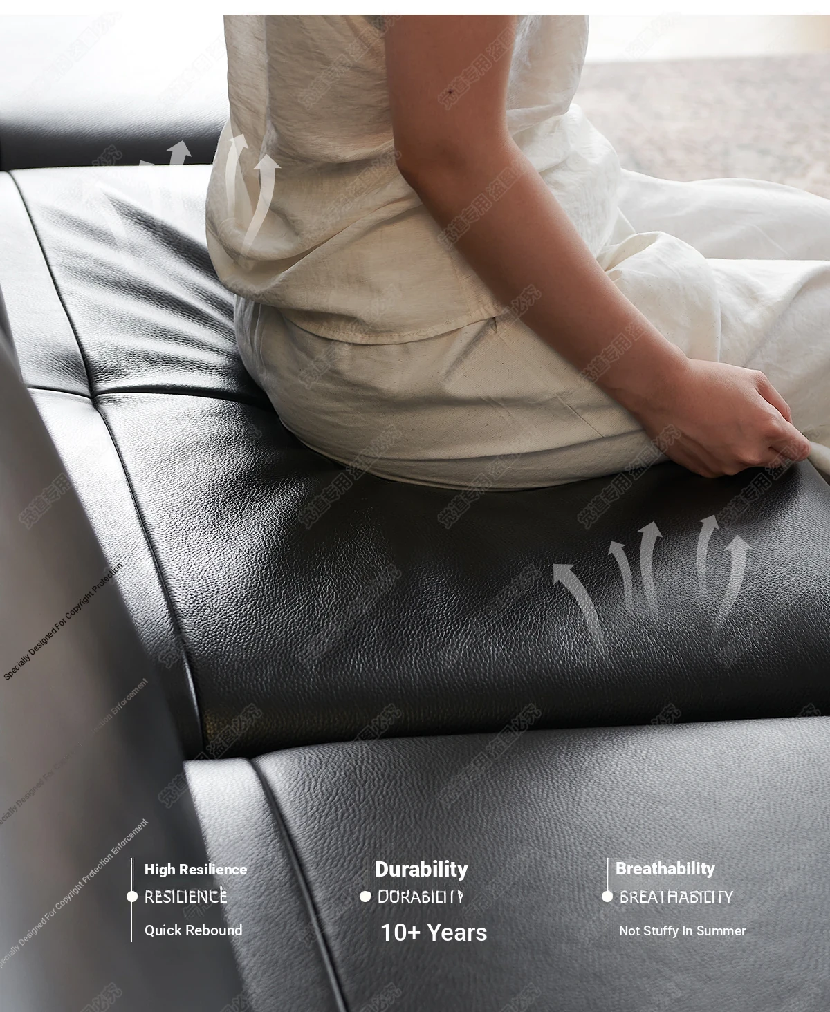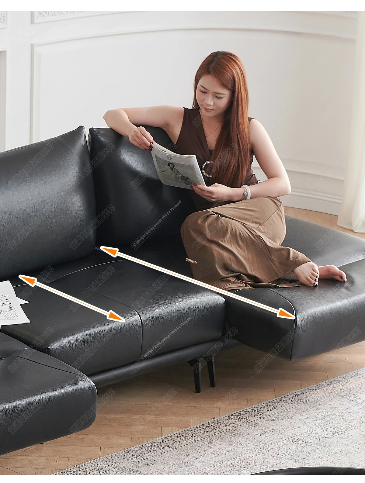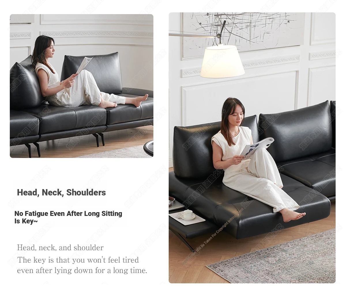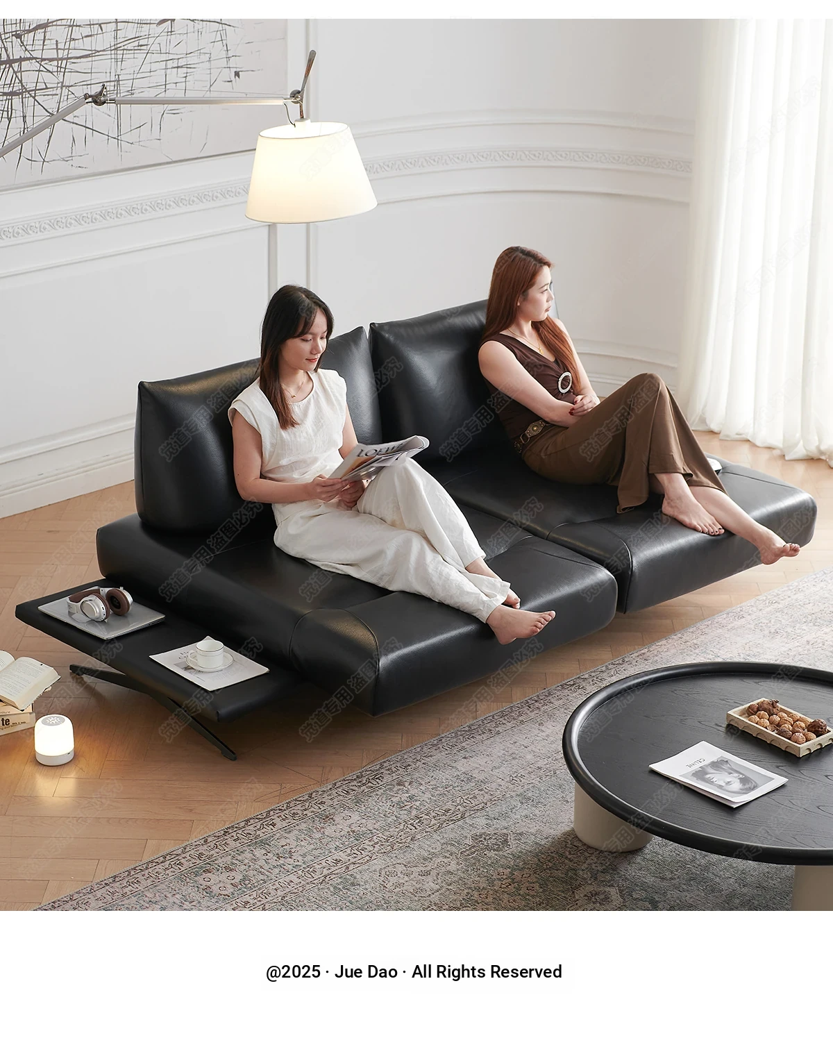 Italian Minimalist Genuine Leather Sofa - Multifunctional Rotatable Double-Sided Deep Seat in Black - Versatile and Dynamic Island Sofa for Your Living Room