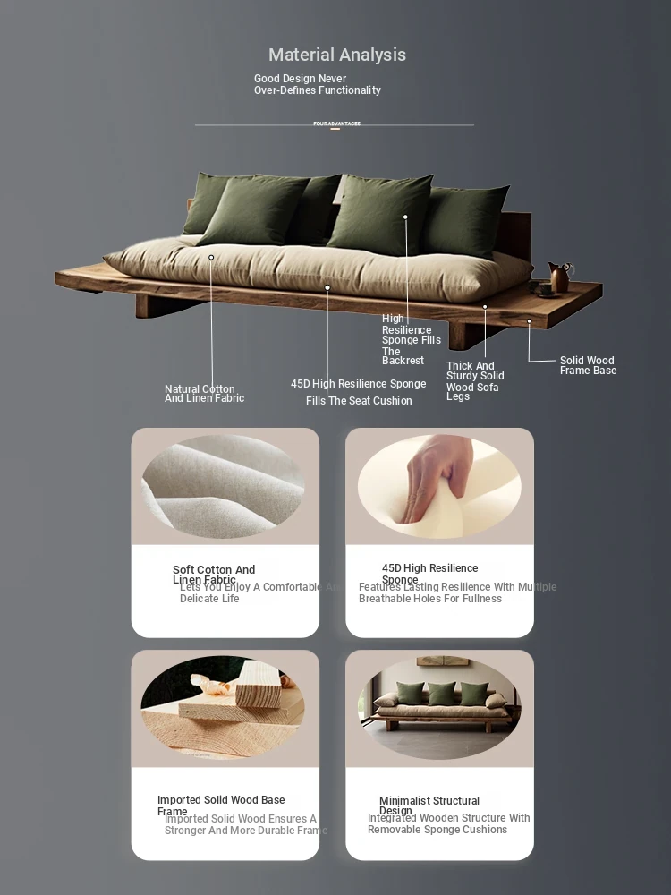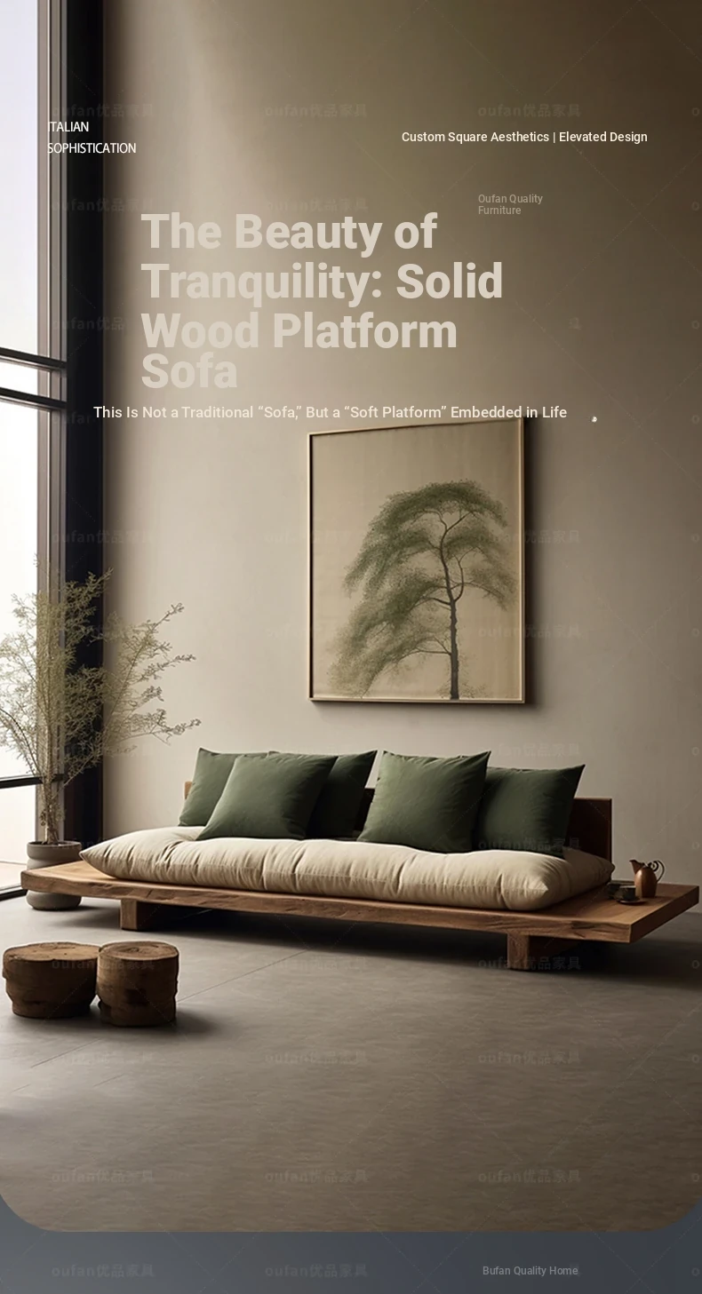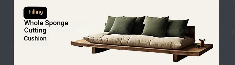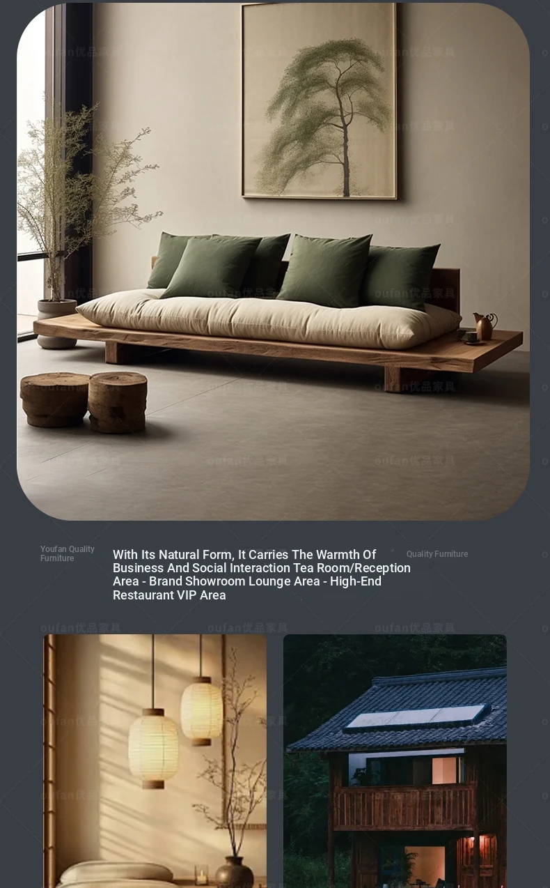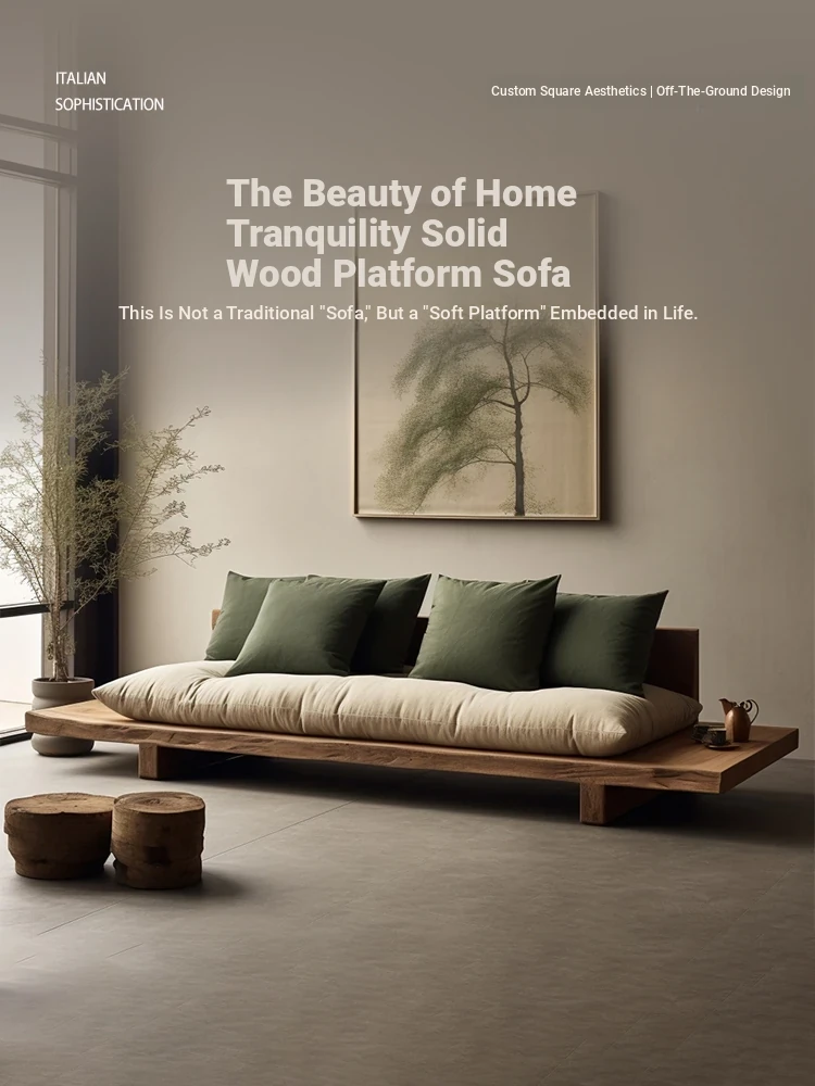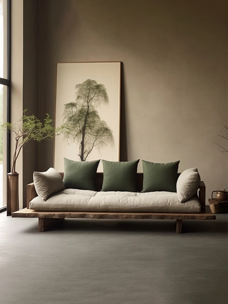 Japanese Wabi-Sabi Style Solid Wood Sofa - Minimalist Wooden Platform Couch for Cozy Living Rooms, Perfect for Small Spaces - Double and Triple Seat Options for Your Guesthouse or Home