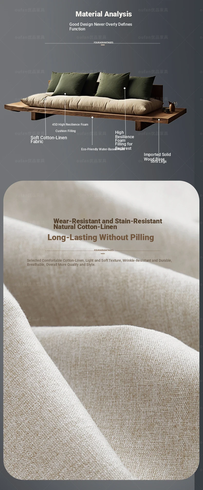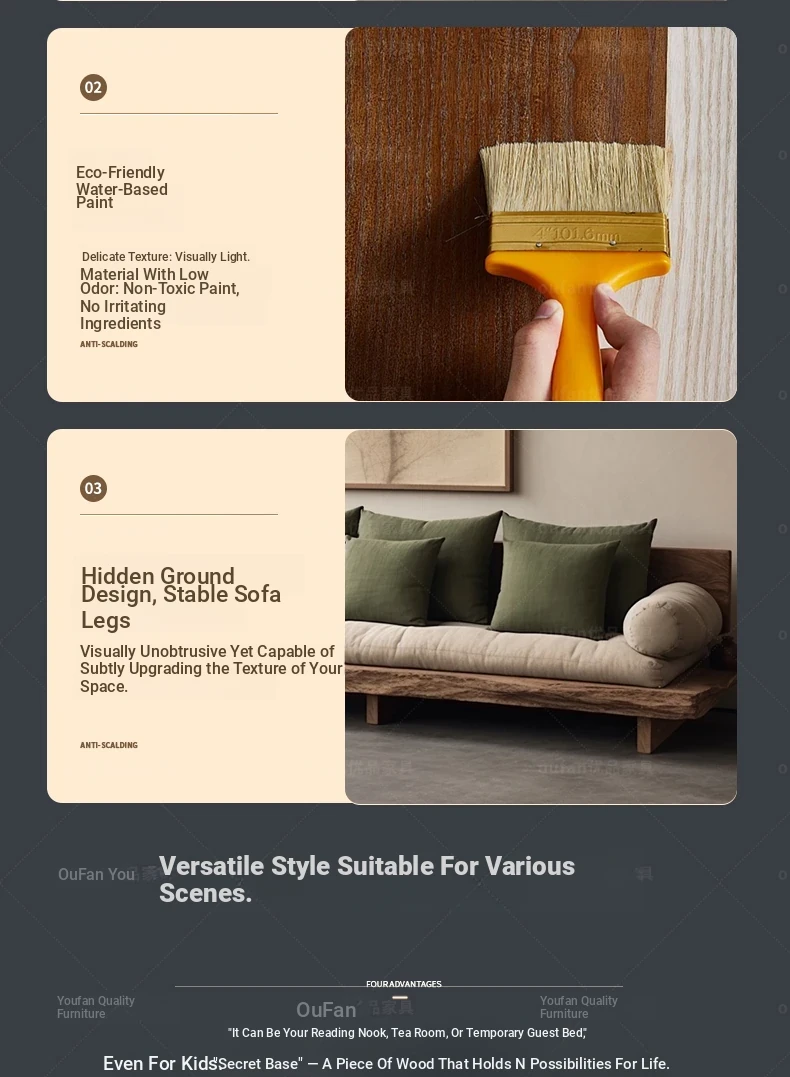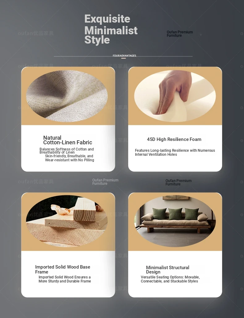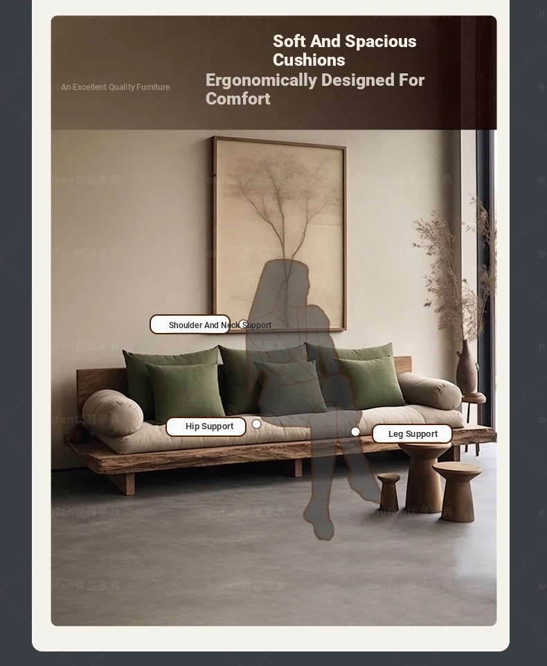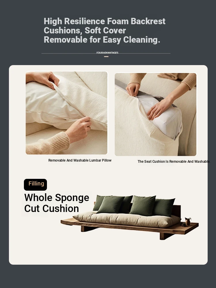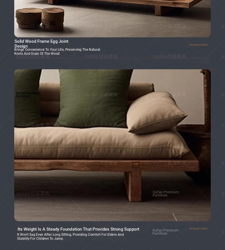 Japanese Wabi-Sabi Style Solid Wood Sofa - Minimalist Wooden Platform Couch for Cozy Living Rooms, Perfect for Small Spaces - Double and Triple Seat Options for Your Guesthouse or Home