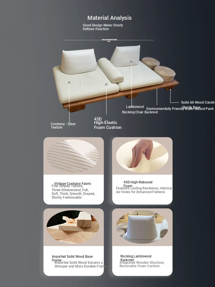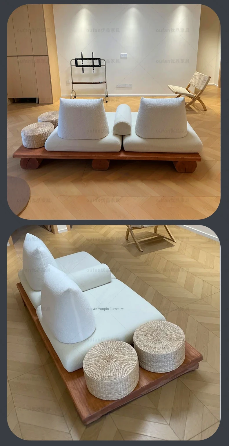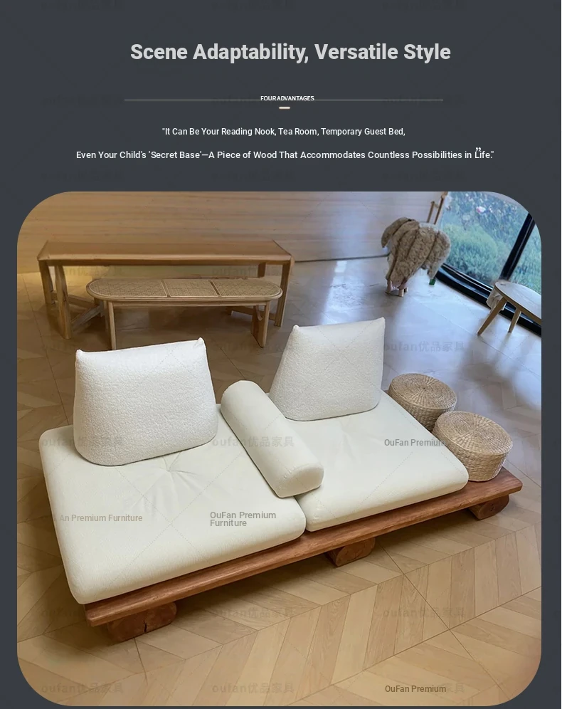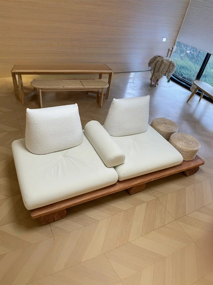 Japanese Wabi-Sabi Style Solid Wood Sofa - Perfect for Small Living Rooms, Tatami Areas, and Hospitality Settings - Adds a Touch of Serenity to Your Space