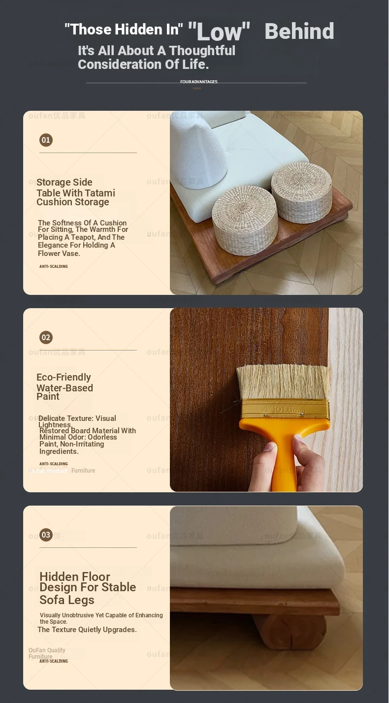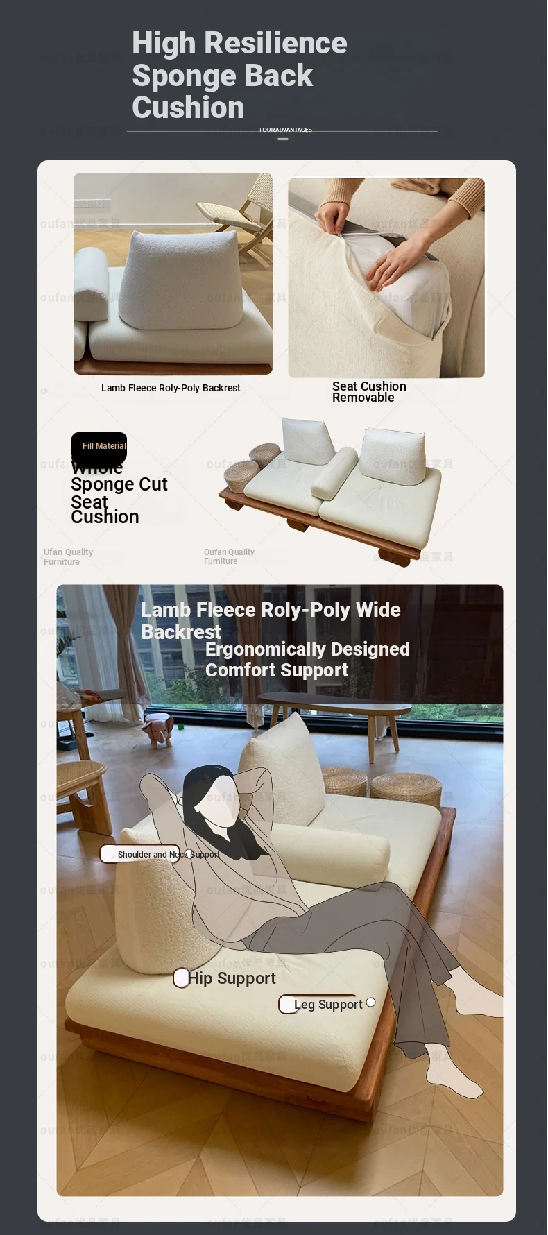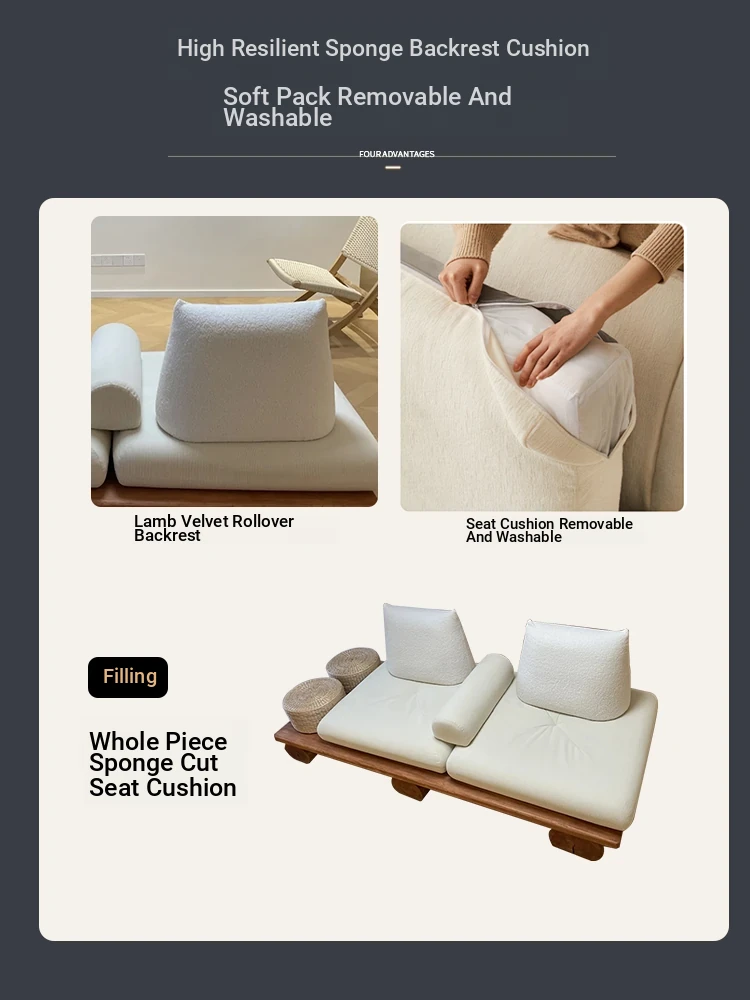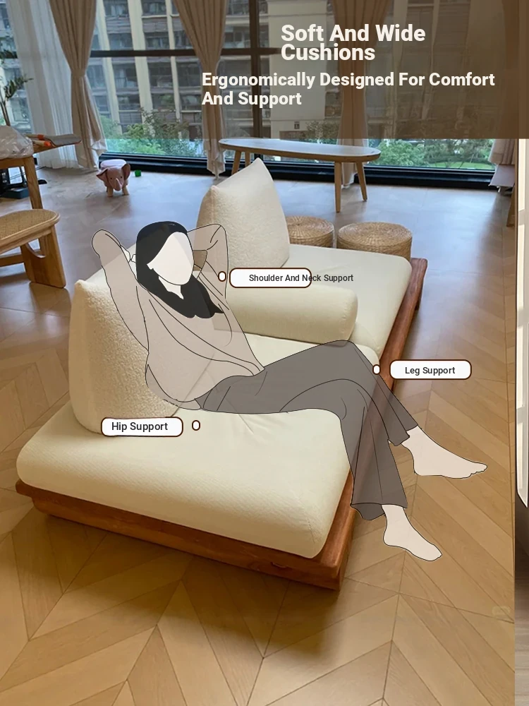 Japanese Wabi-Sabi Style Solid Wood Sofa - Perfect for Small Living Rooms, Tatami Areas, and Hospitality Settings - Adds a Touch of Serenity to Your Space