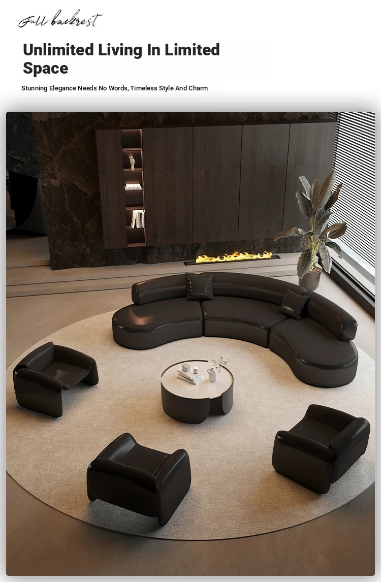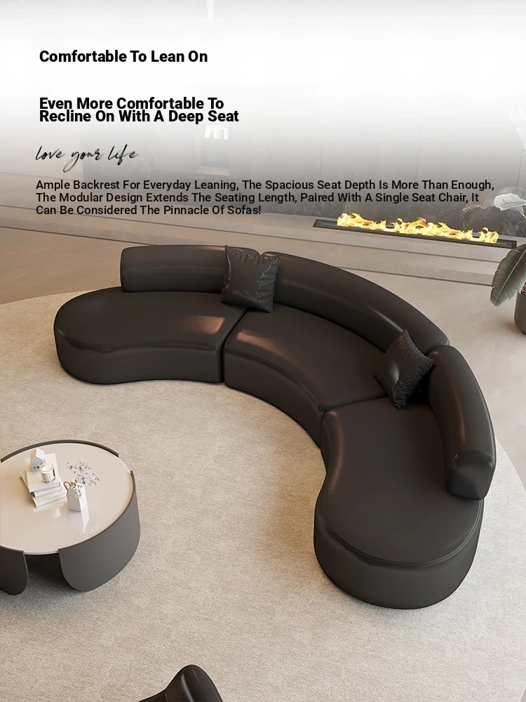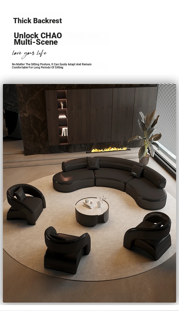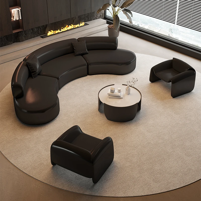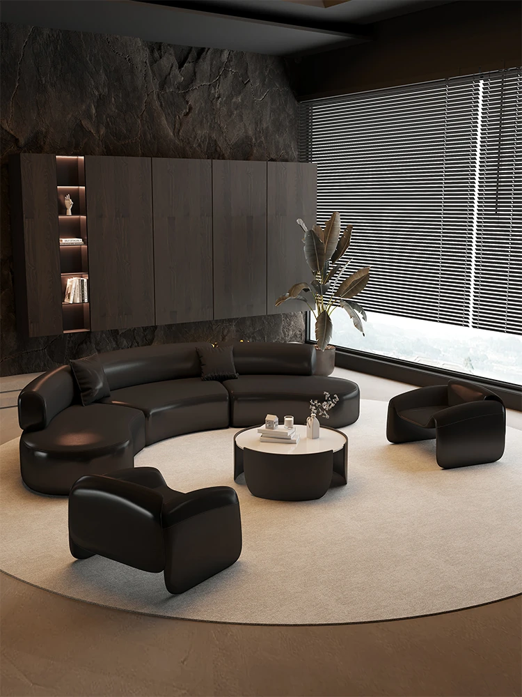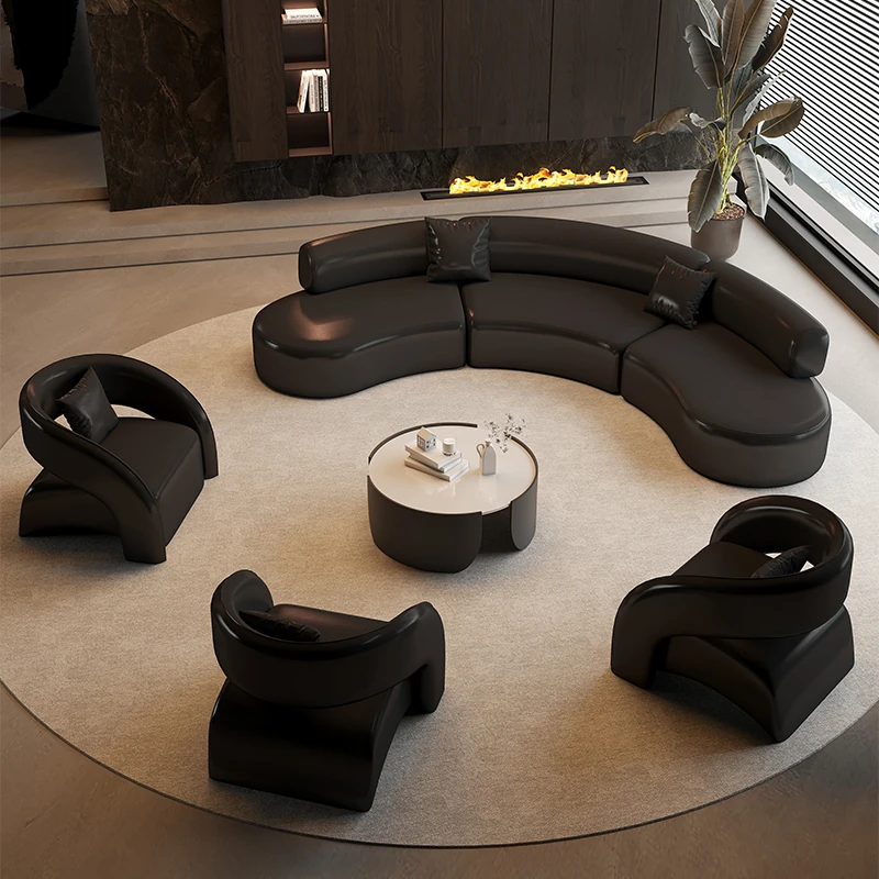 Luxurious Black Semi-Circular Sofa - Perfect for Hotels, Sales Offices, Lobbies, Beauty Salons, and Office Lounge Areas