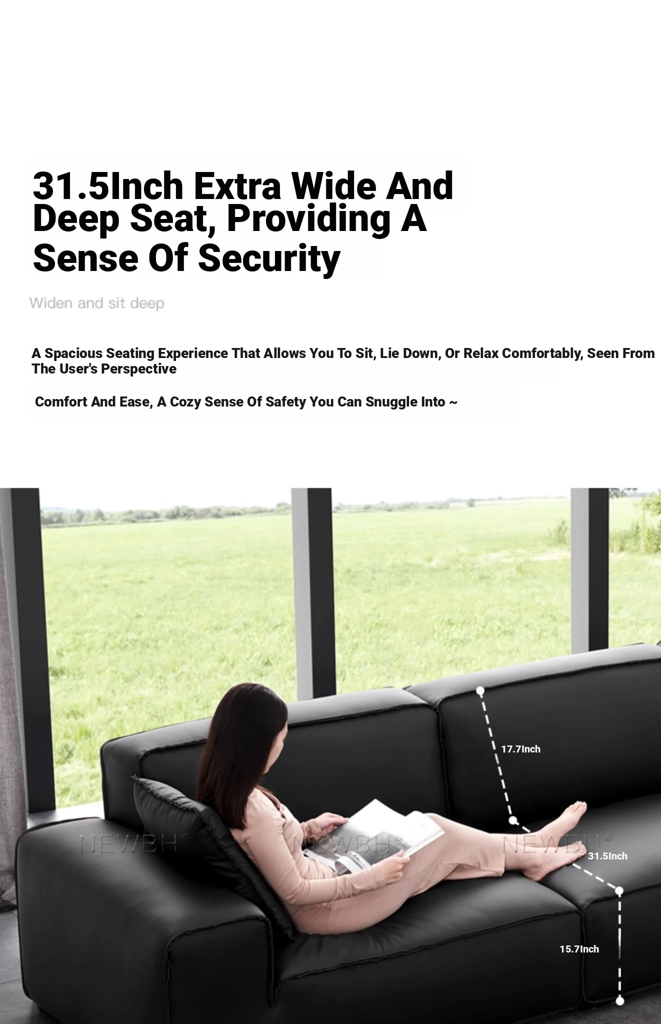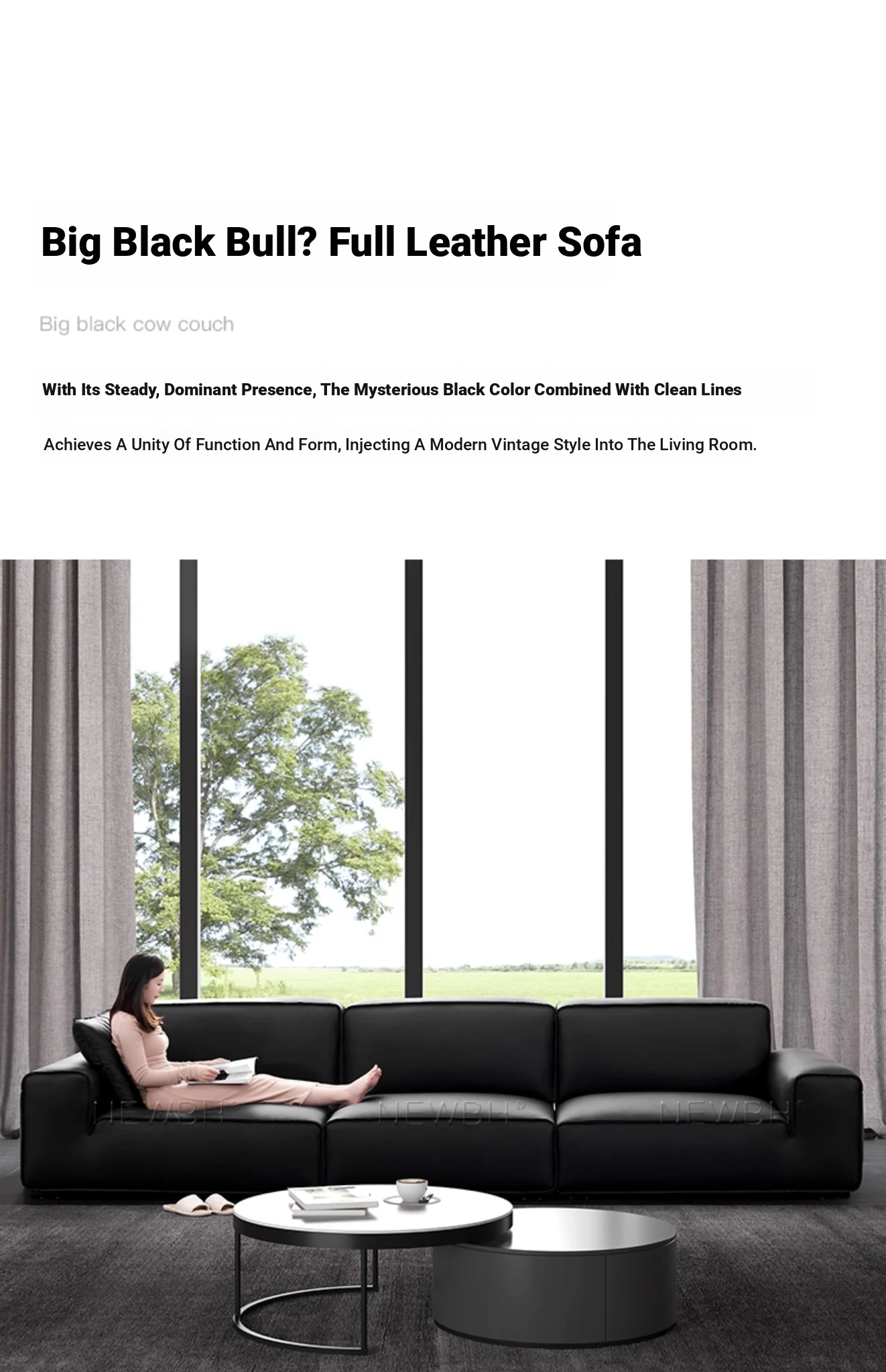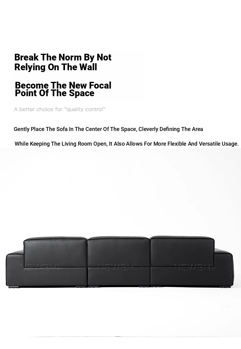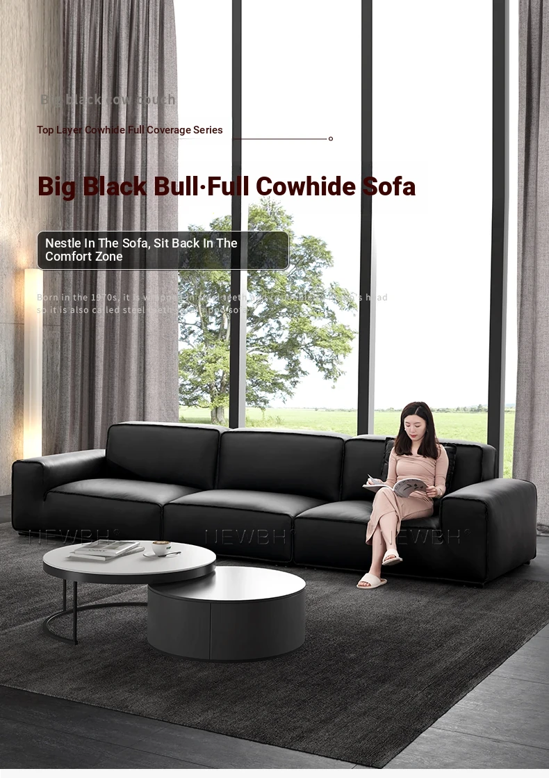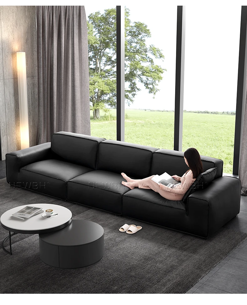 Modern Black Genuine Leather Sofa - Luxurious Latex Upholstered Couch for Living Room, Featuring Premium Top-Grain Cowhide and Stylish Block Design
