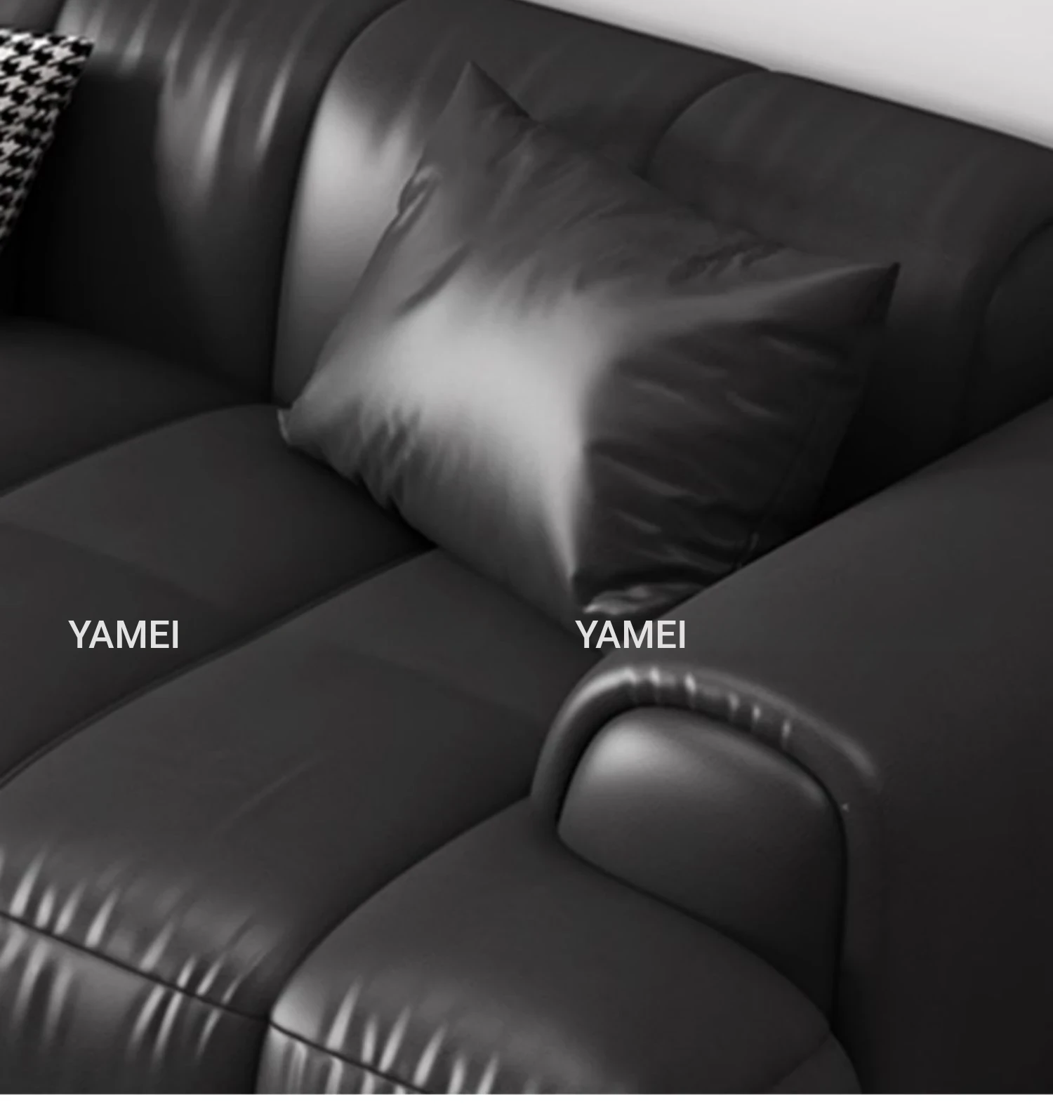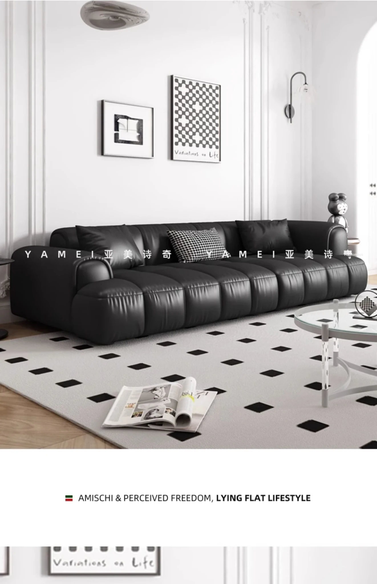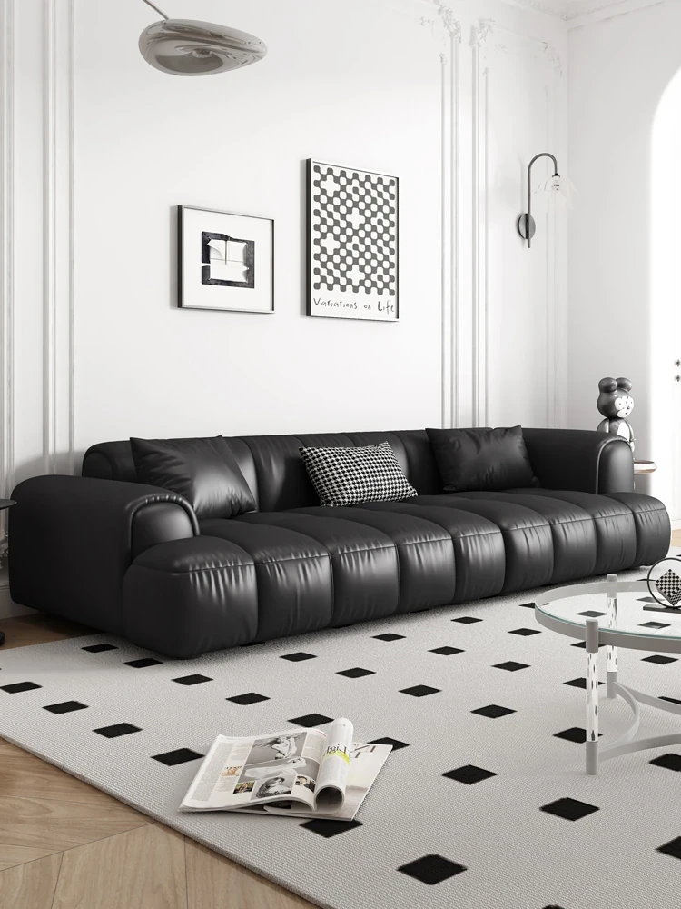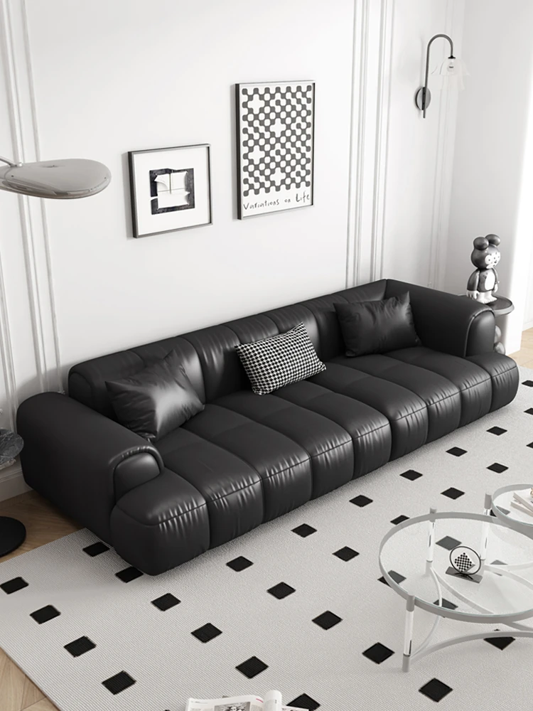 Modern Italian Leather Sofa for Small Living Rooms - Minimalist Design with Puff Top, Made of Premium Top-Grain Cowhide, Stylish Black Designer Sofa