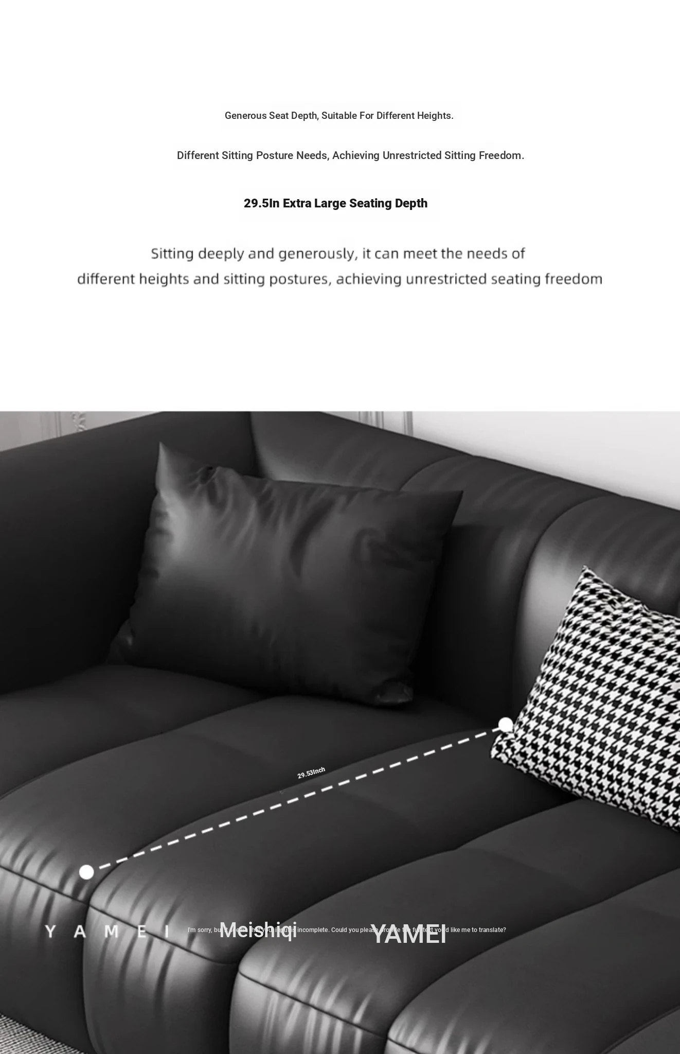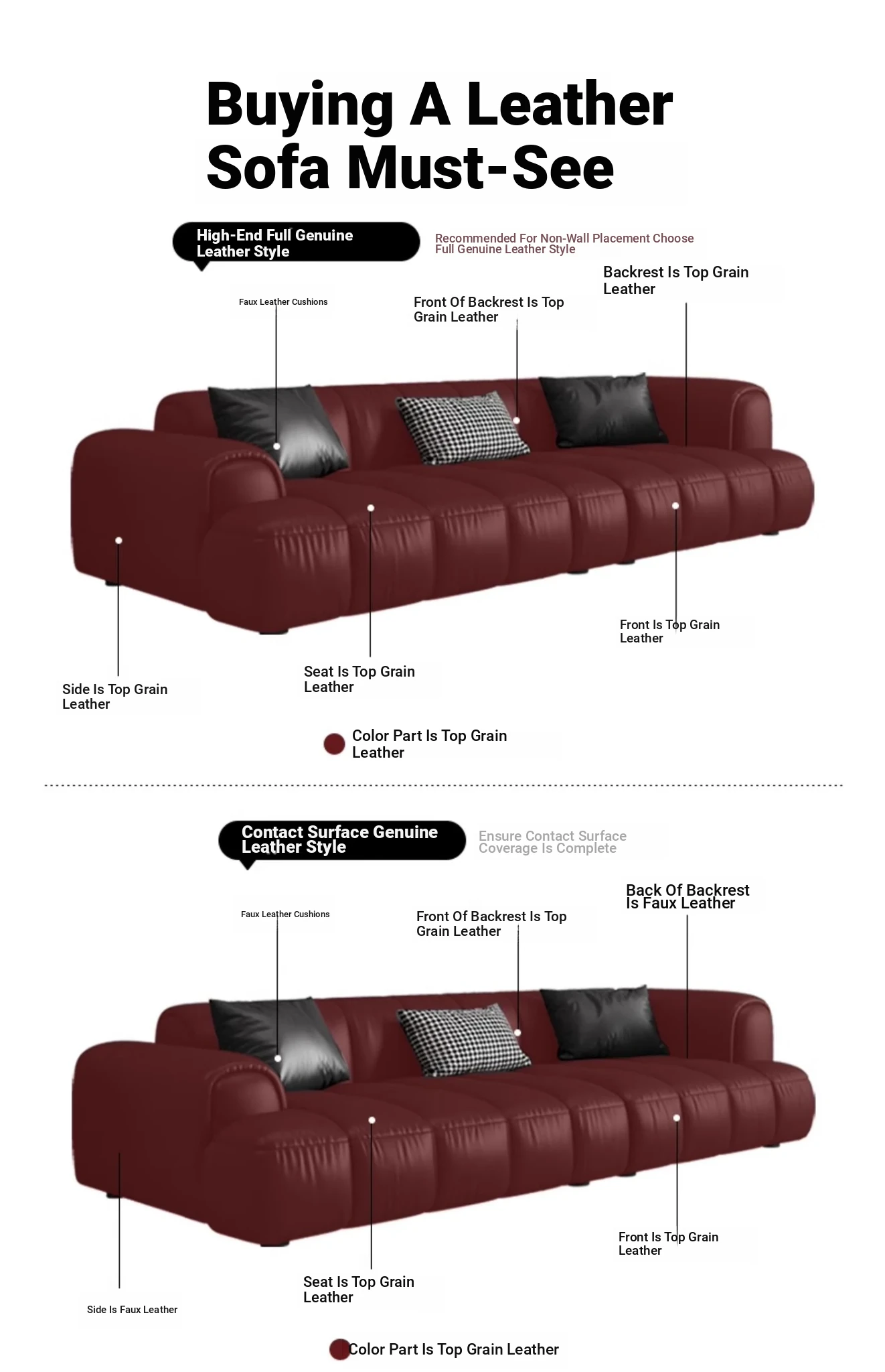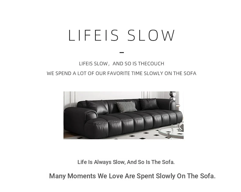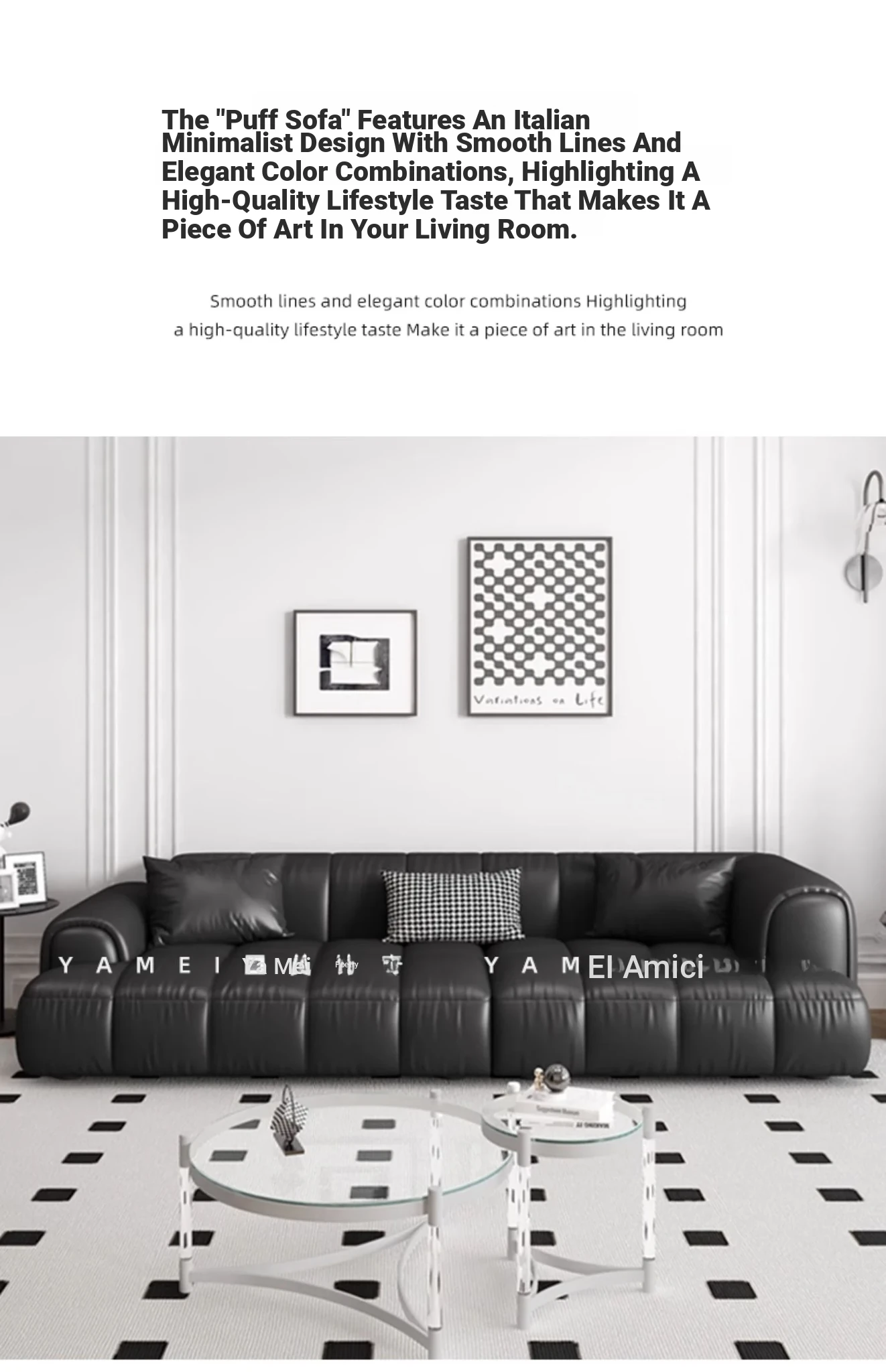 Modern Italian Leather Sofa for Small Living Rooms - Minimalist Design with Puff Top, Made of Premium Top-Grain Cowhide, Stylish Black Designer Sofa