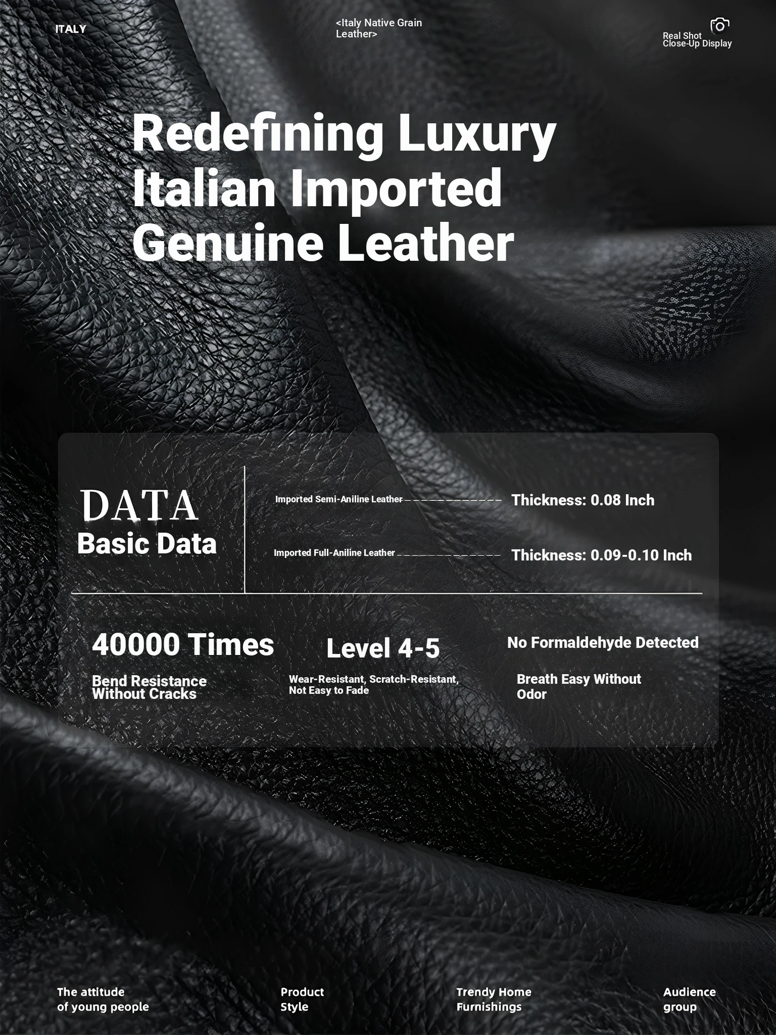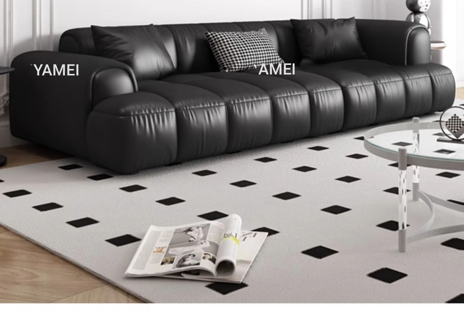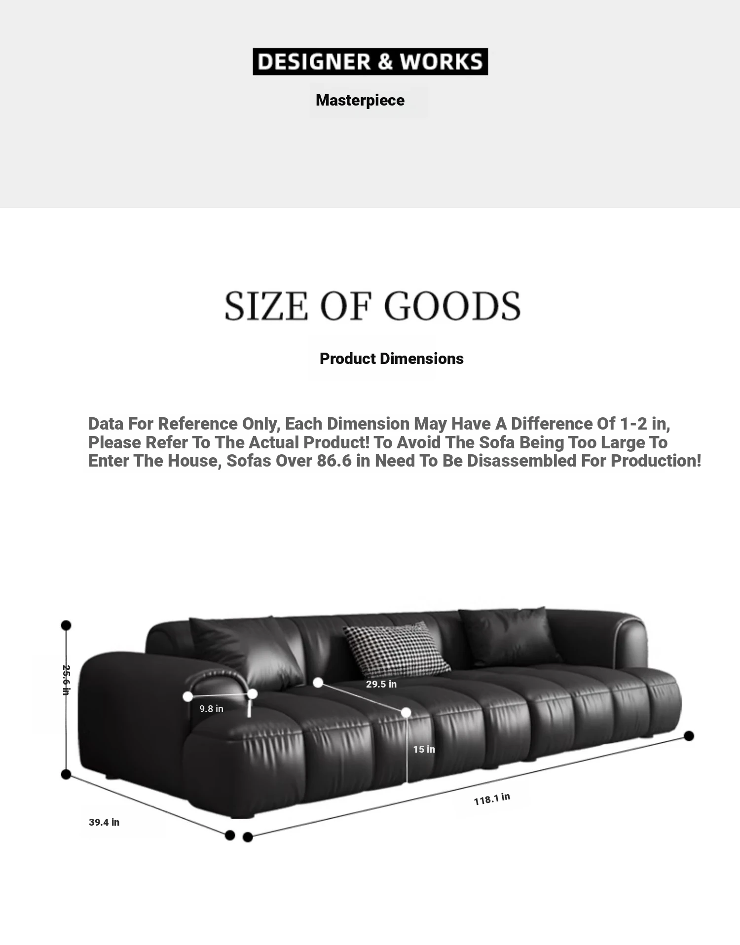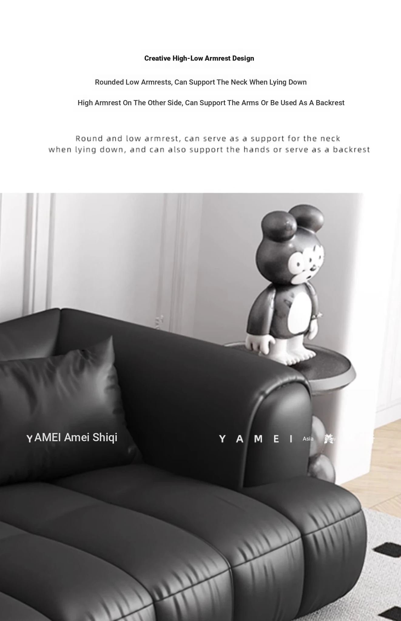 Modern Italian Leather Sofa for Small Living Rooms - Minimalist Design with Puff Top, Made of Premium Top-Grain Cowhide, Stylish Black Designer Sofa