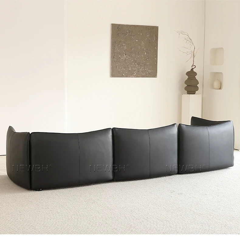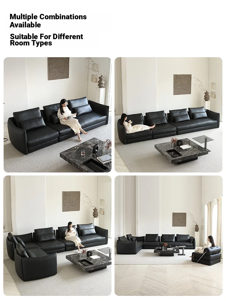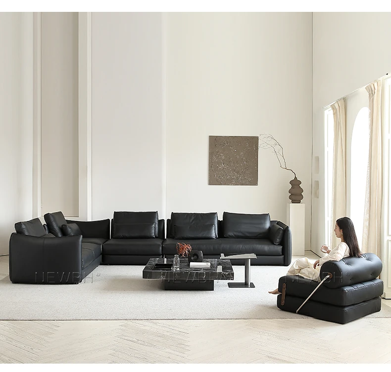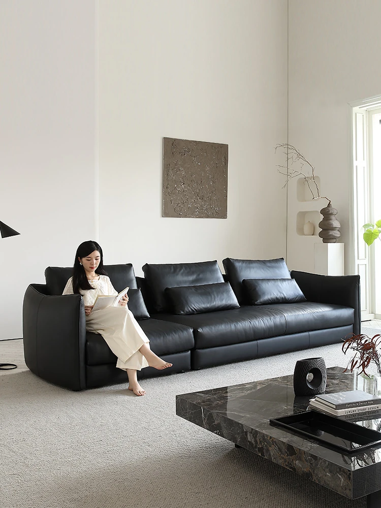 Modern Italian Minimalist Black Top-Grain Leather Sofa - 2025 New Arrival, Sleek High-End Design for Your Living Room