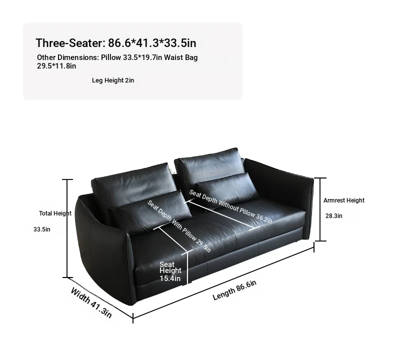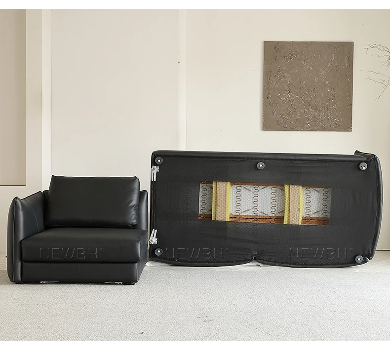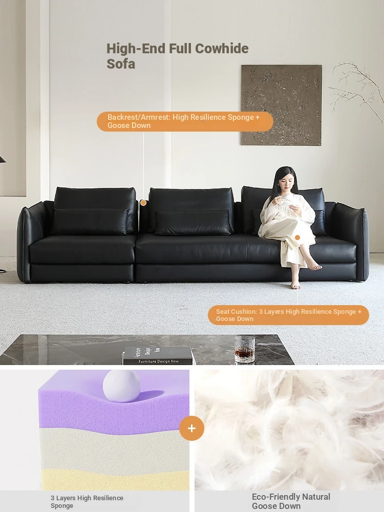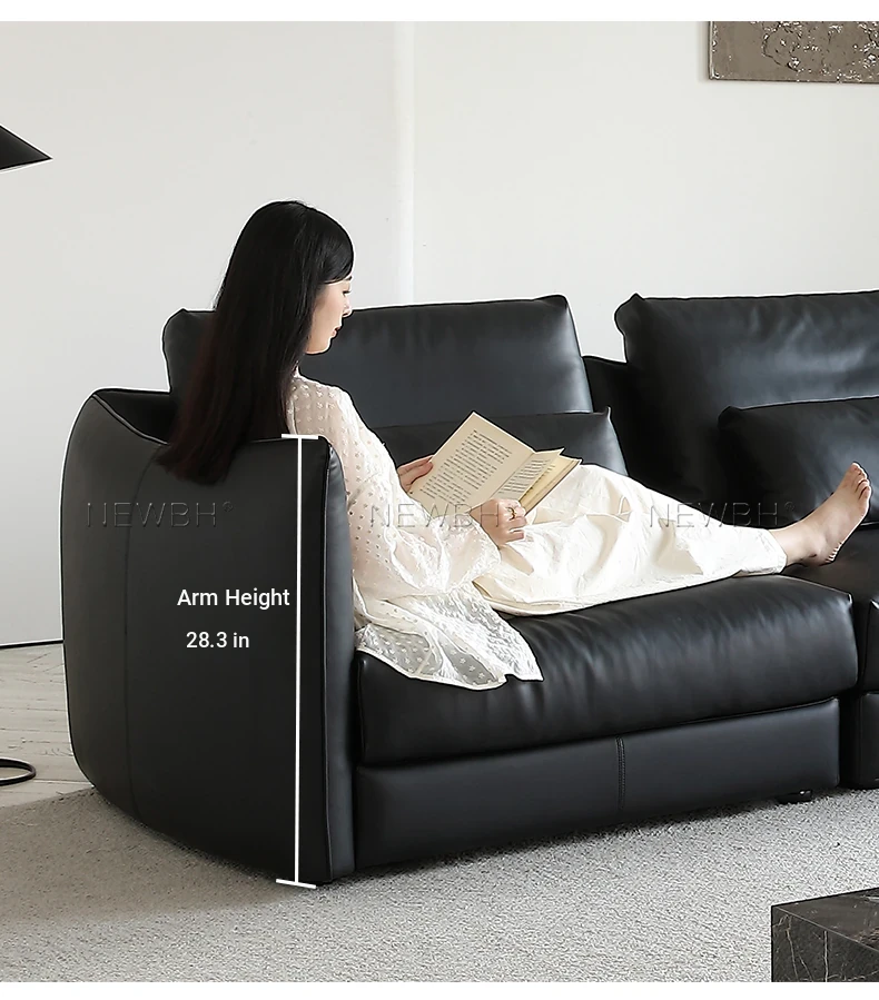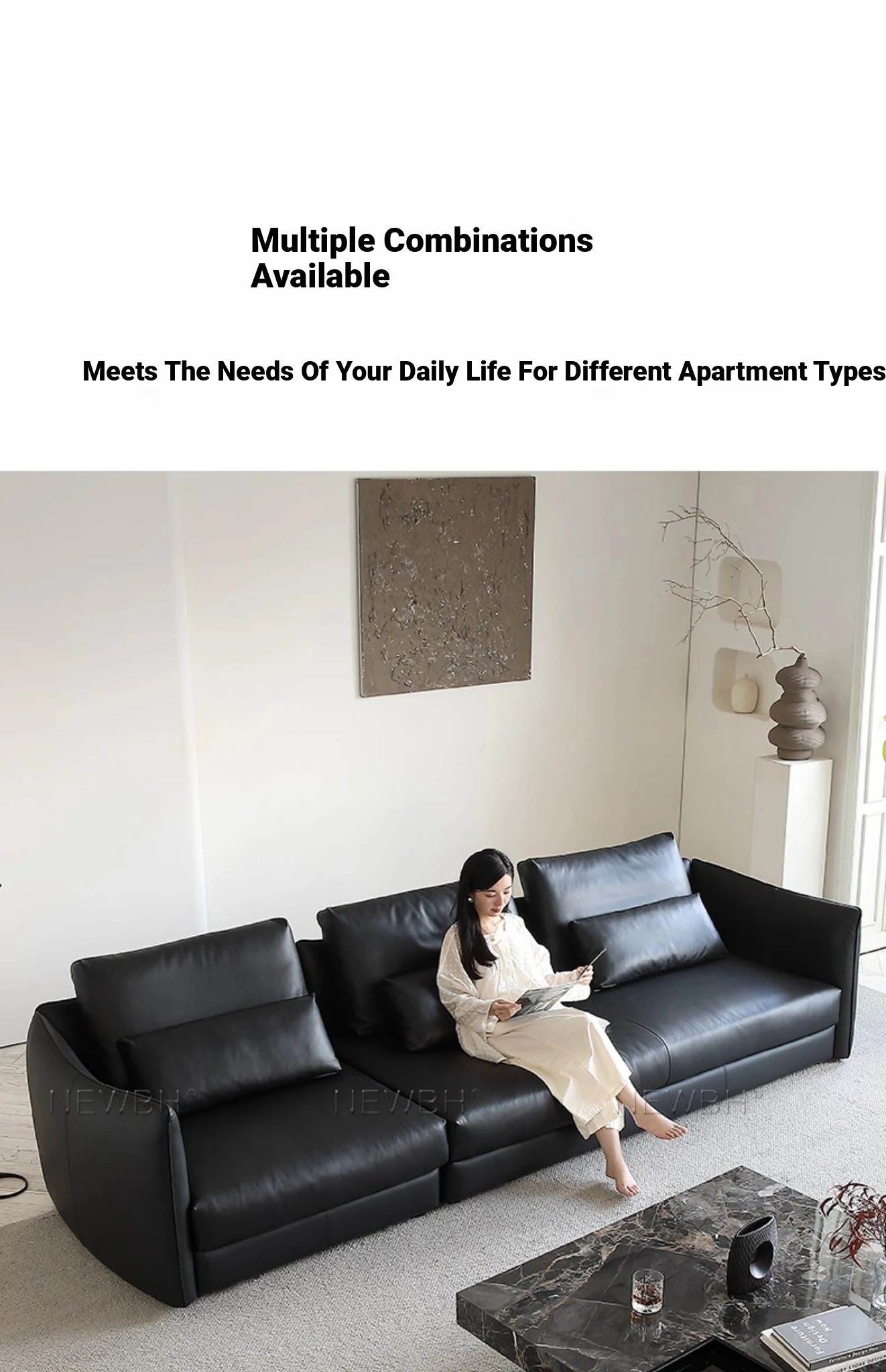 Modern Italian Minimalist Black Top-Grain Leather Sofa - 2025 New Arrival, Sleek High-End Design for Your Living Room