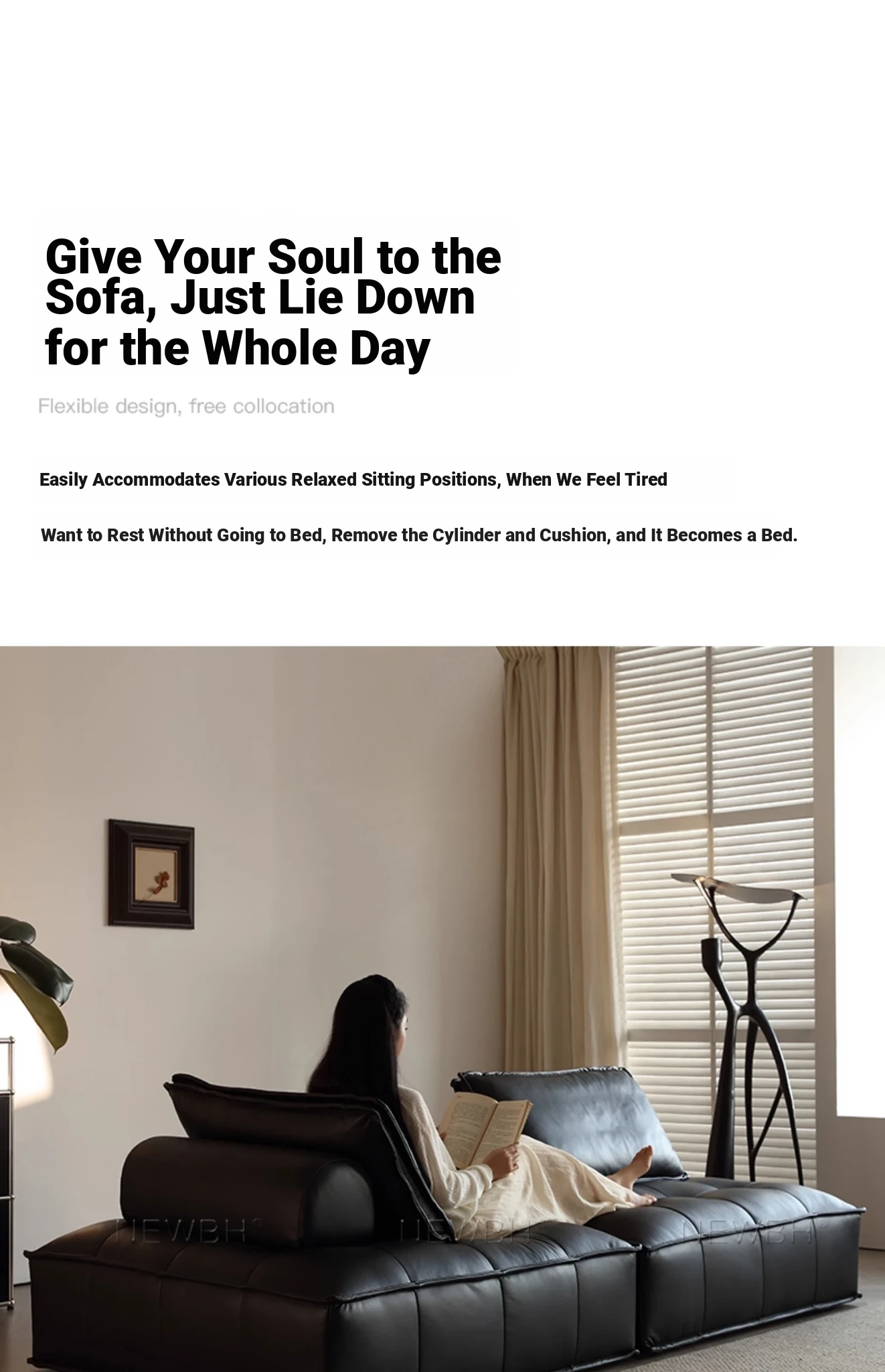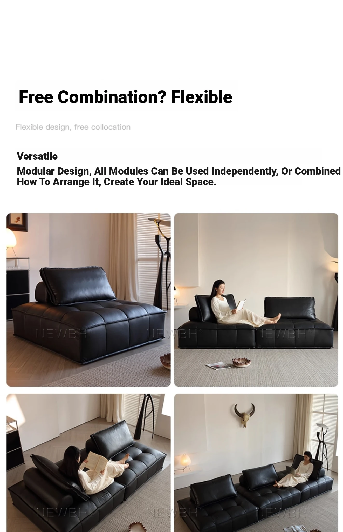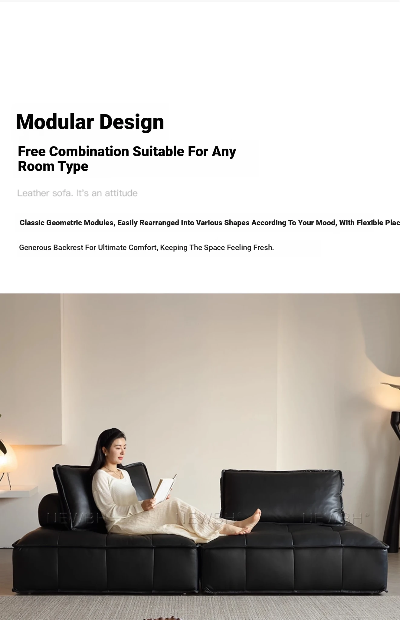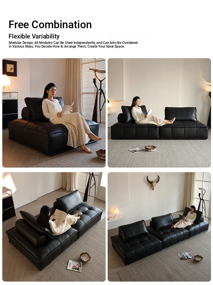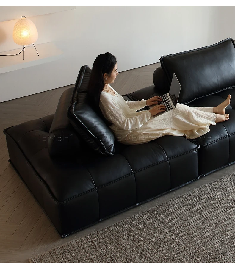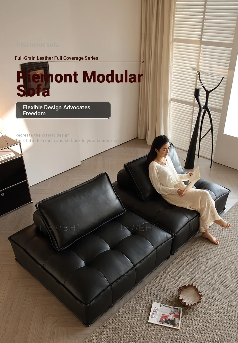 Piedmont Designer Black Italian Minimalist Tofu Block Modular Sofa - Crafted from Full-Grain Leather for Ultimate Comfort and Style