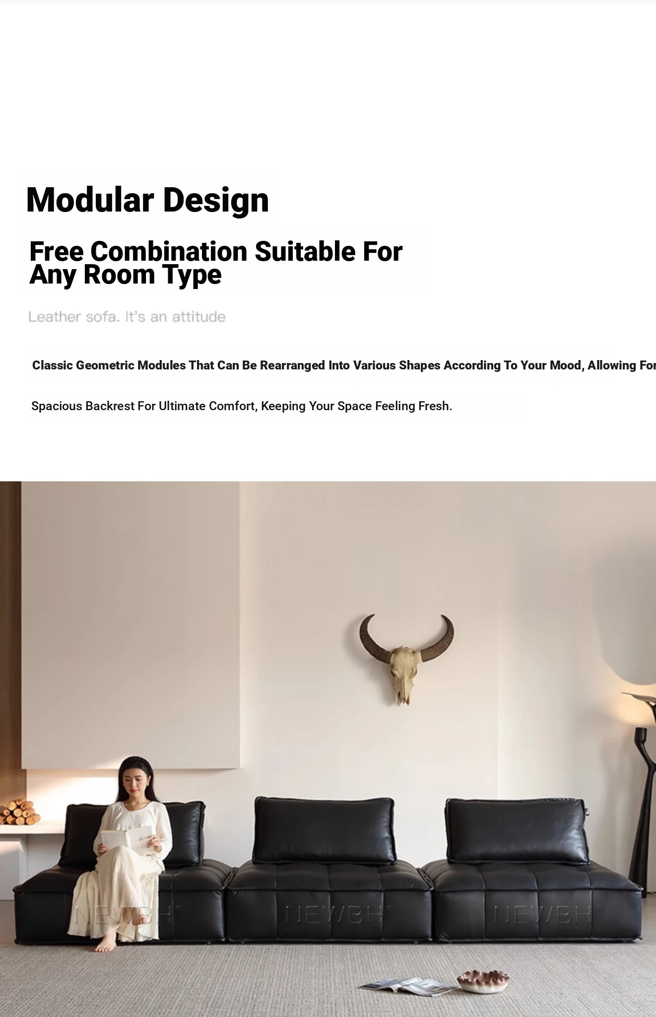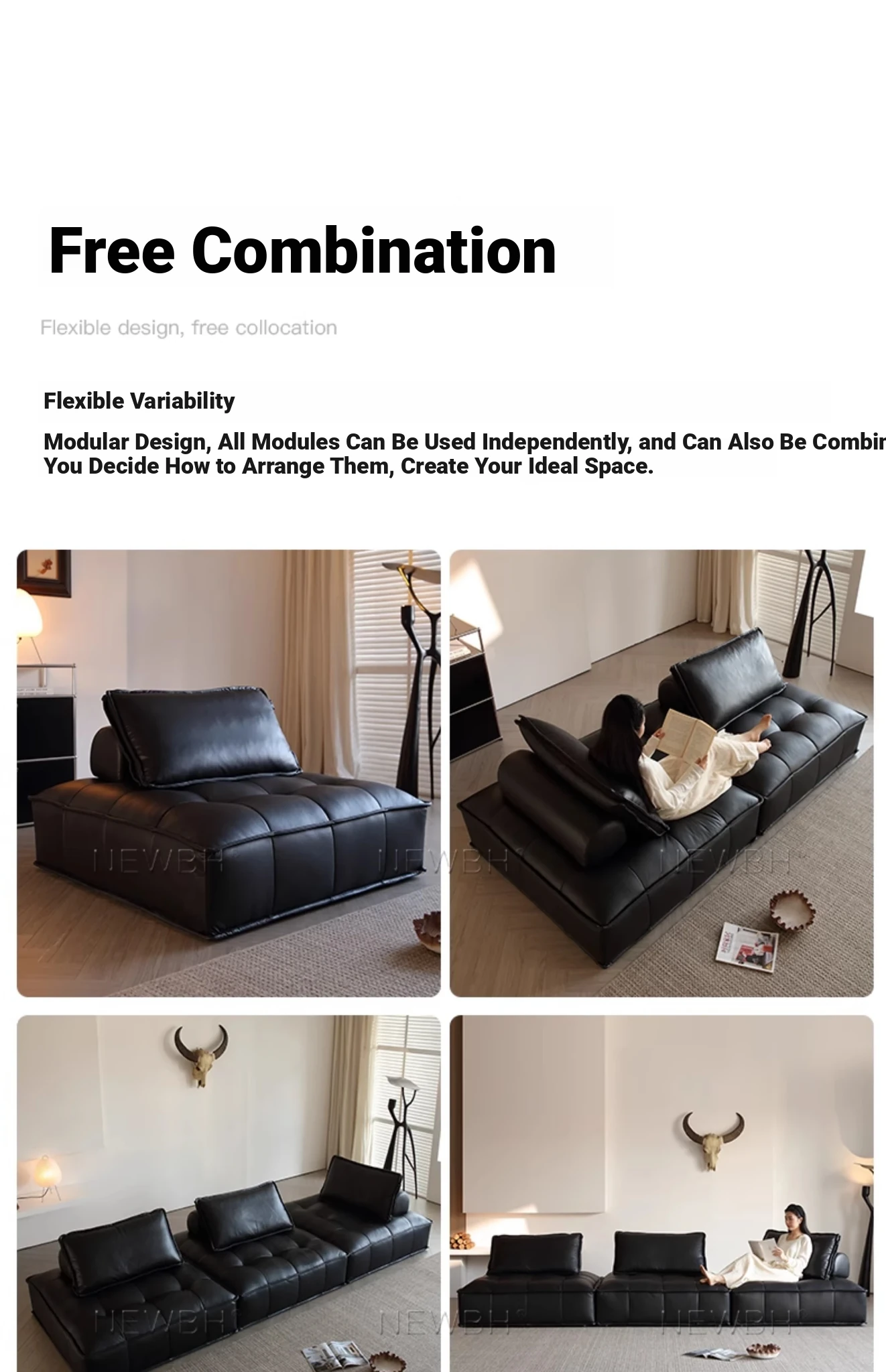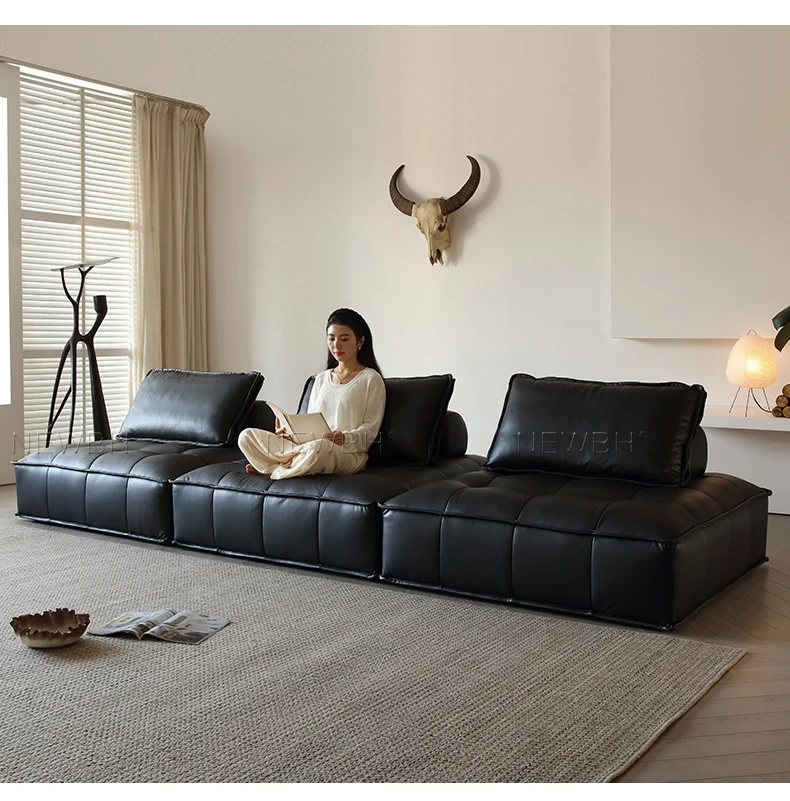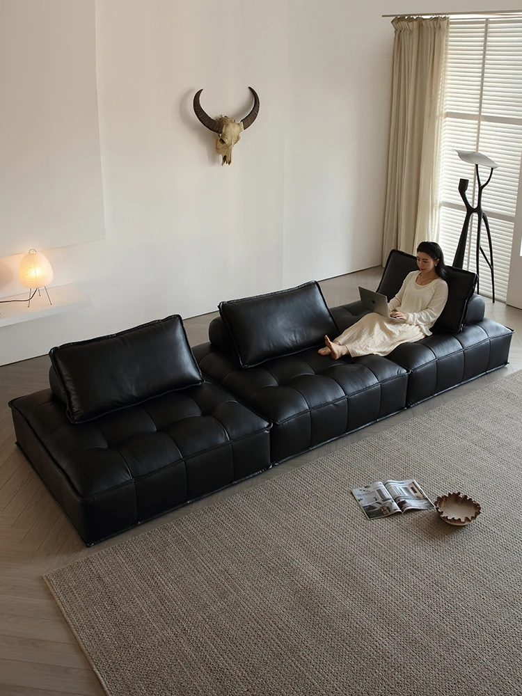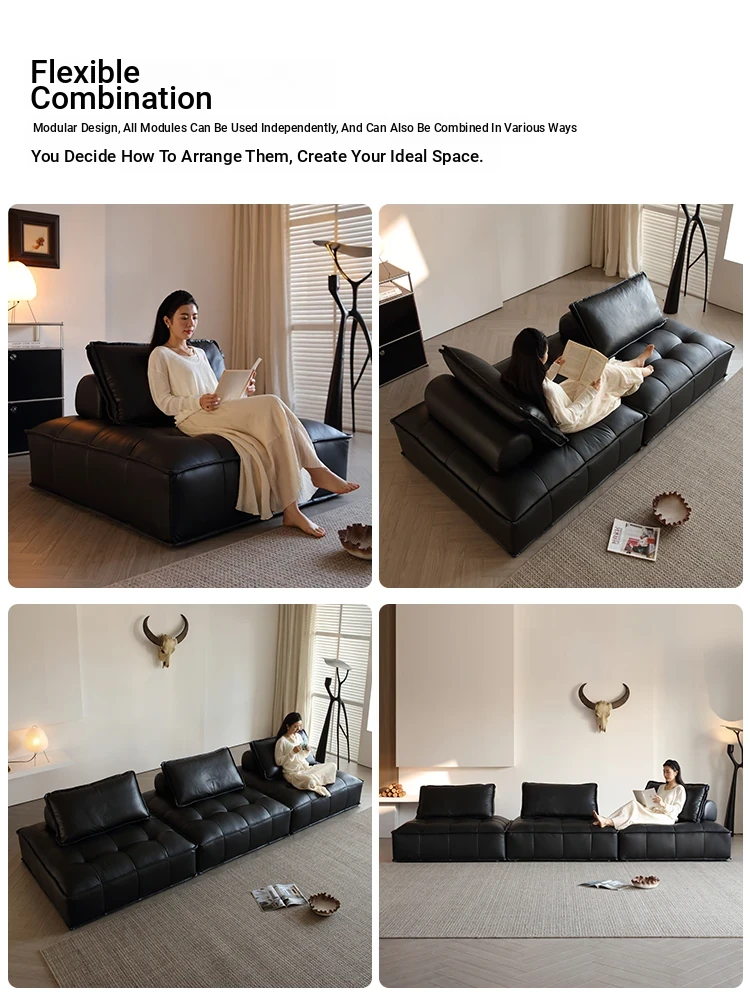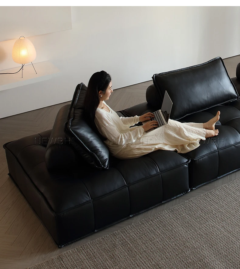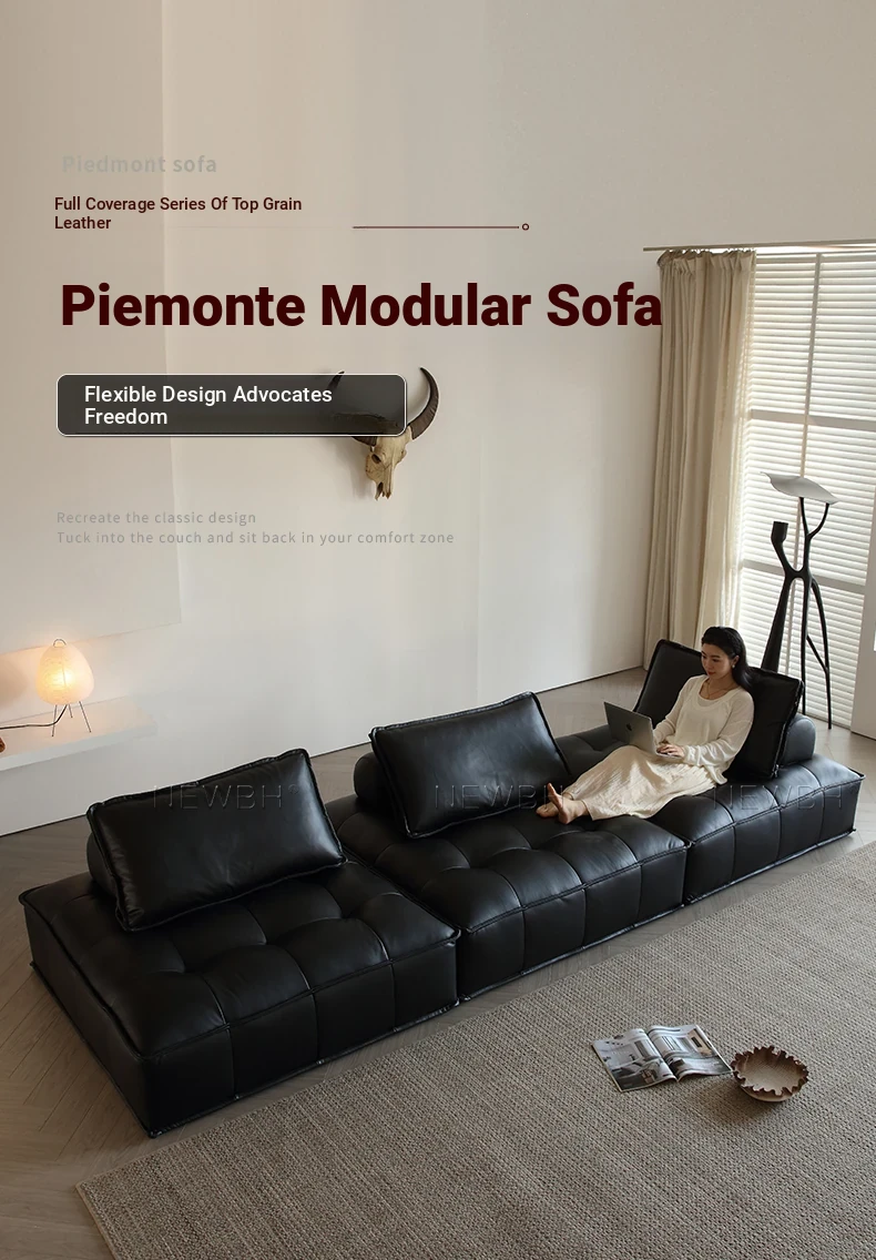 Piedmont Modular Sofa - Luxurious Full Grain Leather in Classic Black, Versatile Cube Design for Customizable Arrangements, Perfect for Modern Living Spaces