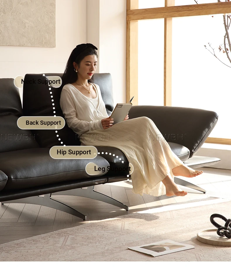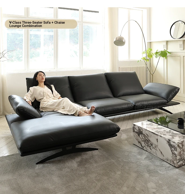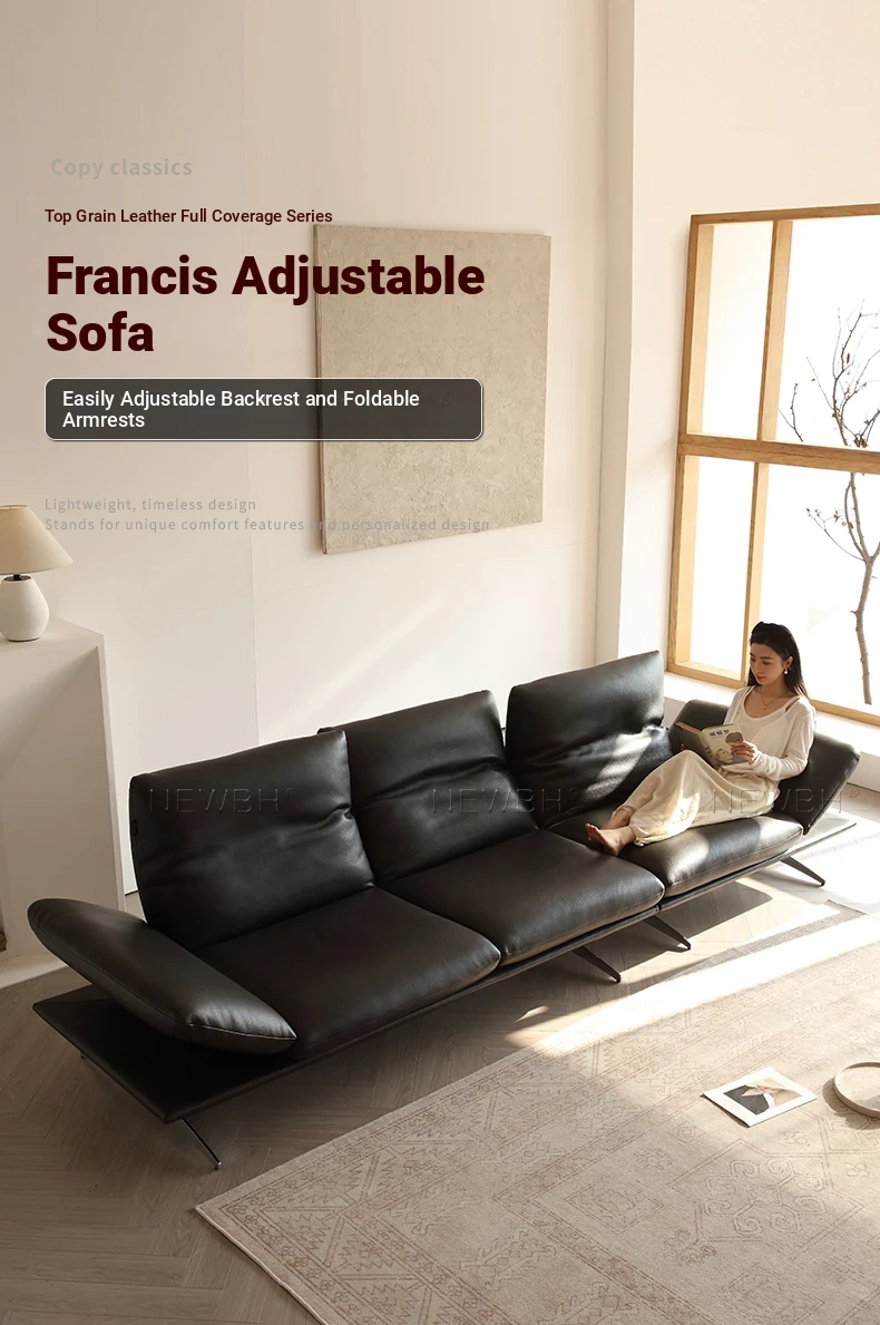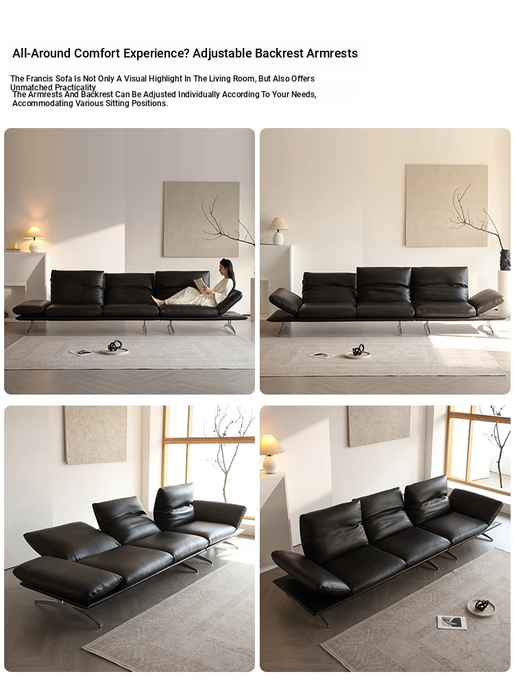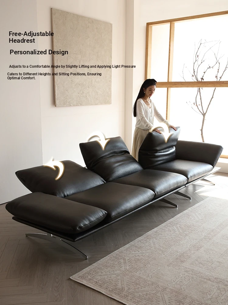 Premium Full-Grain Leather Sofa with Adjustable High Backrest - Luxury German Koinor Thickened All-Leather Couch for Ultimate Comfort and Style