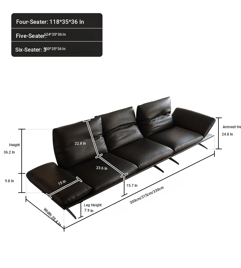 The Senior Four is 118.11 ins [stainless steel and ash wood inner frame]].