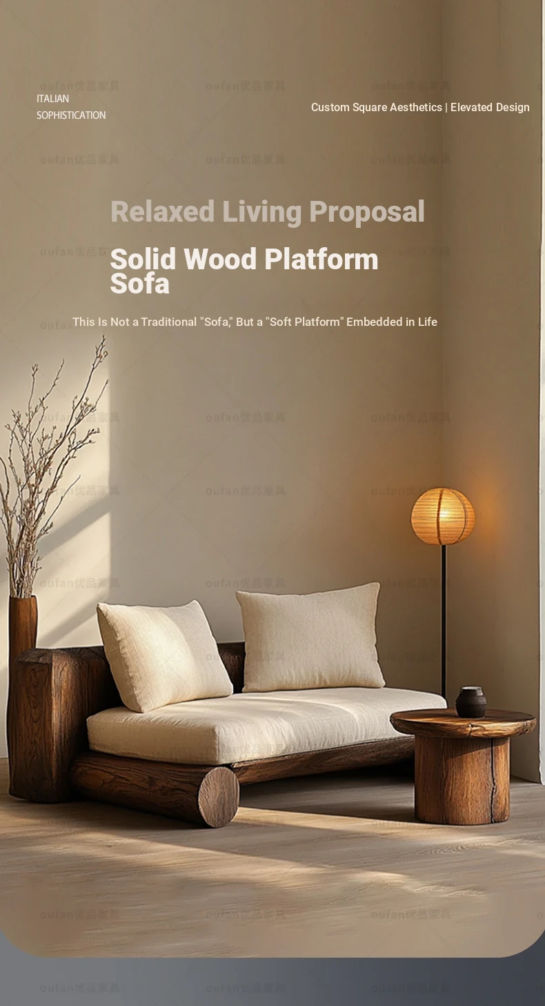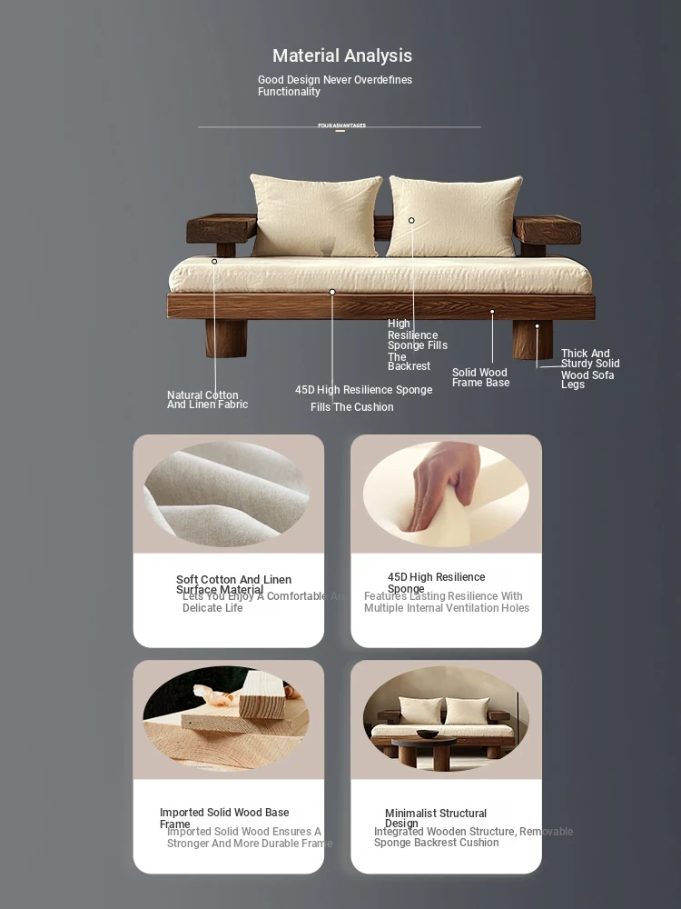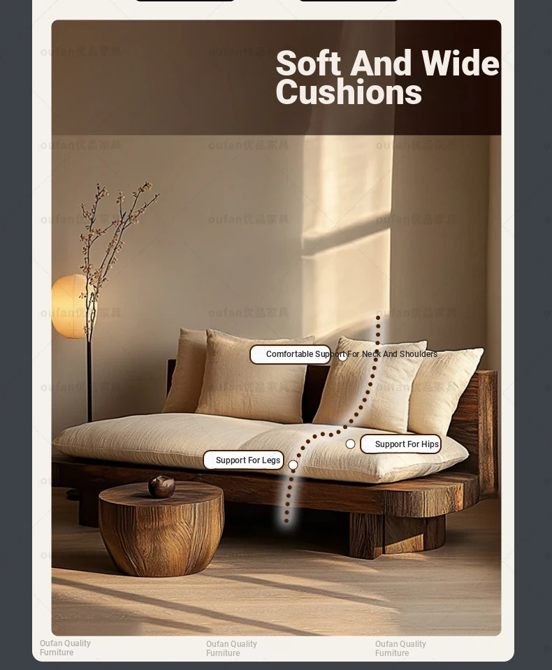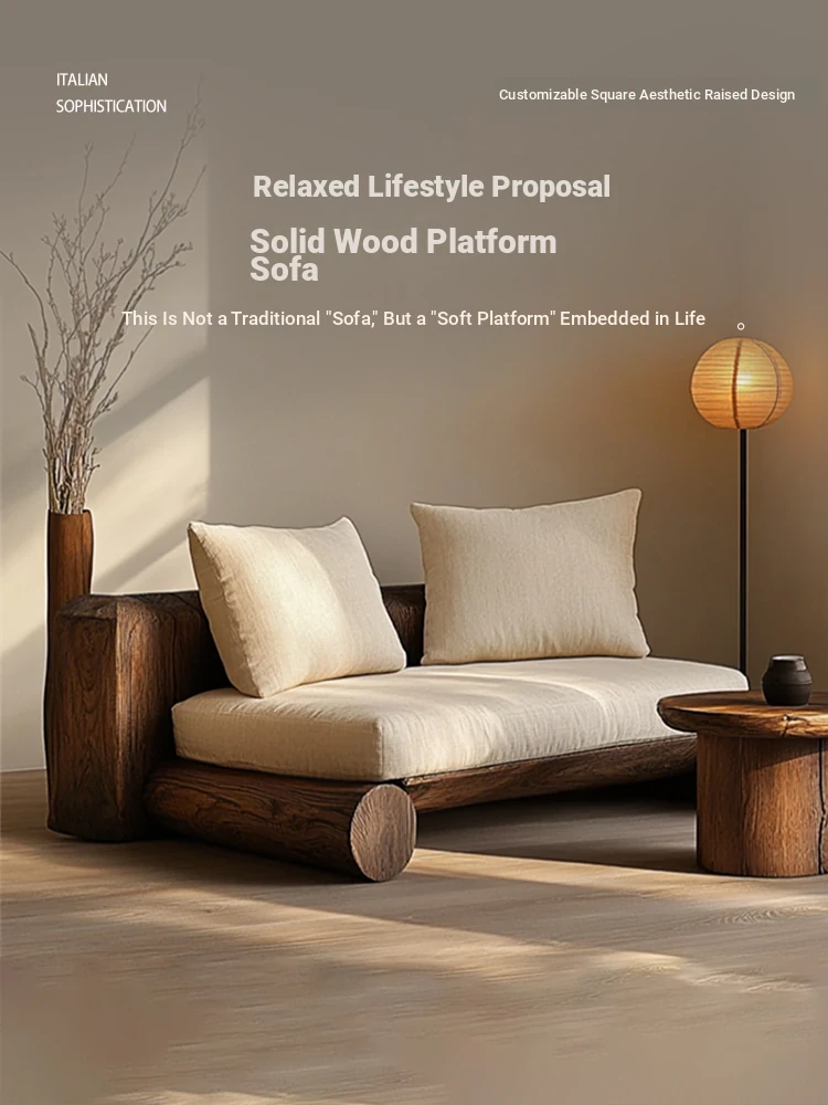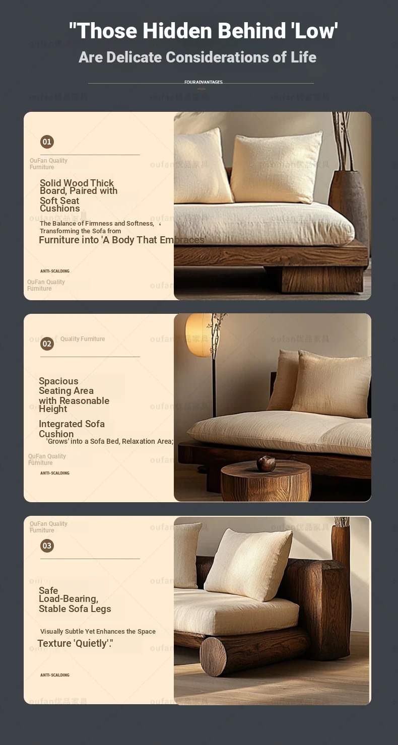 Rustic Wabi-Sabi Solid Wood Sofa for Hotels and Guesthouses - Perfect for Cozy Lounges, Cafés, and Reception Areas in Various Space Sizes