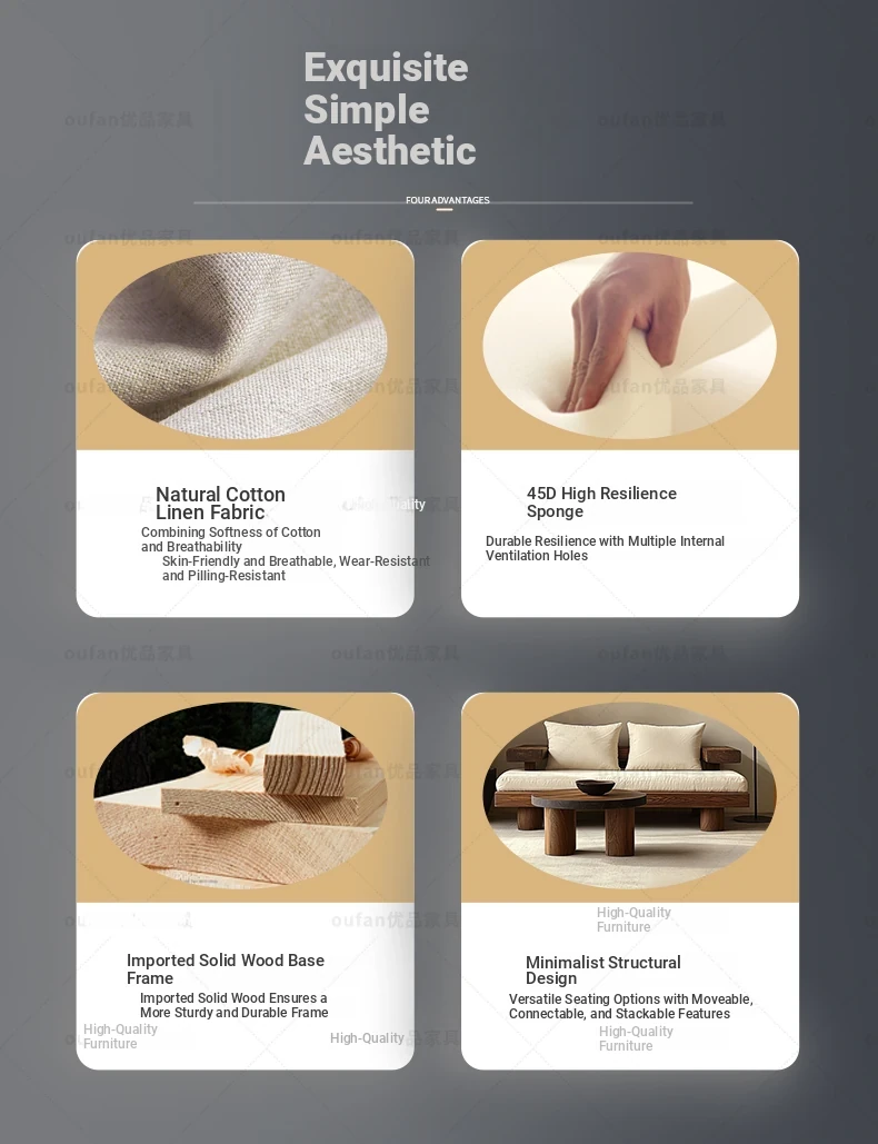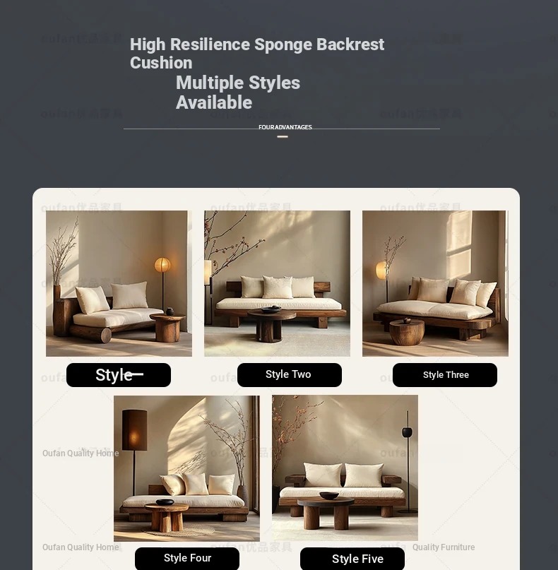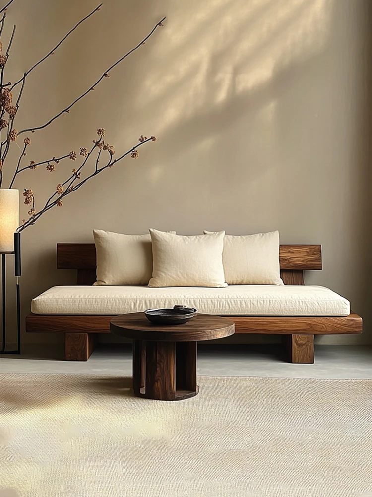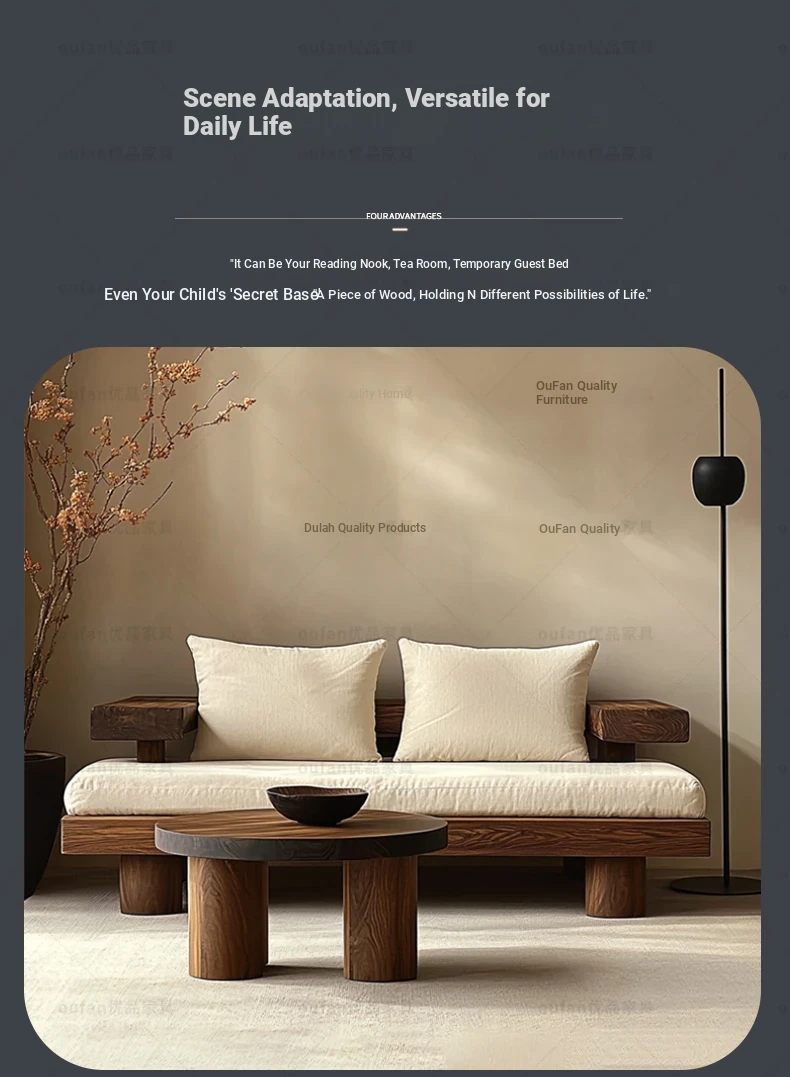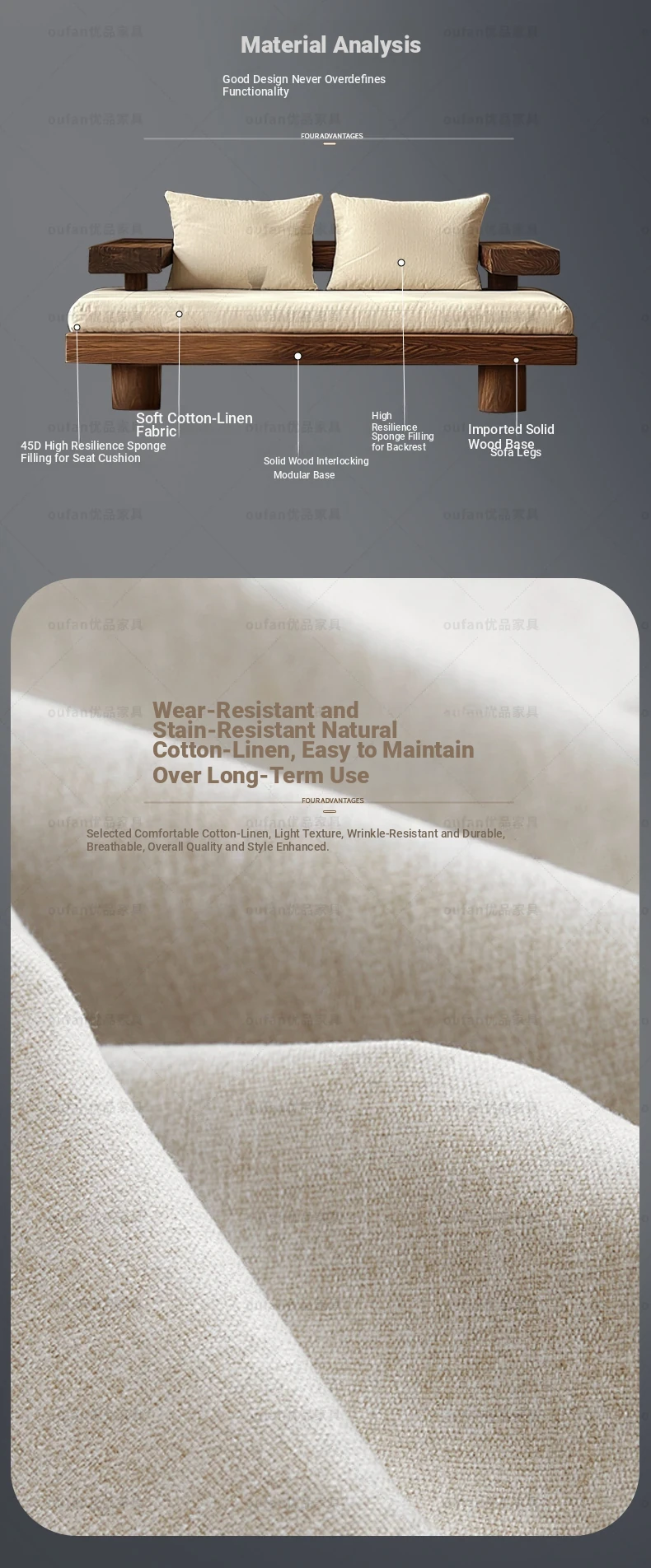 Rustic Wabi-Sabi Solid Wood Sofa for Hotels and Guesthouses - Perfect for Cozy Lounges, Cafés, and Reception Areas in Various Space Sizes