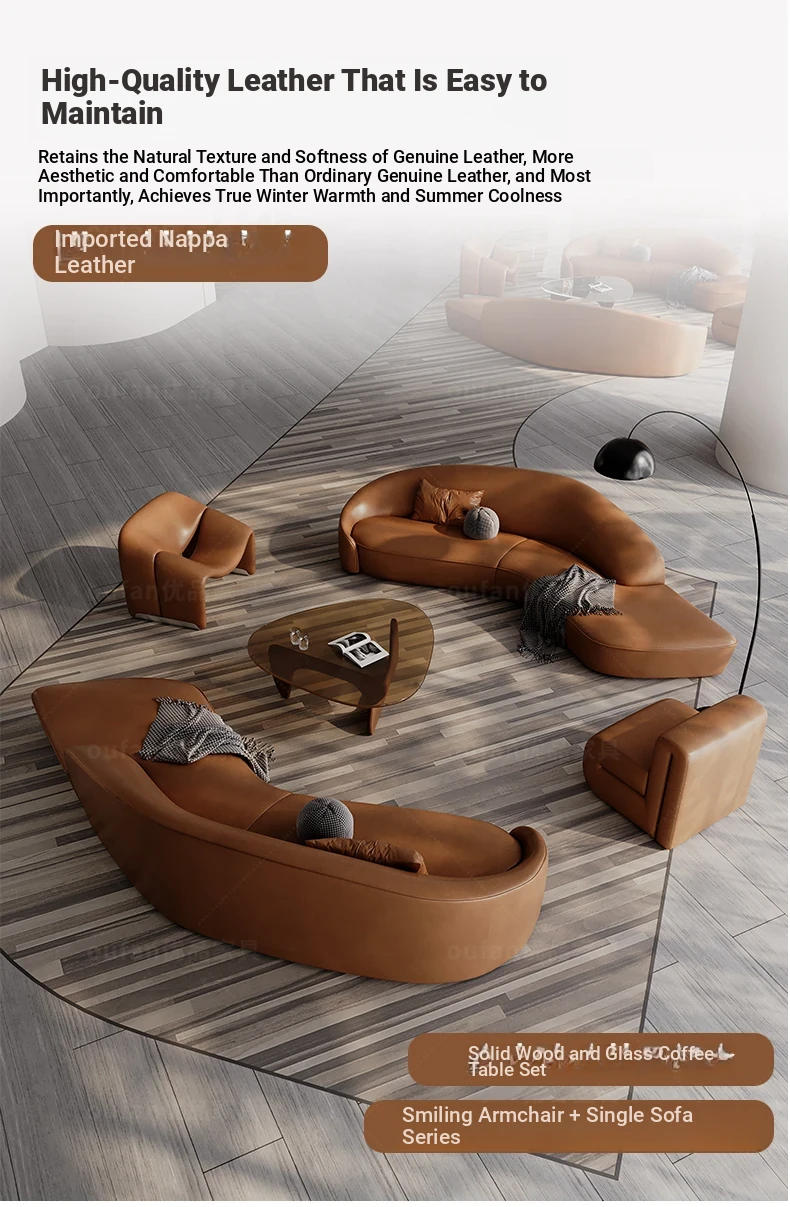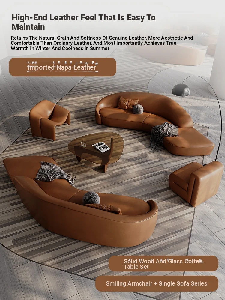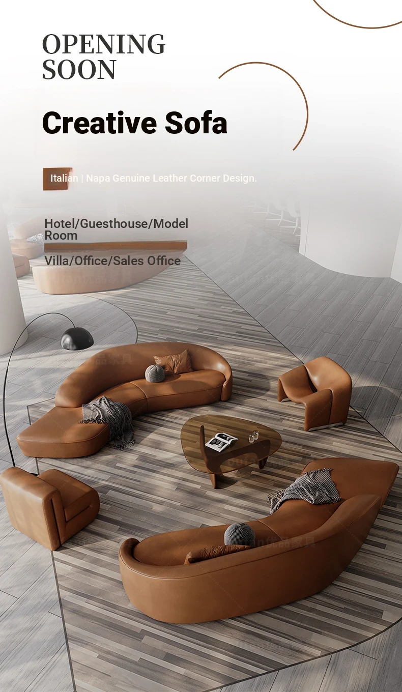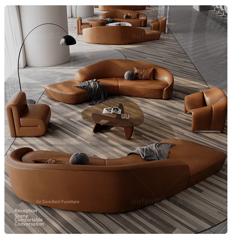 Stylish Curved Genuine Leather Sofa for High-End Hotels, Sales Offices, Lounges, Beauty Salons, and Reception Areas – Perfect for Elegant Conversations and Relaxation