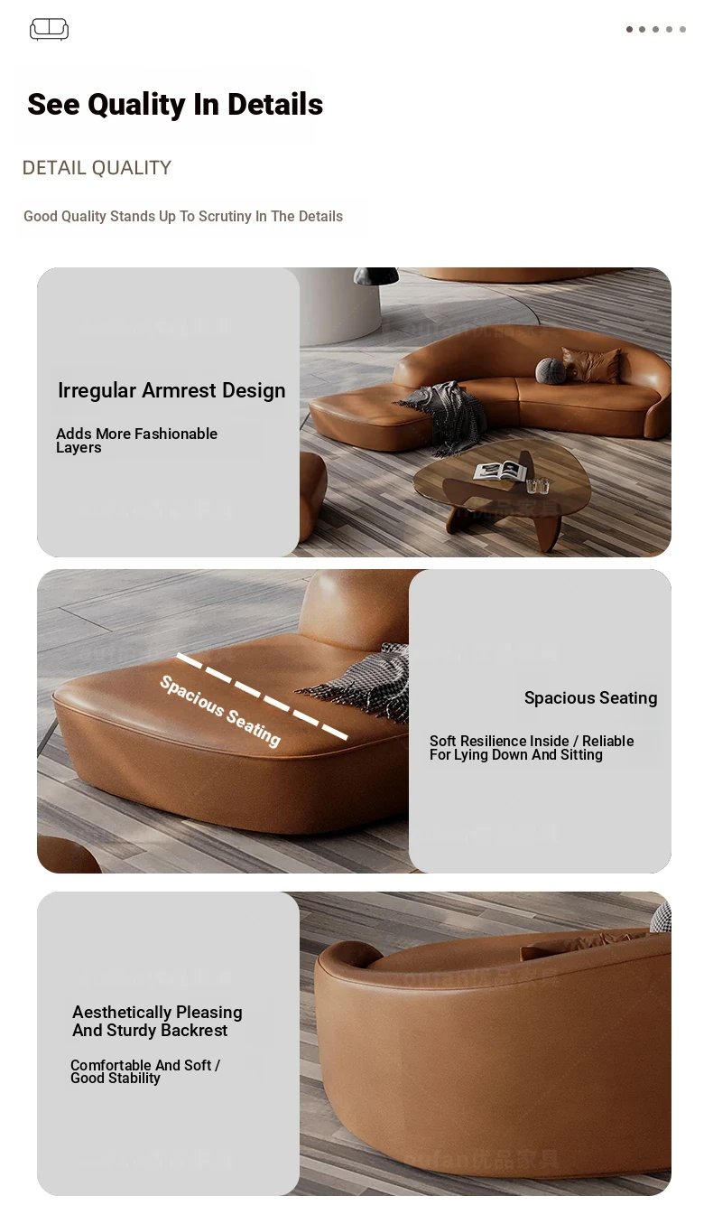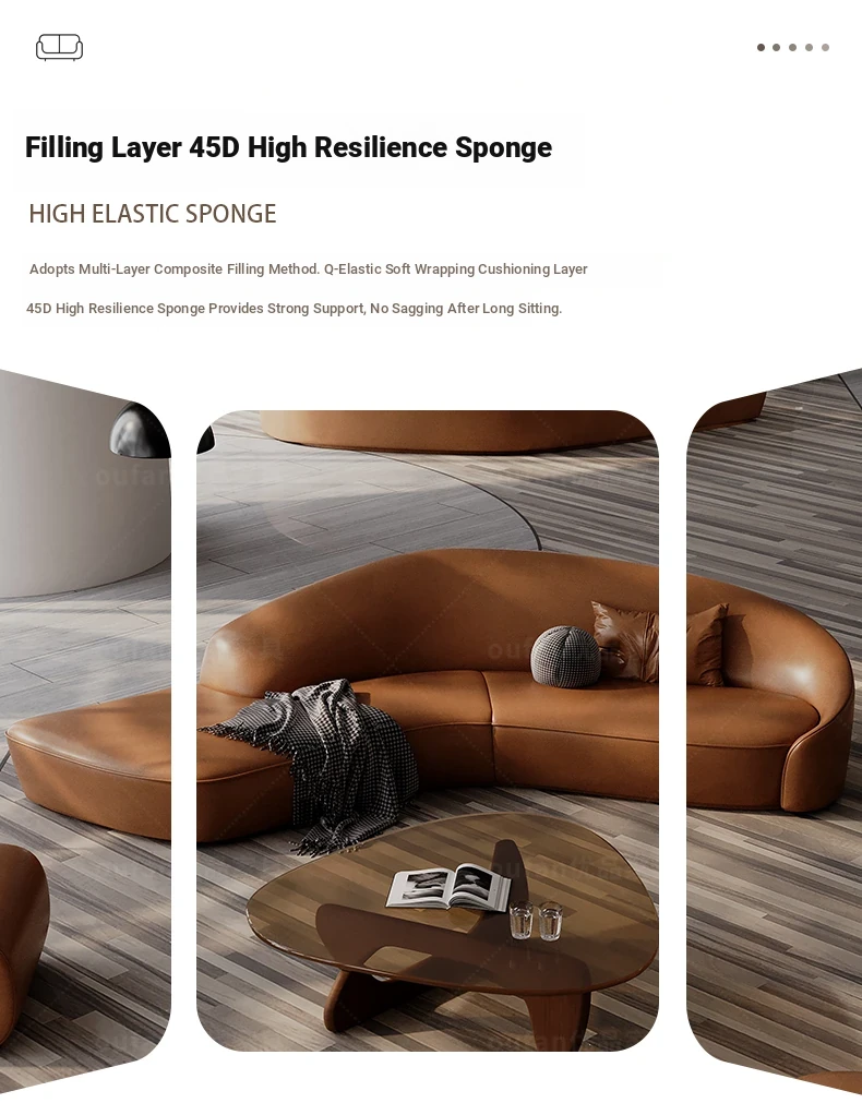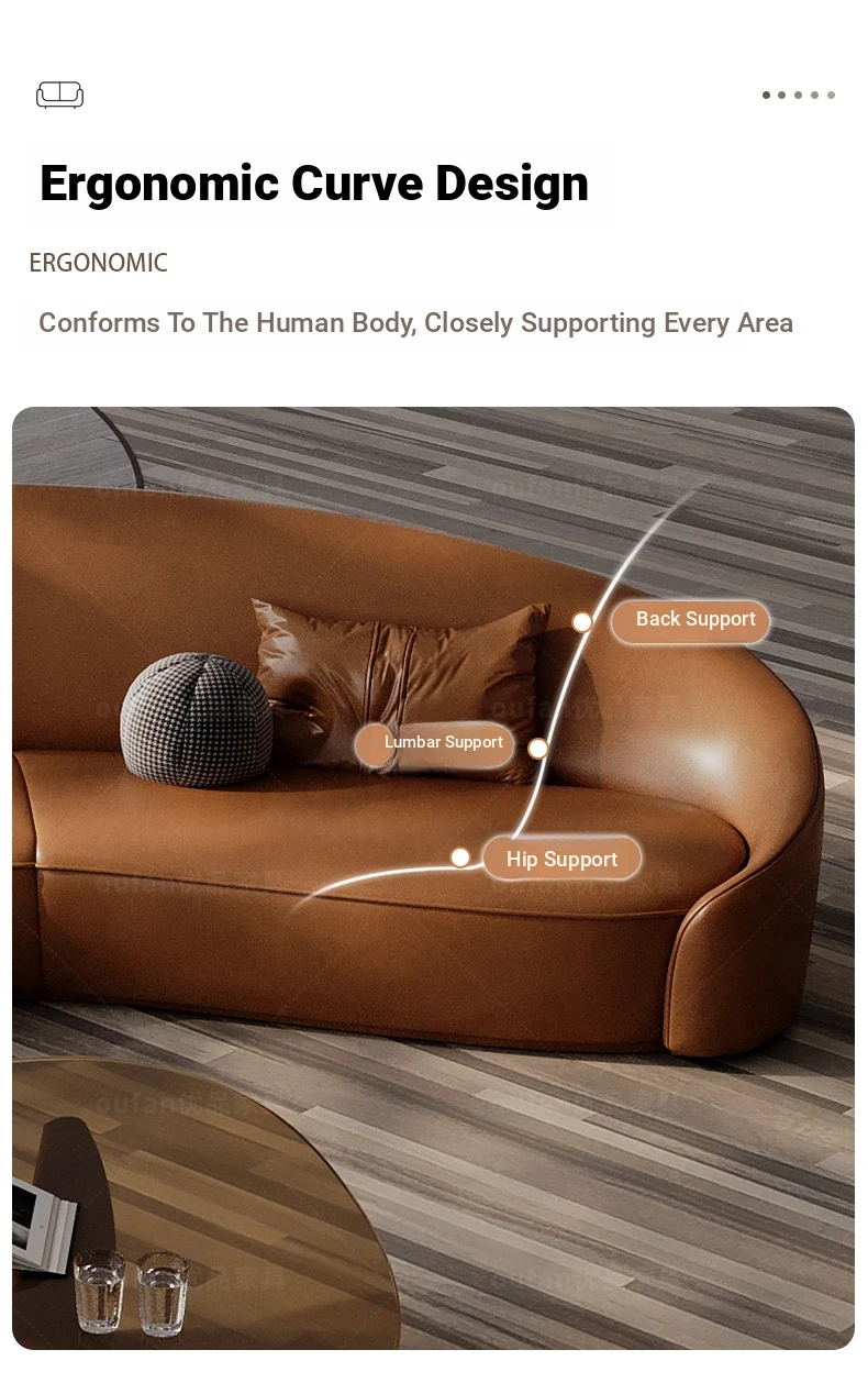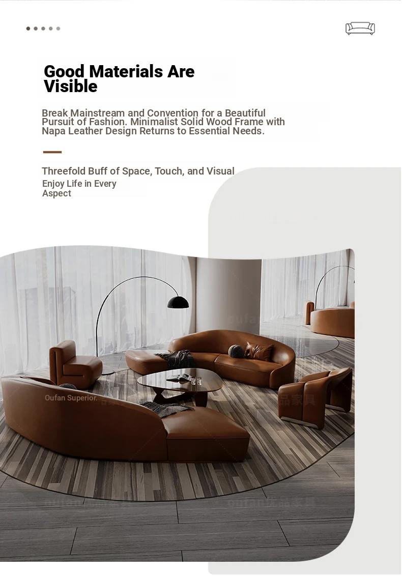Stylish Curved Genuine Leather Sofa for High-End Hotels, Sales Offices, Lounges, Beauty Salons, and Reception Areas – Perfect for Elegant Conversations and Relaxation