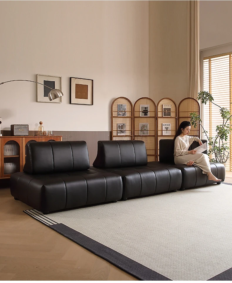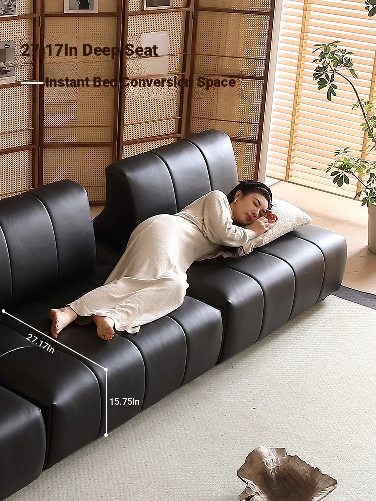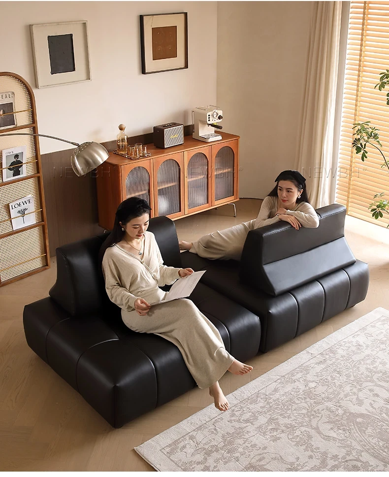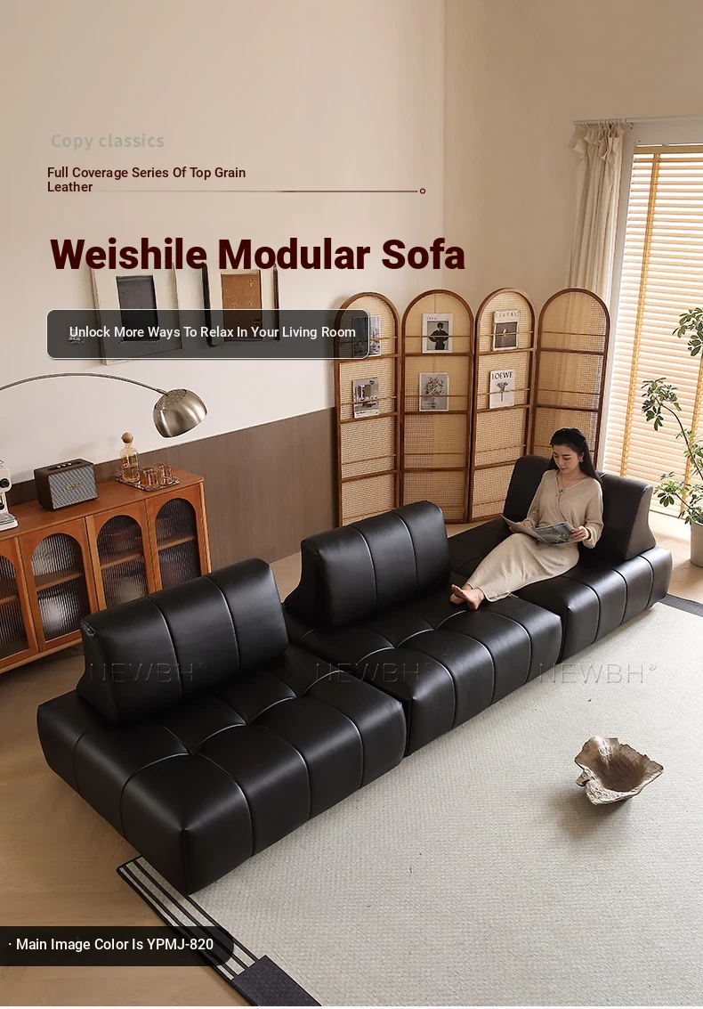 Weishile Vintage Modular Sofa - Premium Top-Grain Leather, Versatile Tofu Block Design, Perfect for Relaxation and Custom Configuration