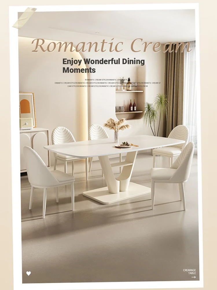 Modern Minimalist White Cream Rock Dining Table and Chair Set for Small Spaces - Ultra Crystalline Stone Perfect for Living Room Dining Experience