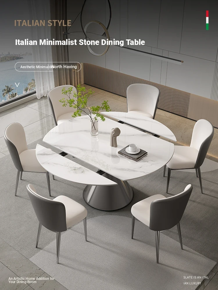Stylish Luxury Rotatable Dining Table and Chair Set - Italian Minimalist Design for Small Spaces, Conveniently Expandable and Foldable for Home Dining