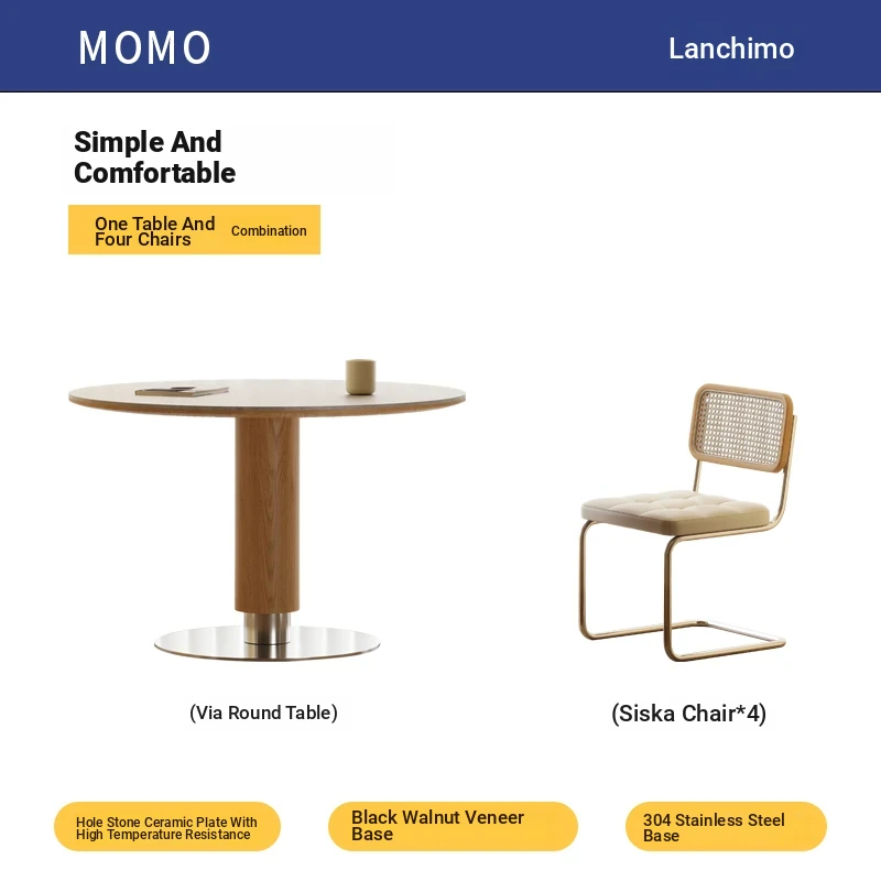 2025 New Designer Round Dining Table with Natural Stone Surface – Perfect for Small Homes and Dining Rooms, Featuring Solid Wood Chairs for a Stylish and Functional Dining Experience.