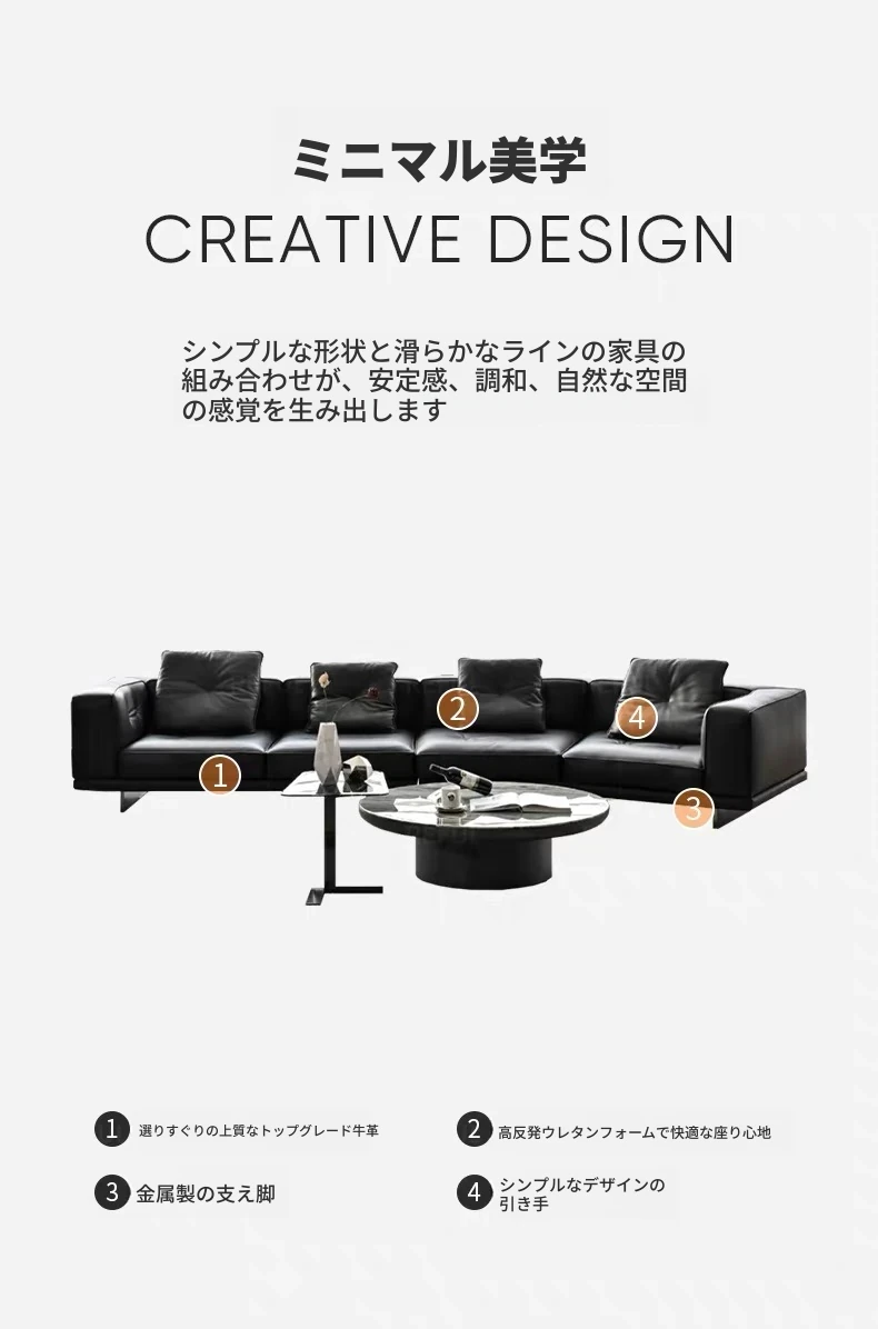 2025年新作!イタリアンミニマリズム ディラン本革ソファ 軽奢華リビングに最適!一級牛皮使用の4人掛けコーナーソファ、洗練されたデザインで上質なひとときを演出。