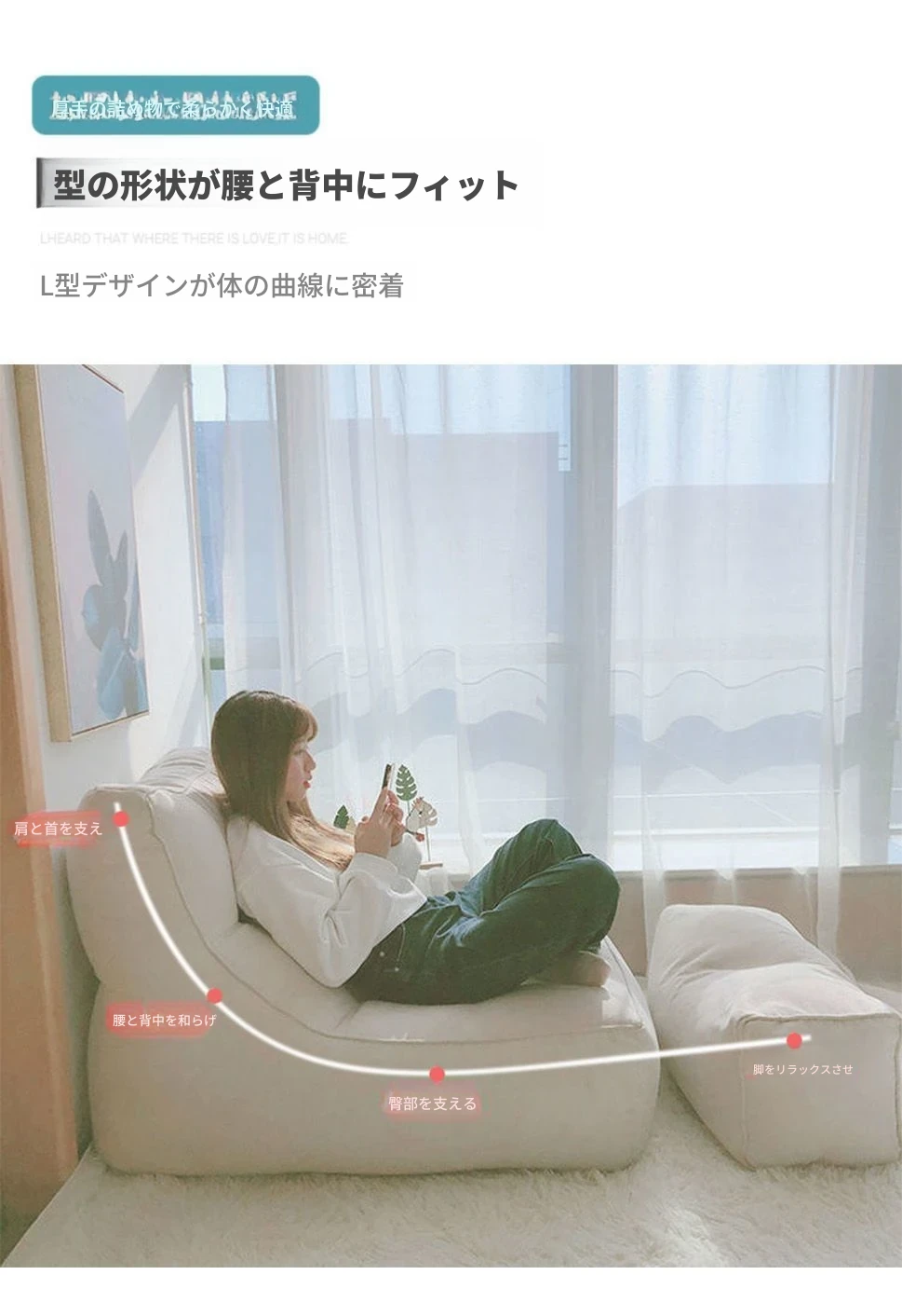 アイボリー+オットマン【テクノロジー布・長時間座ってもへたらない】月型リクライニングタイプ