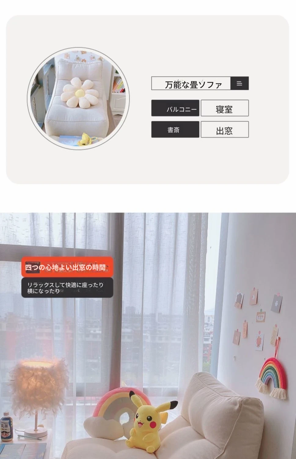 可愛らしい一人掛けソファ、リラックスできる畳スタイル!インフルエンサーも注目のトレンディな小型ソファ、バルコニーや寝室にぴったりの快適アイテム。あなたのくつろぎ空間を演出します!