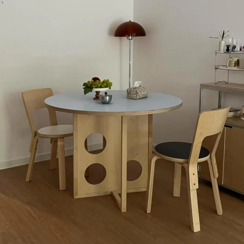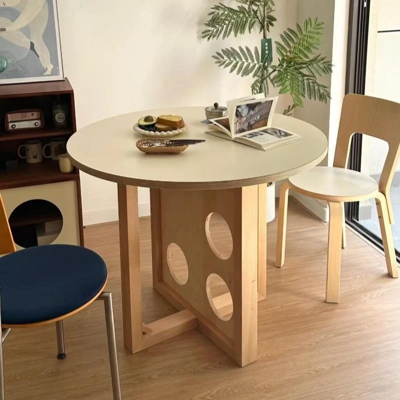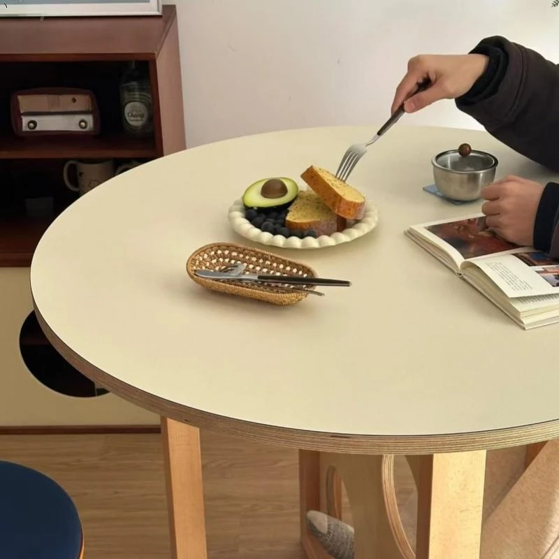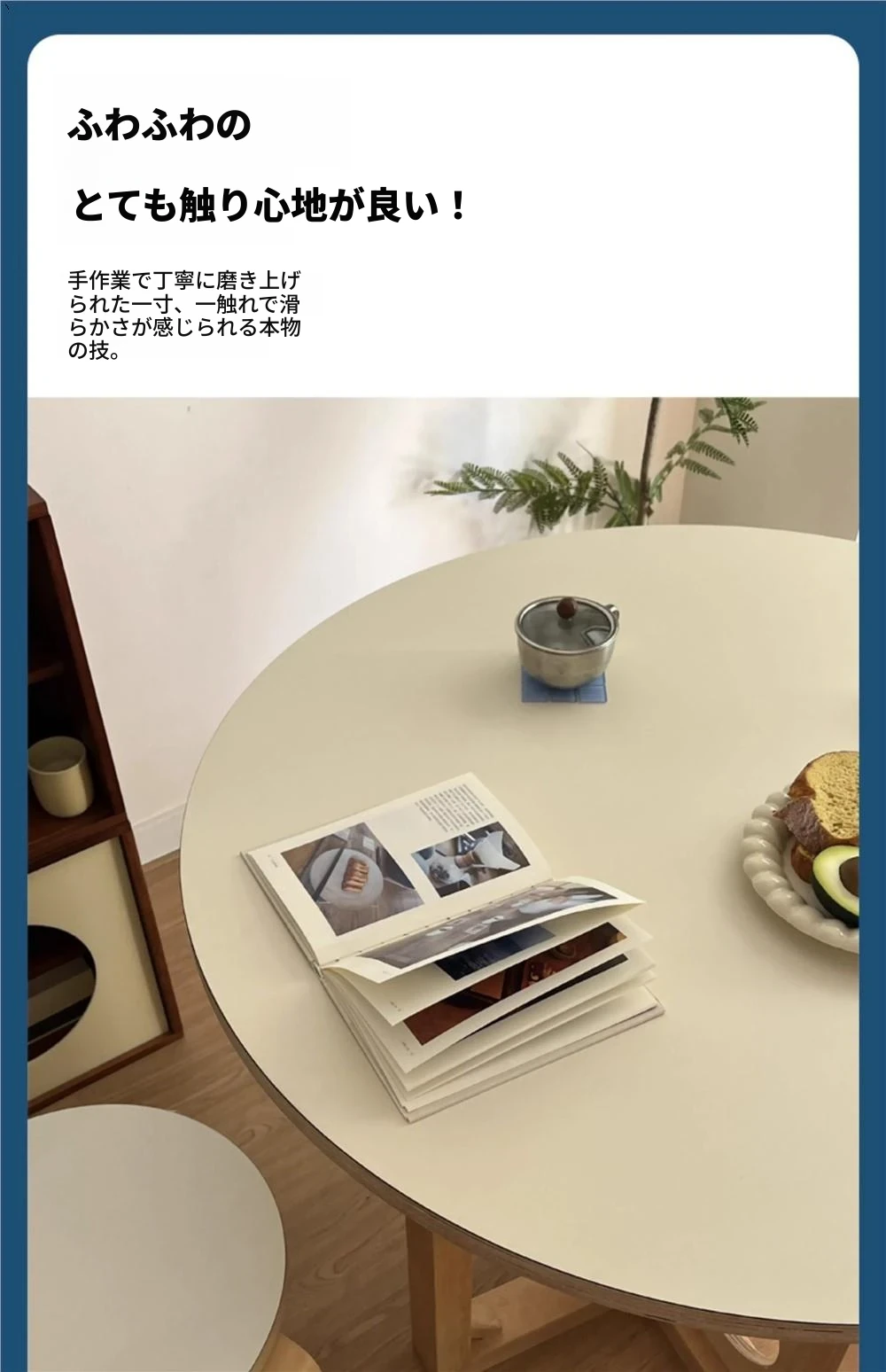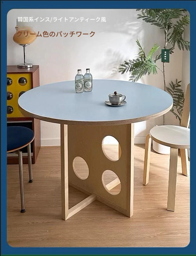 クリーム風味の韓国スタイル丸テーブル|小型住宅に最適なバーチ材とオーシャンボードのダイニングテーブル|本格的なカフェインテリアにぴったりなヴィンテージINSスタイルのテーブル