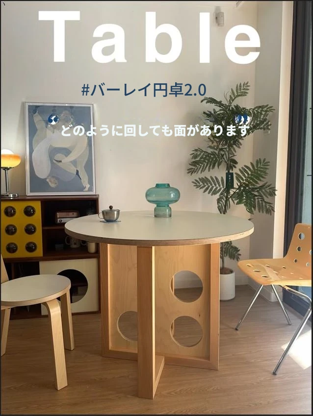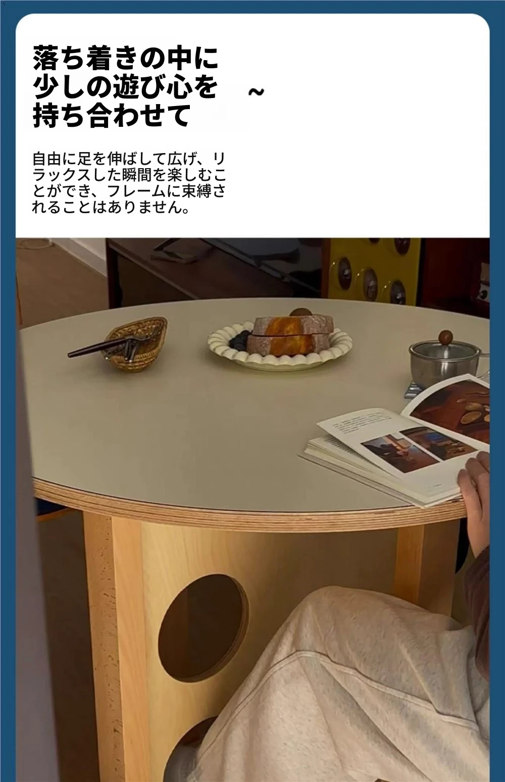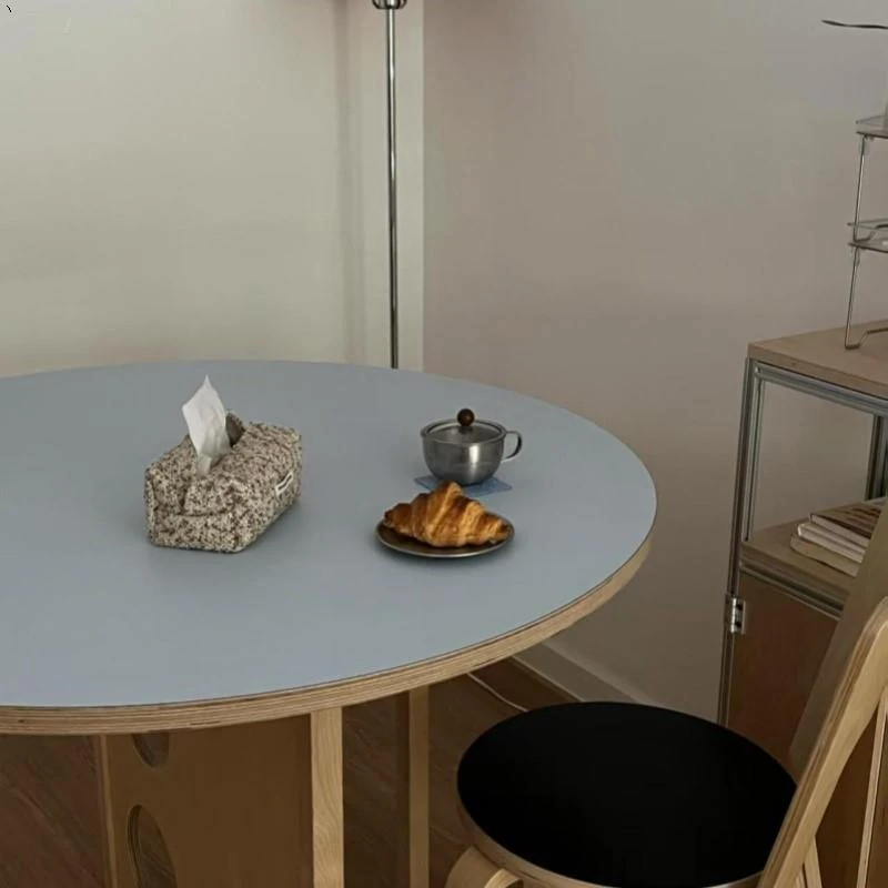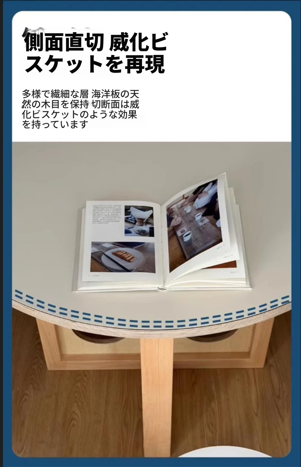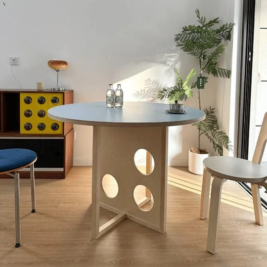 クリーム風味の韓国スタイル丸テーブル|小型住宅に最適なバーチ材とオーシャンボードのダイニングテーブル|本格的なカフェインテリアにぴったりなヴィンテージINSスタイルのテーブル