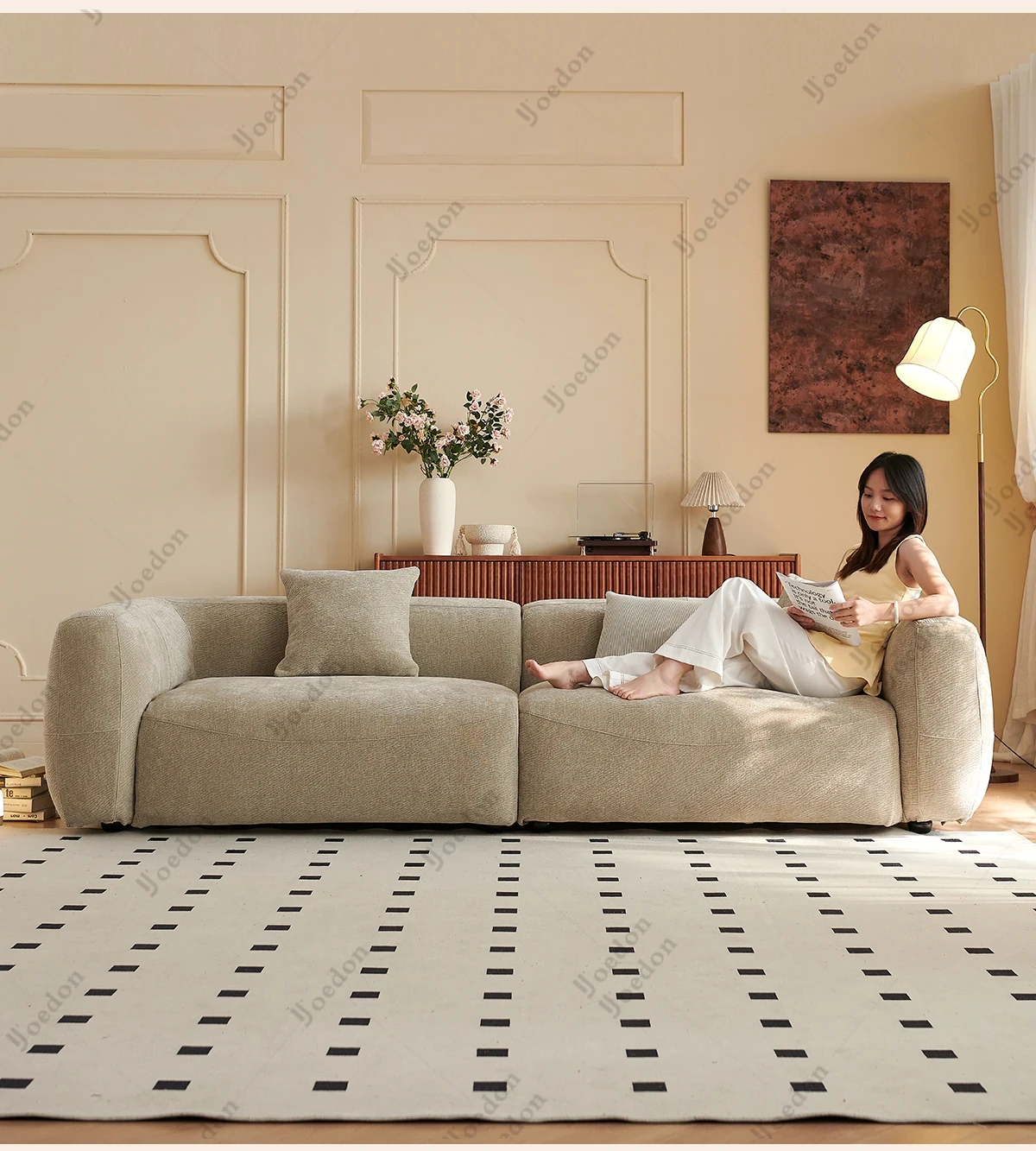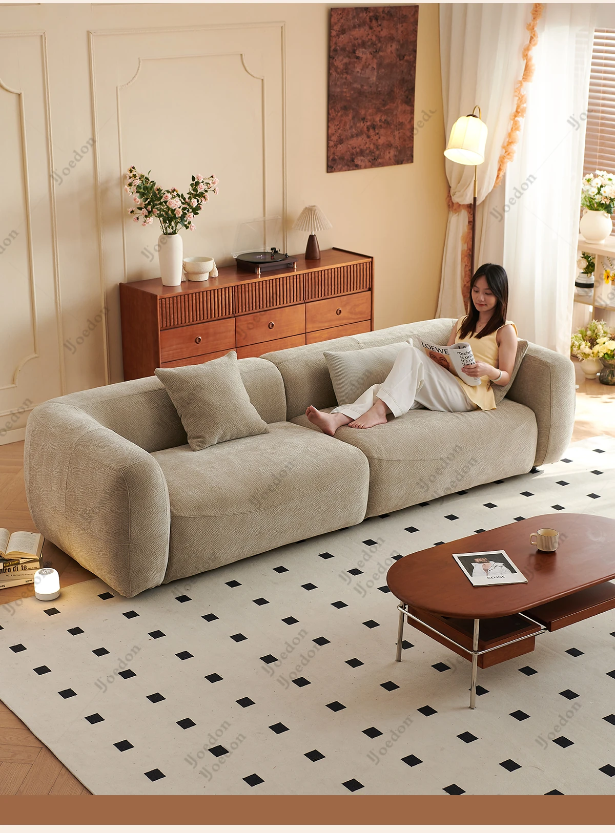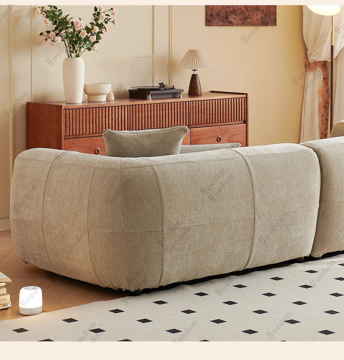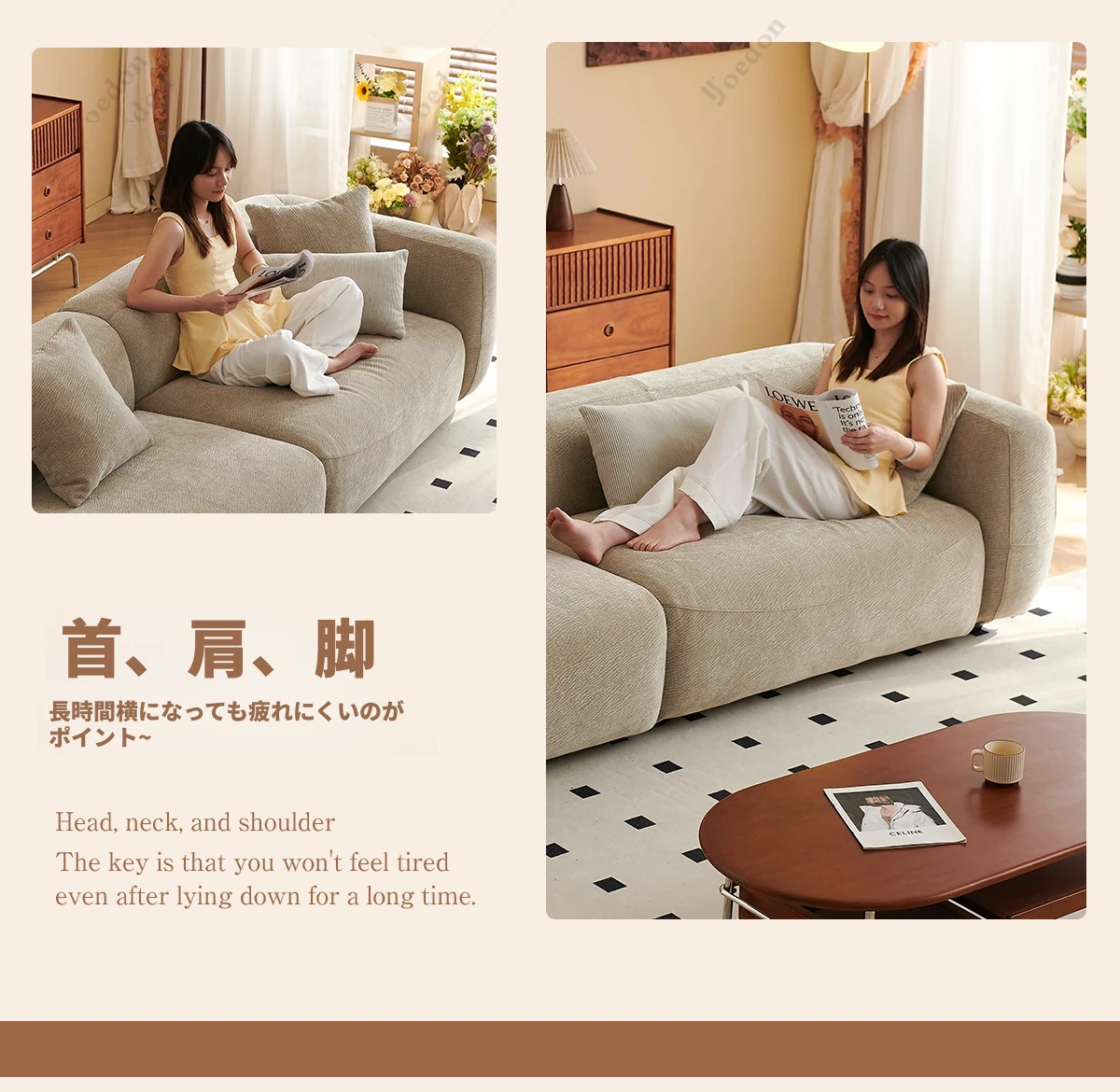 クリーミーな風合いの豆腐ブロックファブリックソファ - ヴィンテージブラウンのシェニール製、別荘や広々としたリビングにぴったり!洗える大白ソファで、快適さとスタイルを両立。