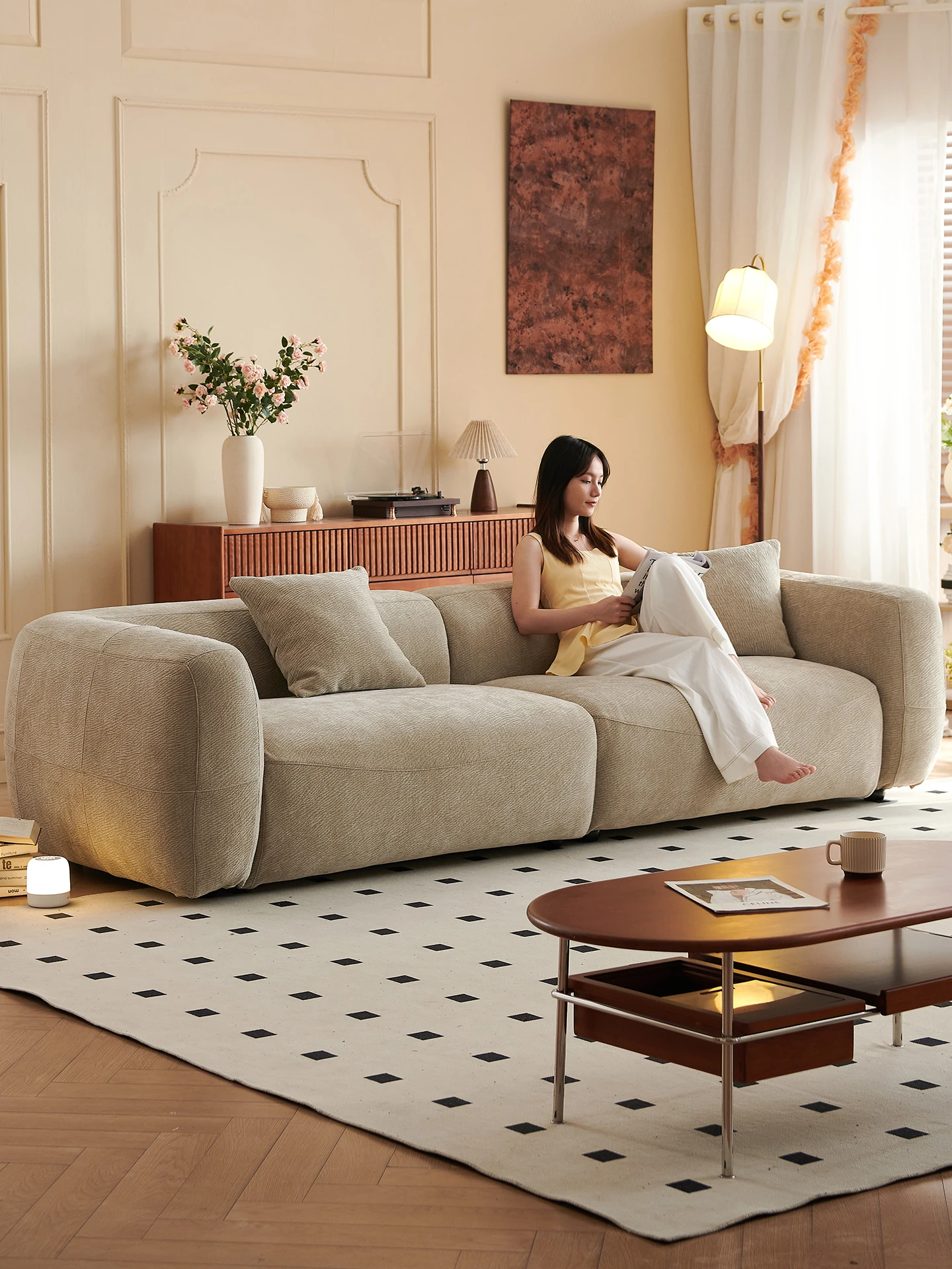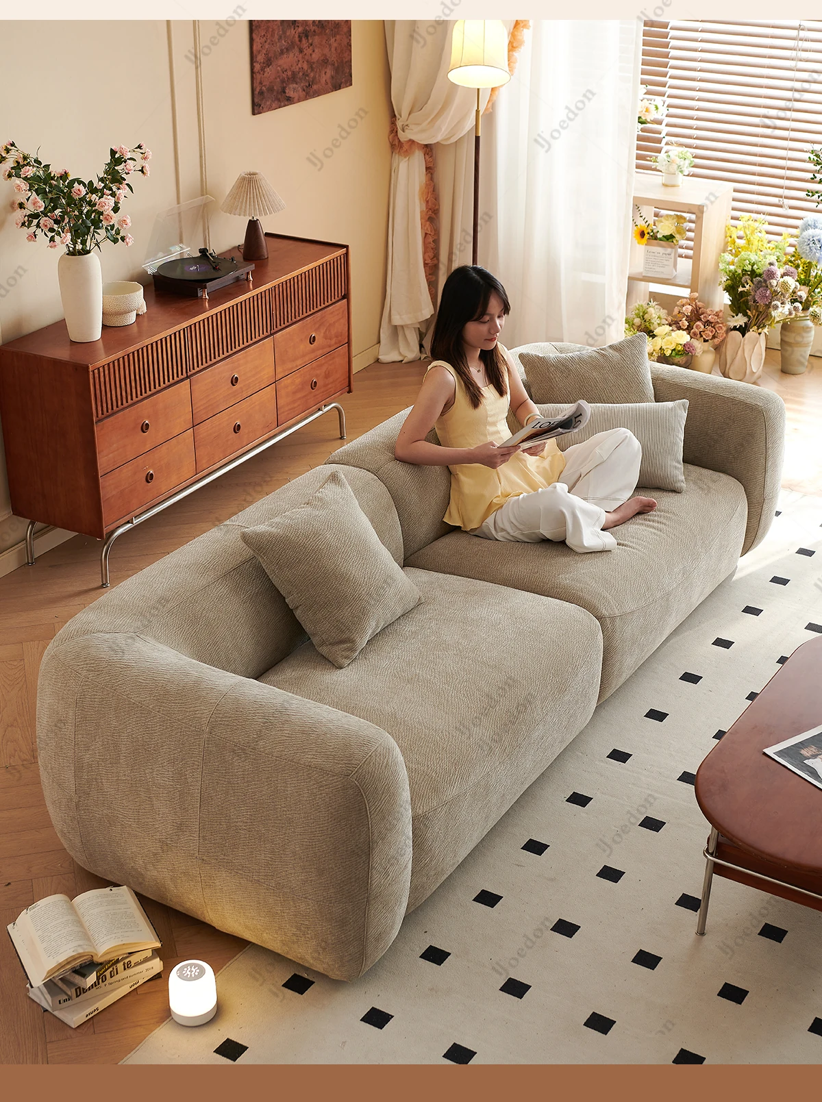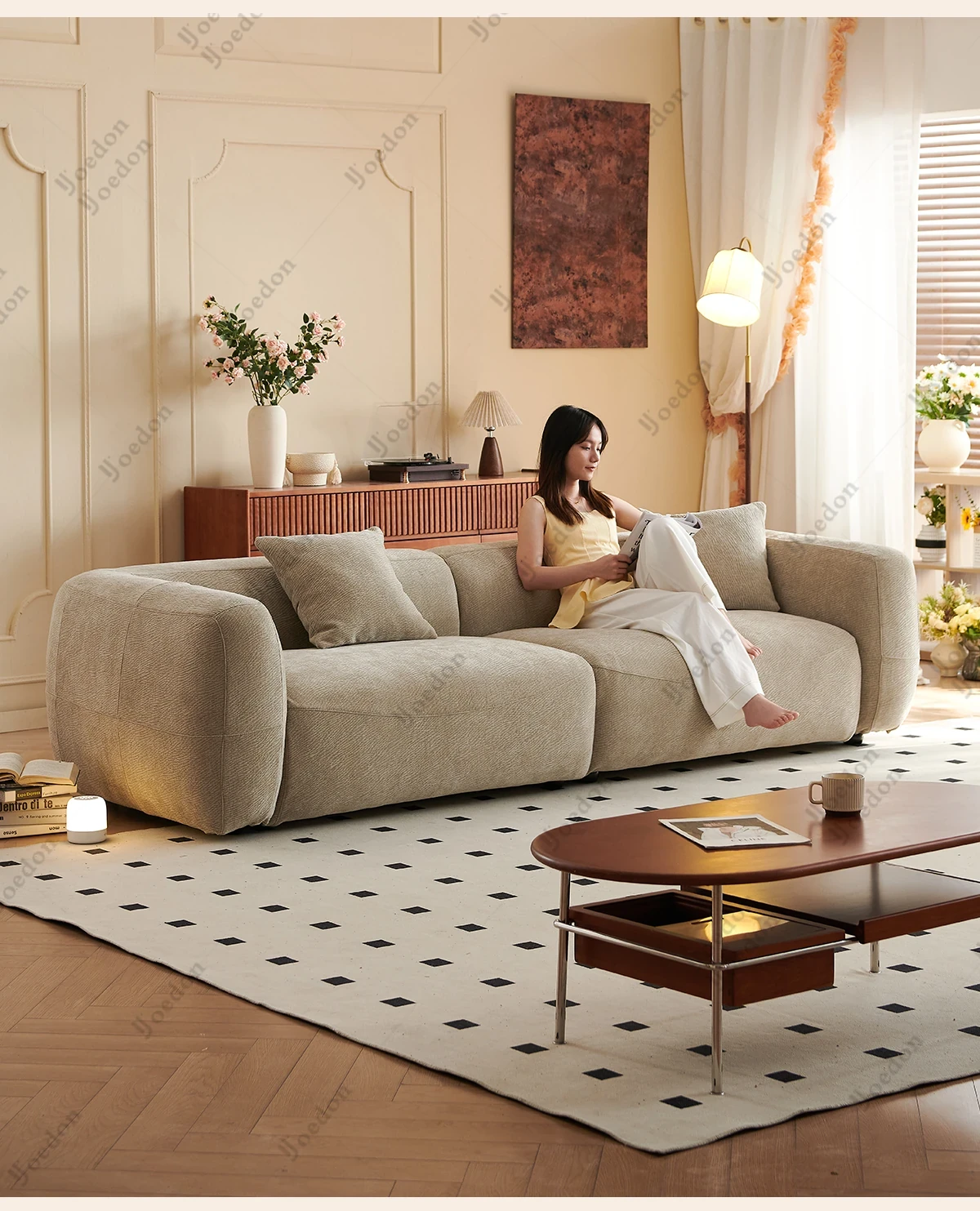 クリーミーな風合いの豆腐ブロックファブリックソファ - ヴィンテージブラウンのシェニール製、別荘や広々としたリビングにぴったり!洗える大白ソファで、快適さとスタイルを両立。