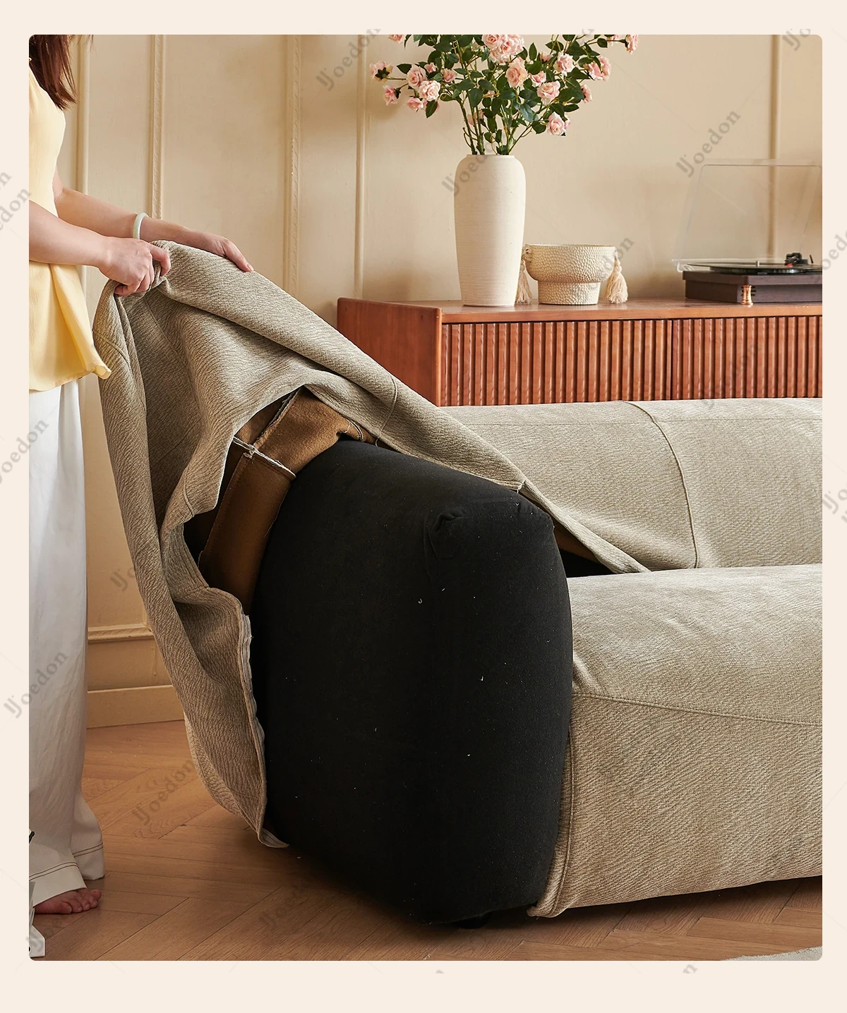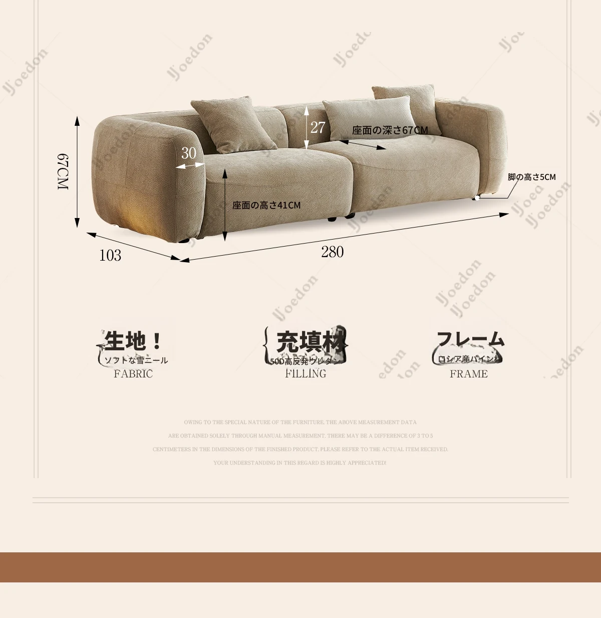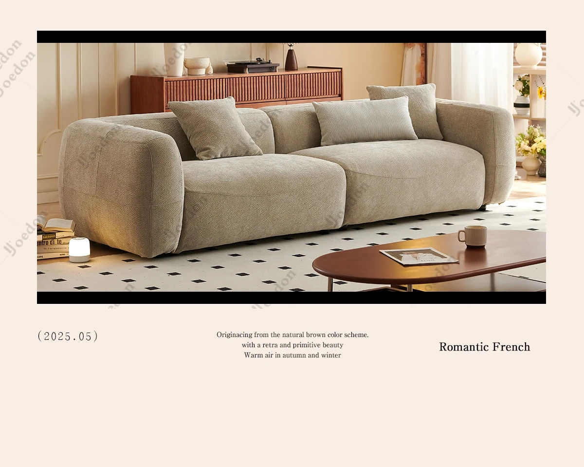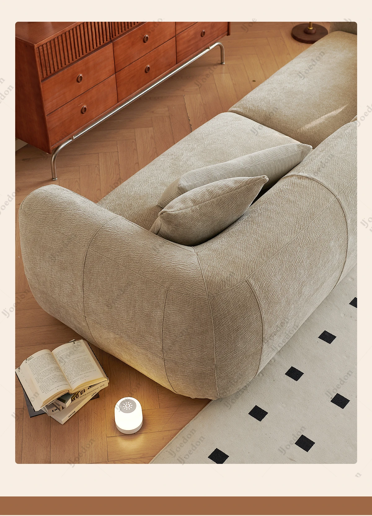 クリーミーな風合いの豆腐ブロックファブリックソファ - ヴィンテージブラウンのシェニール製、別荘や広々としたリビングにぴったり!洗える大白ソファで、快適さとスタイルを両立。