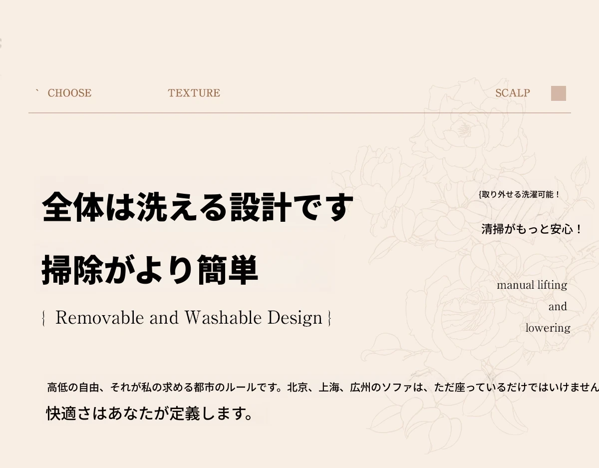 取り外し可能なデザイン●ホワイトダウンソフトクッション【直排/分割大三人掛け2.6M】