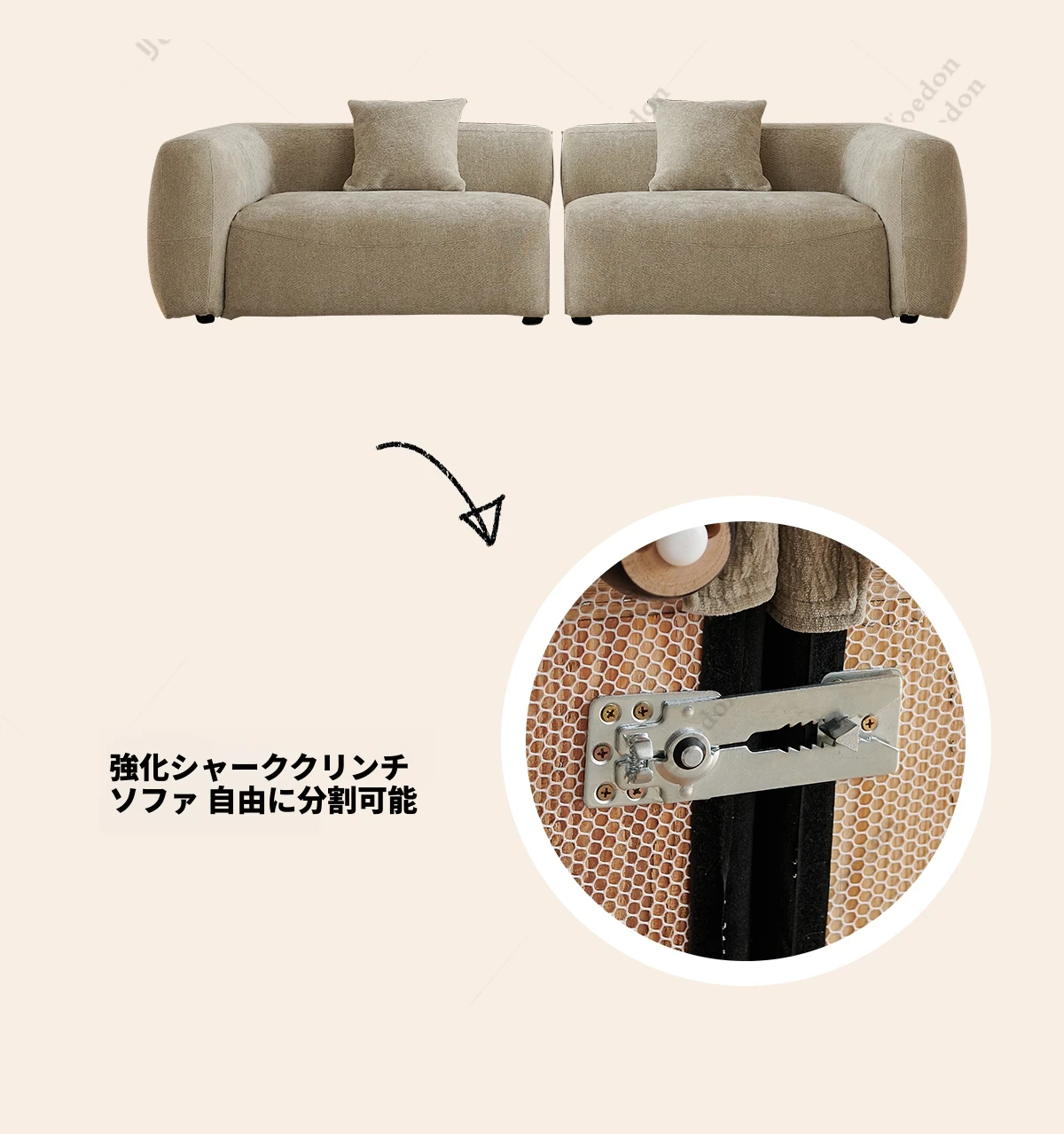 取り外し可能なデザイン●ホワイトダウンソフトクッション【直排/分割大二人掛け2.2M】