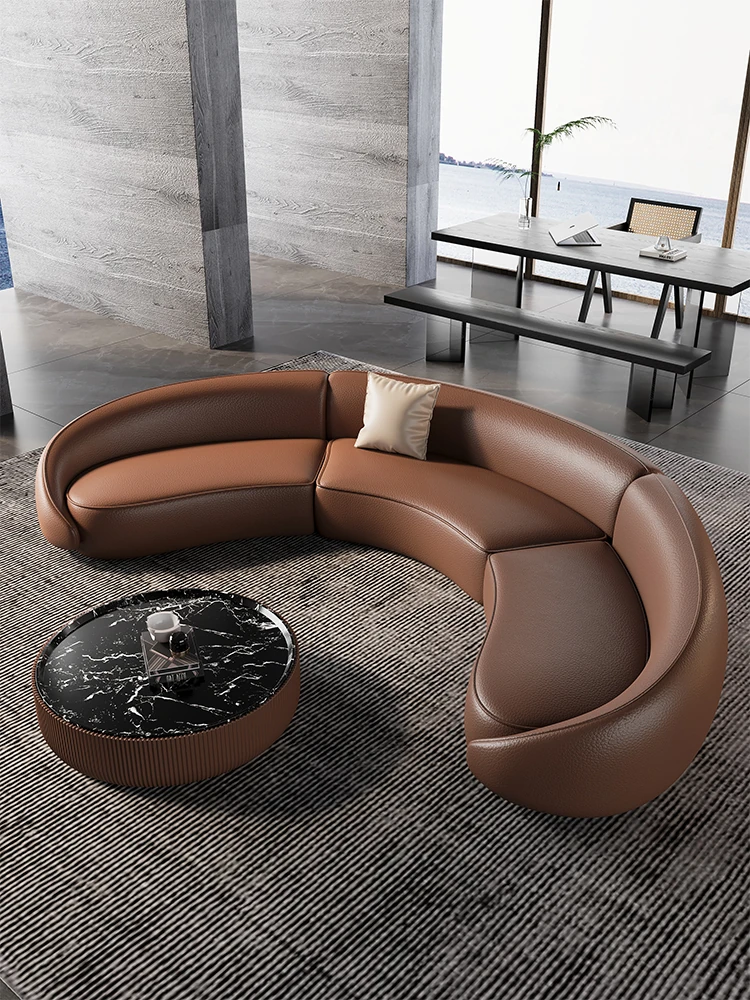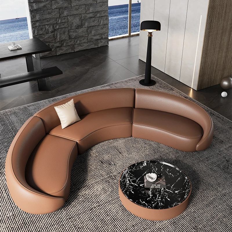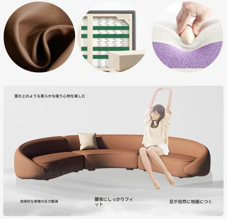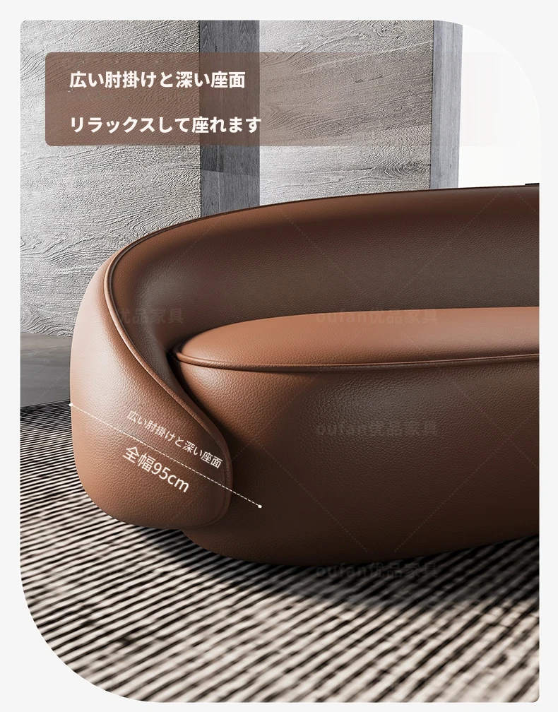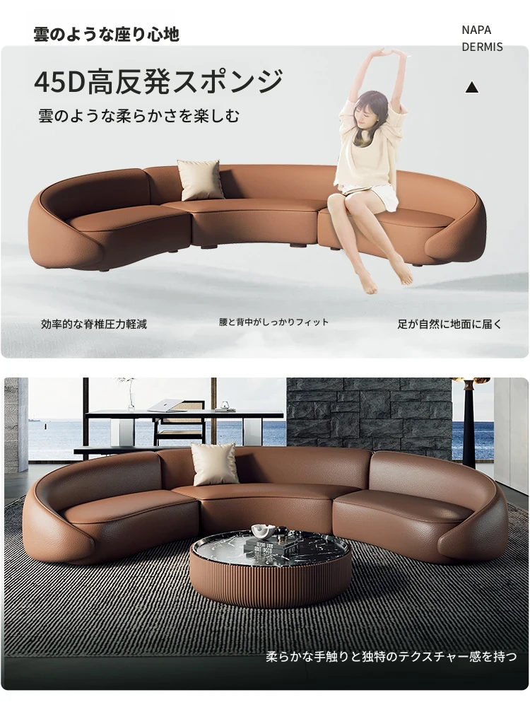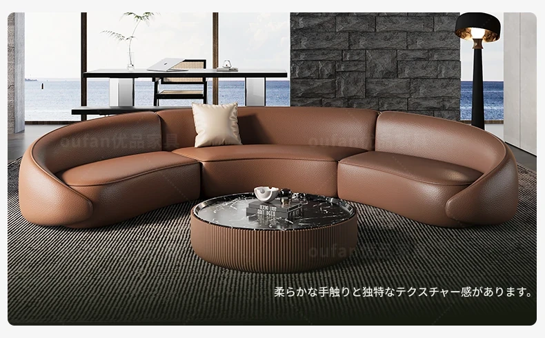 デザイナーによる半円形ユニークソファ - 美容院・販売所・ホテルロビーの待機・受付エリアに最適!洗練されたデザインで、居心地の良い空間を演出します。お客様を魅了するスタイリッシュなインテリアの必需品!