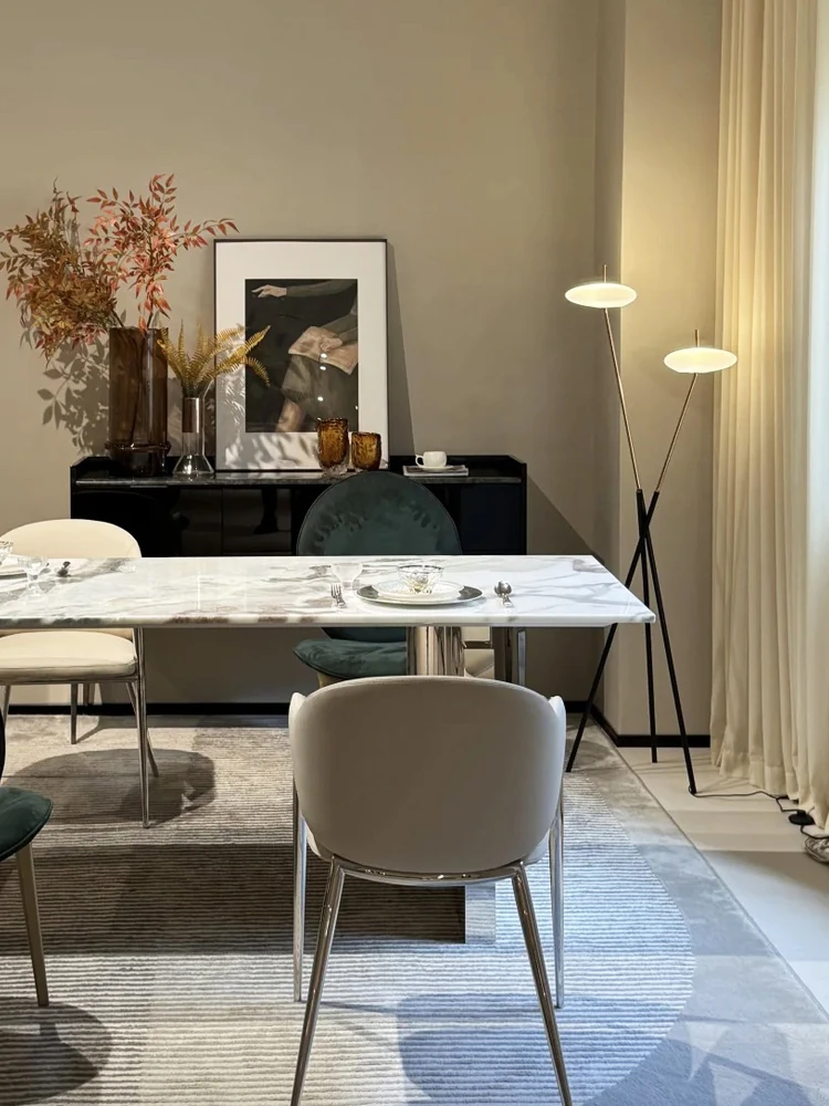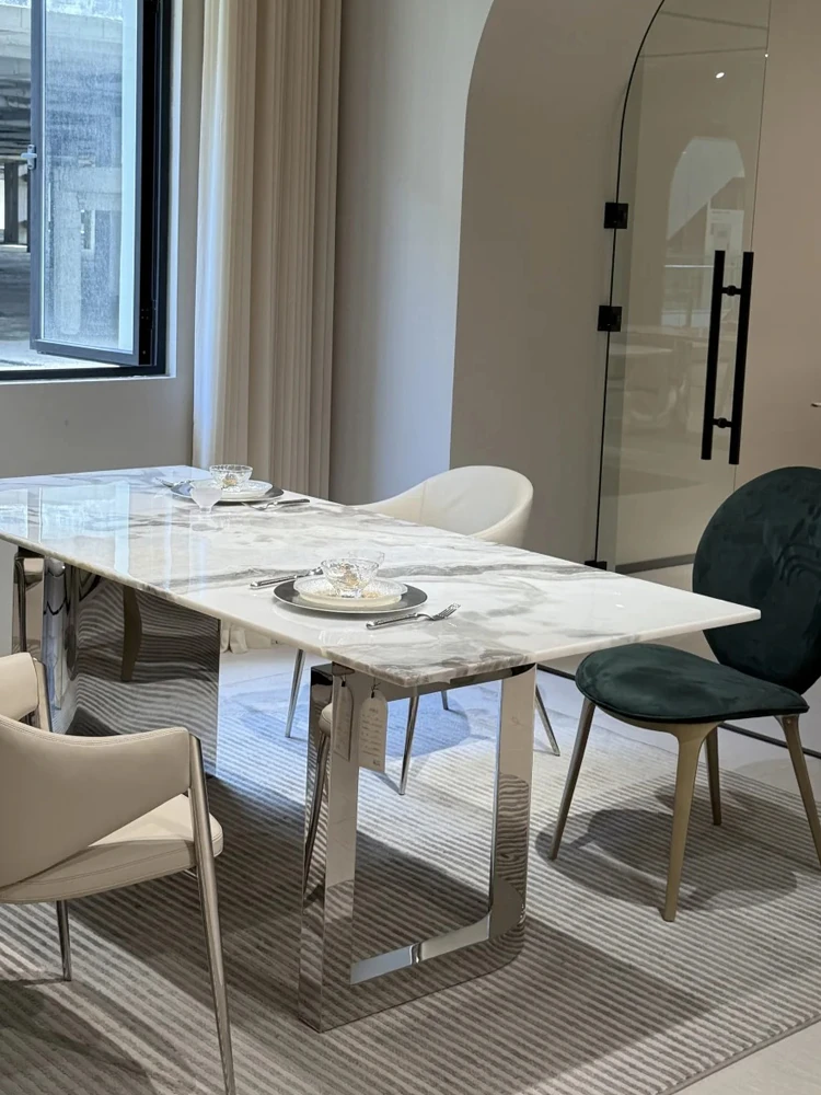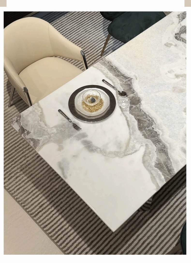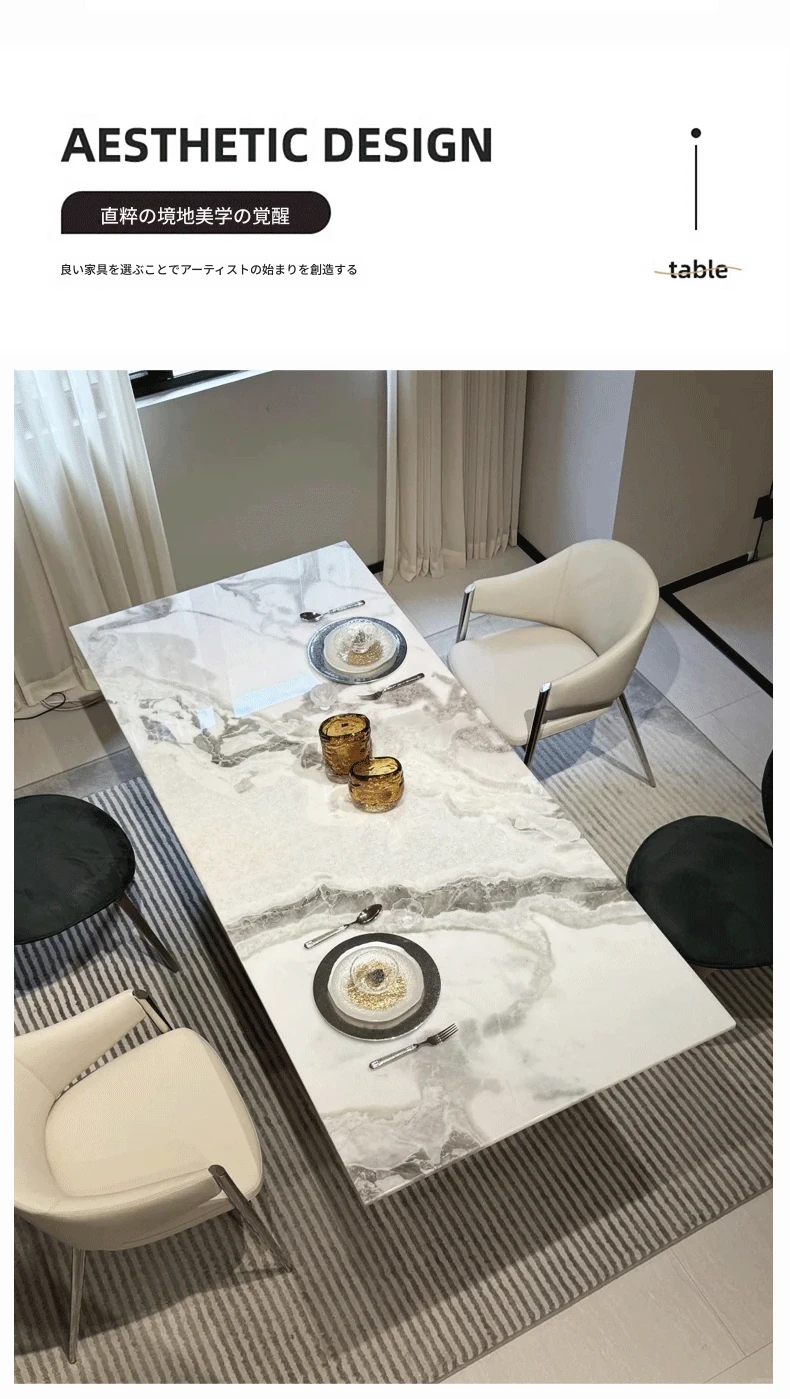 220*100CMダイニングテーブル+8椅子【輸入ラグジュアリー石ファンディホワイト】【偽者は10倍の賠償】