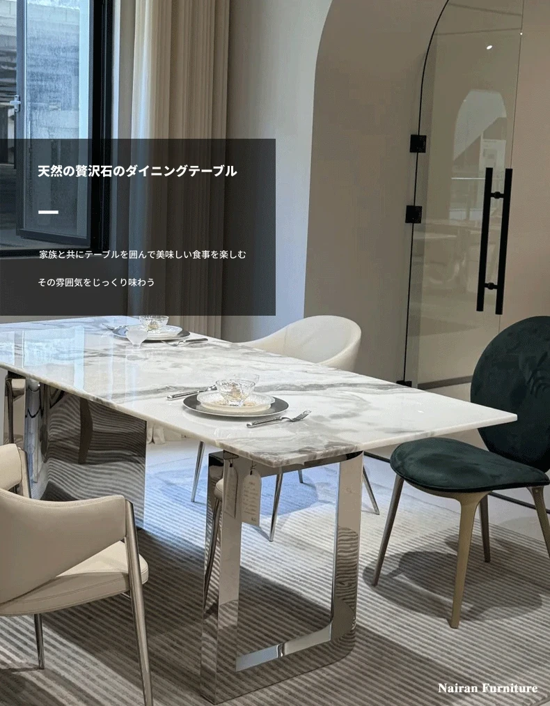 240*100CMダイニングテーブル+8椅子【輸入ラグジュアリー石ファンディホワイト】【偽者は10倍の賠償】