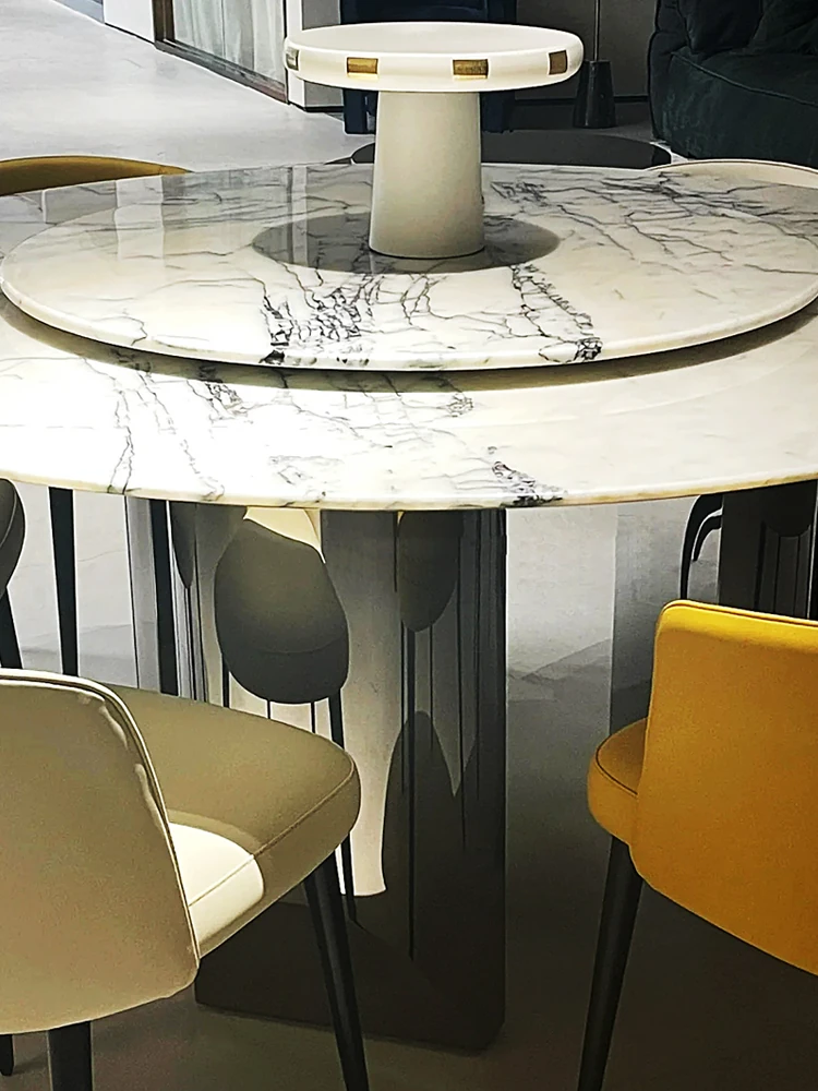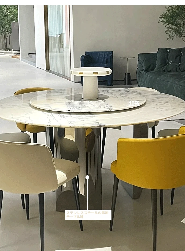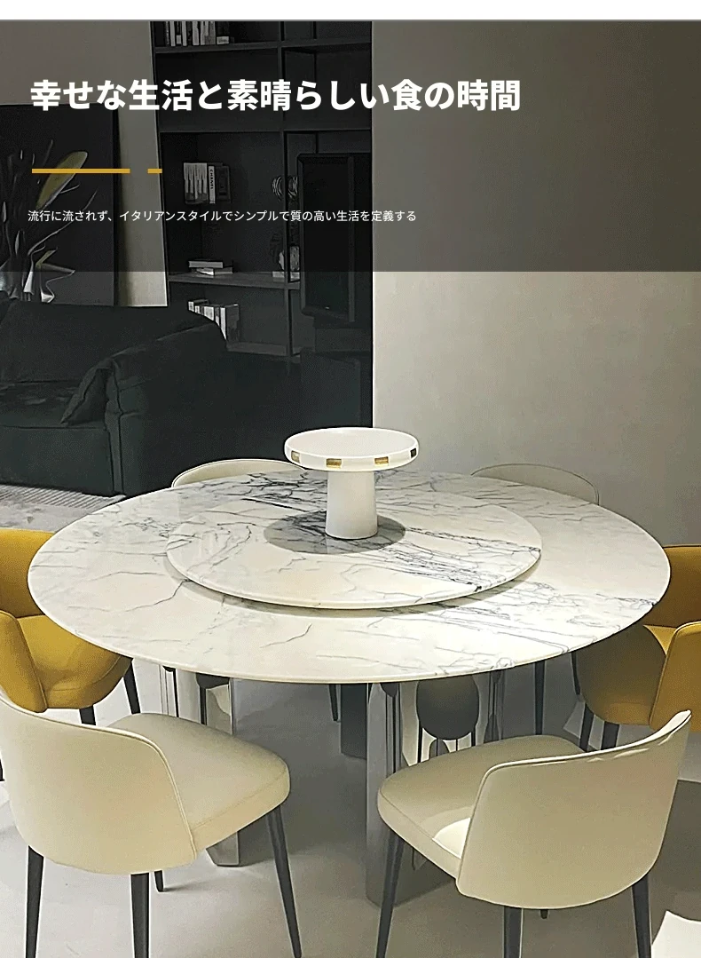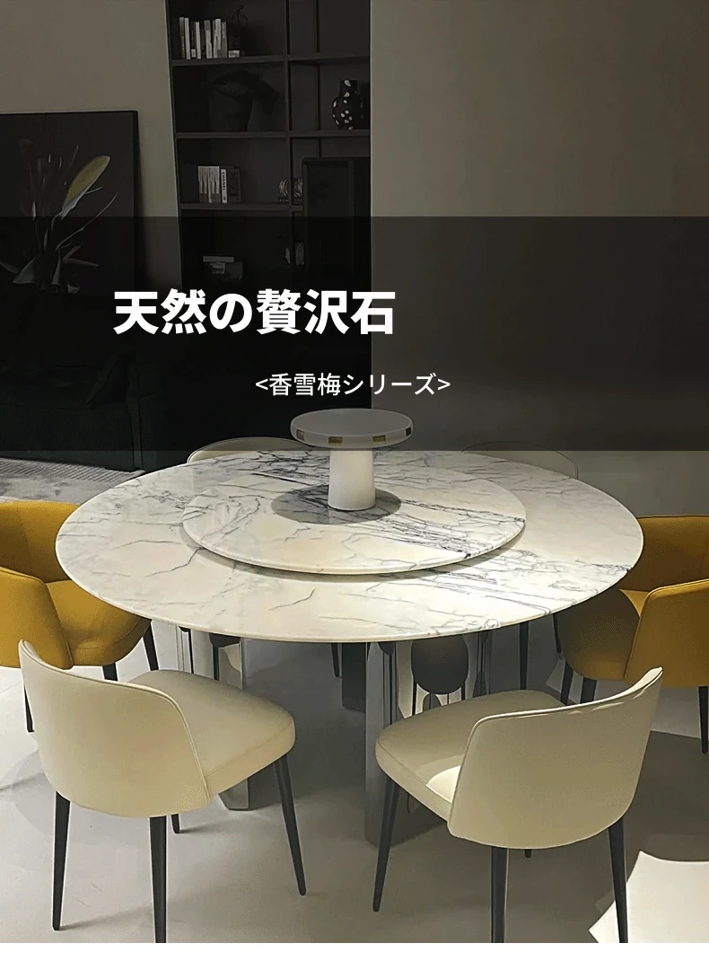 高級感溢れる天然大理石の円形ダイニングテーブル - 香雪梅デザインの贅沢な別荘用テーブル、家族団らんに最適な上質な一品。